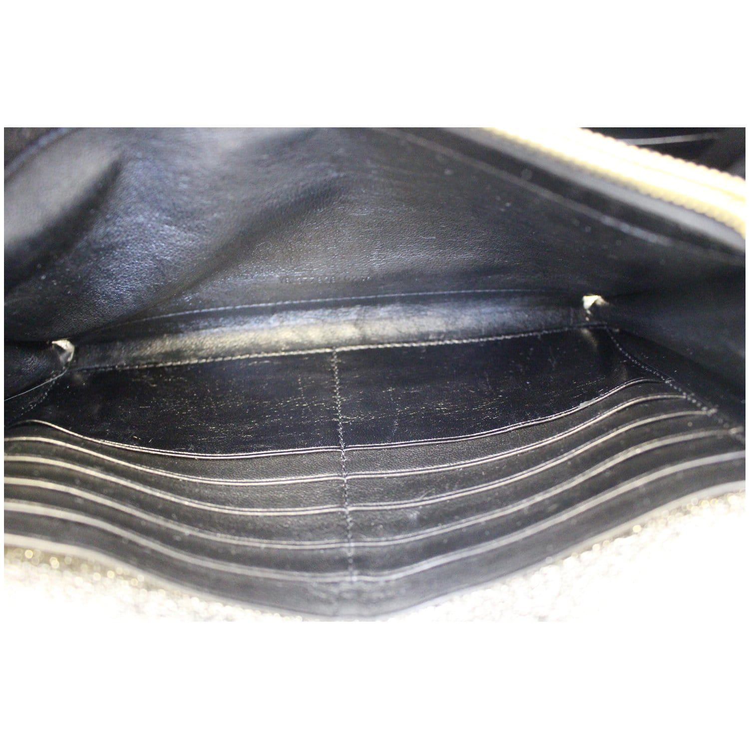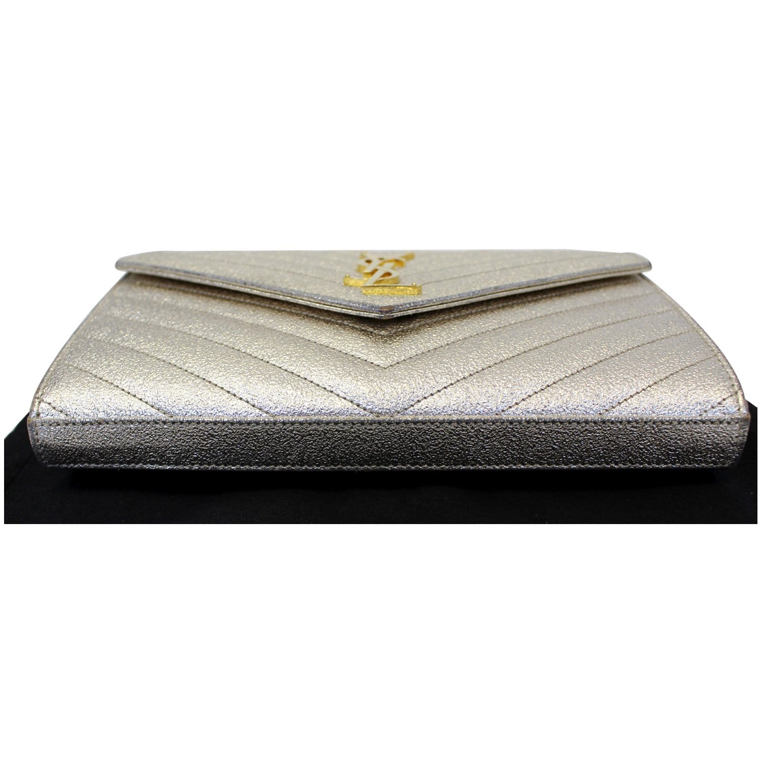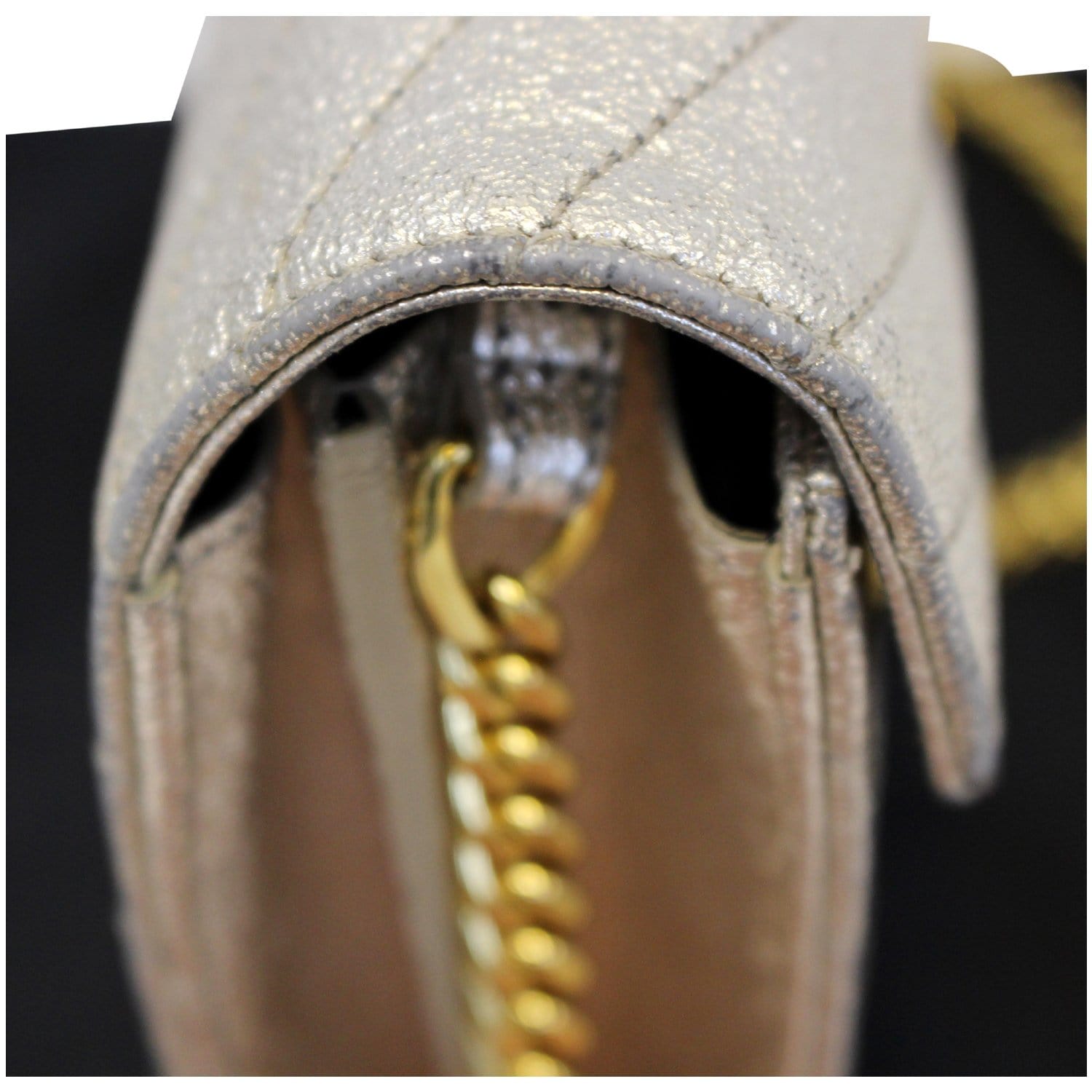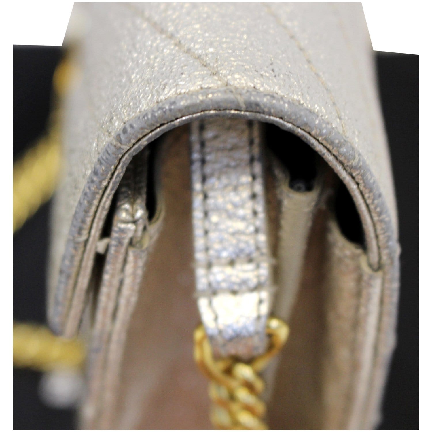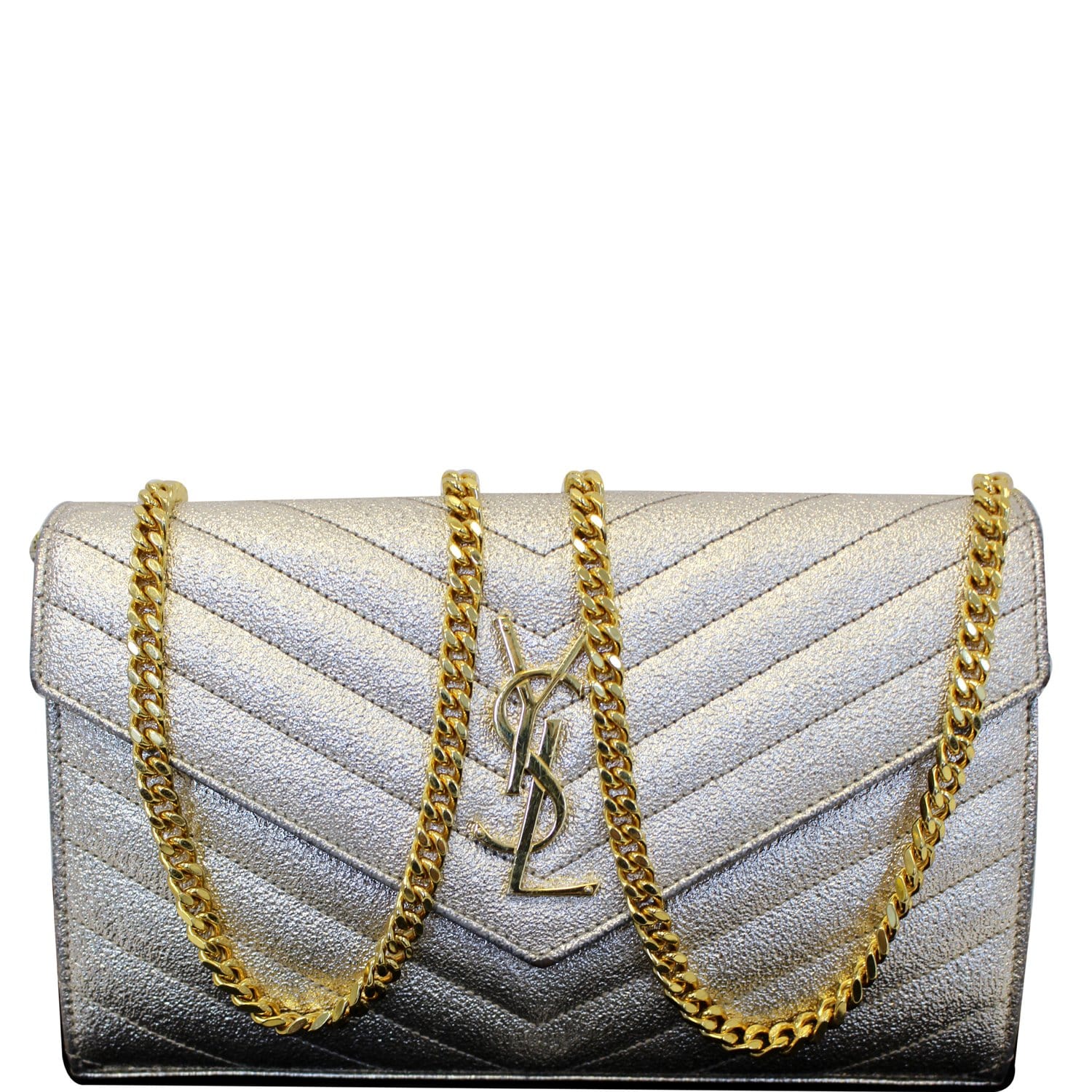 YVES SAINT LAURENT Chevron Leather Chain Wallet Shoulder Bag Silver