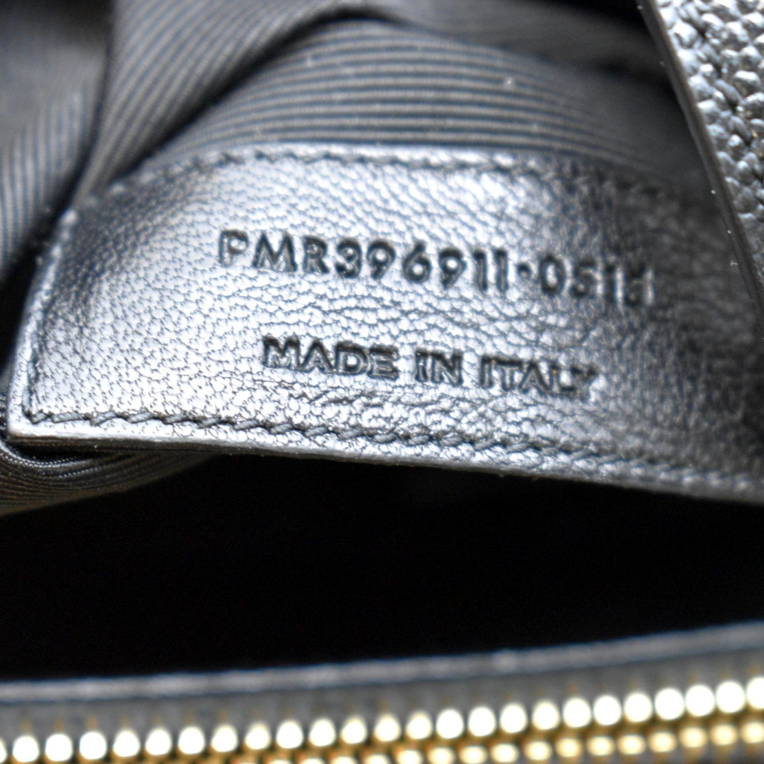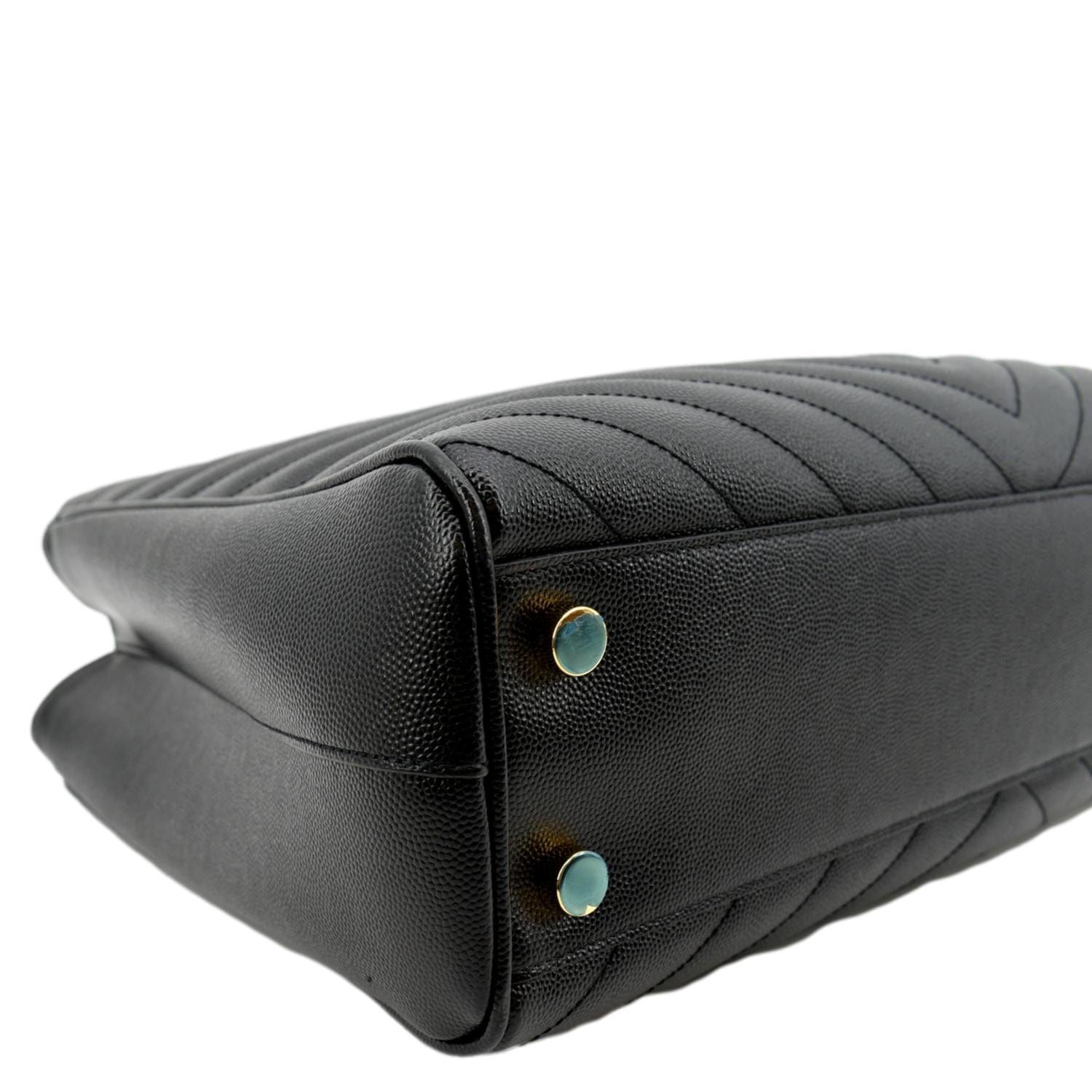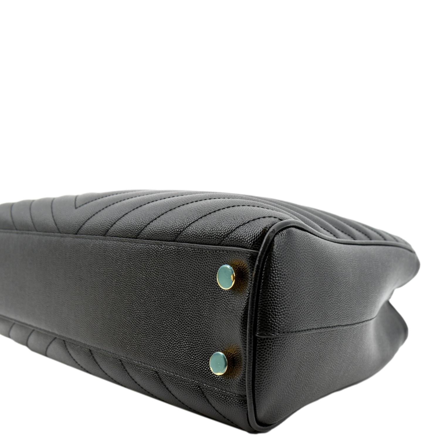 YVES SAINT LAURENT Chevron Leather Shopping Tote Shoulder Bag Black
