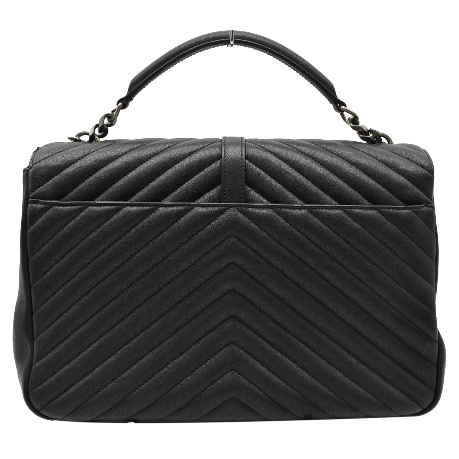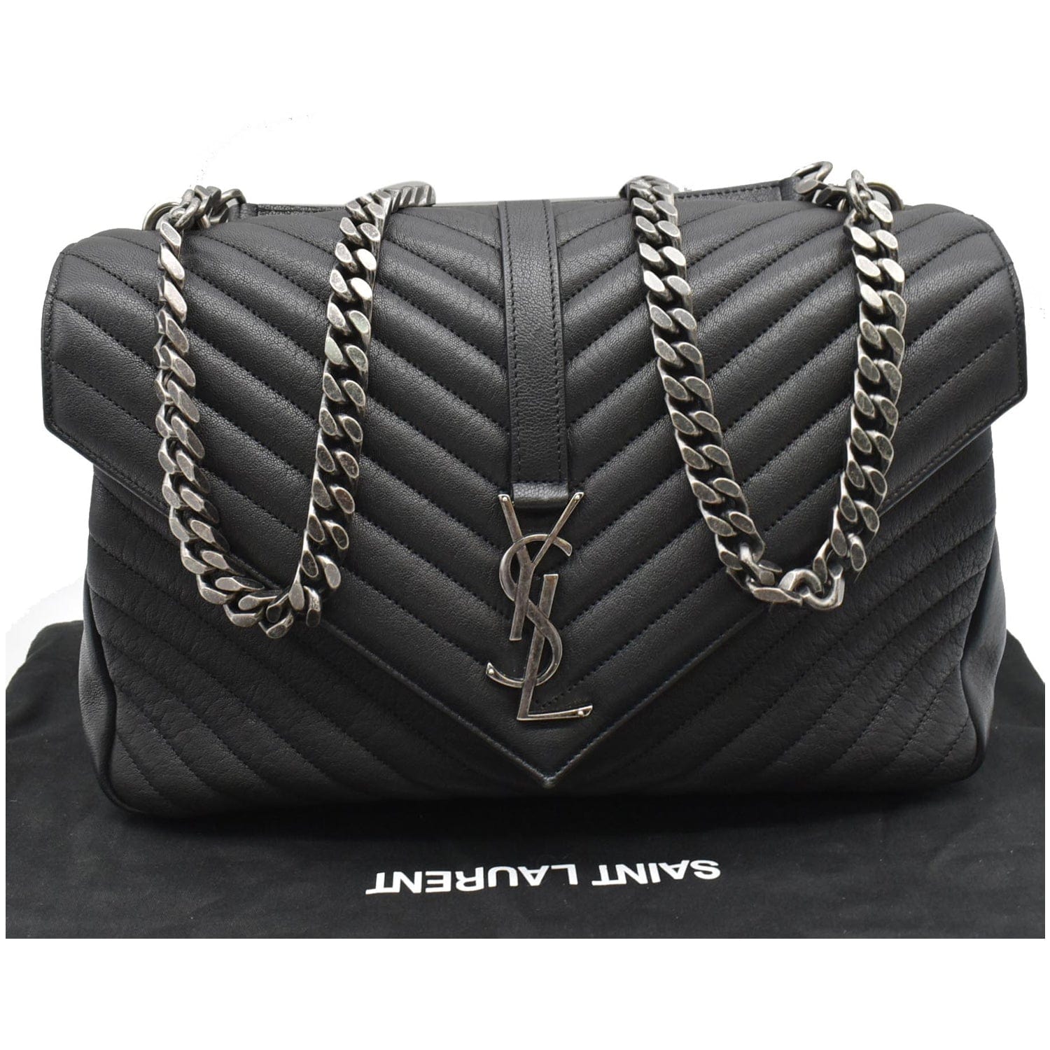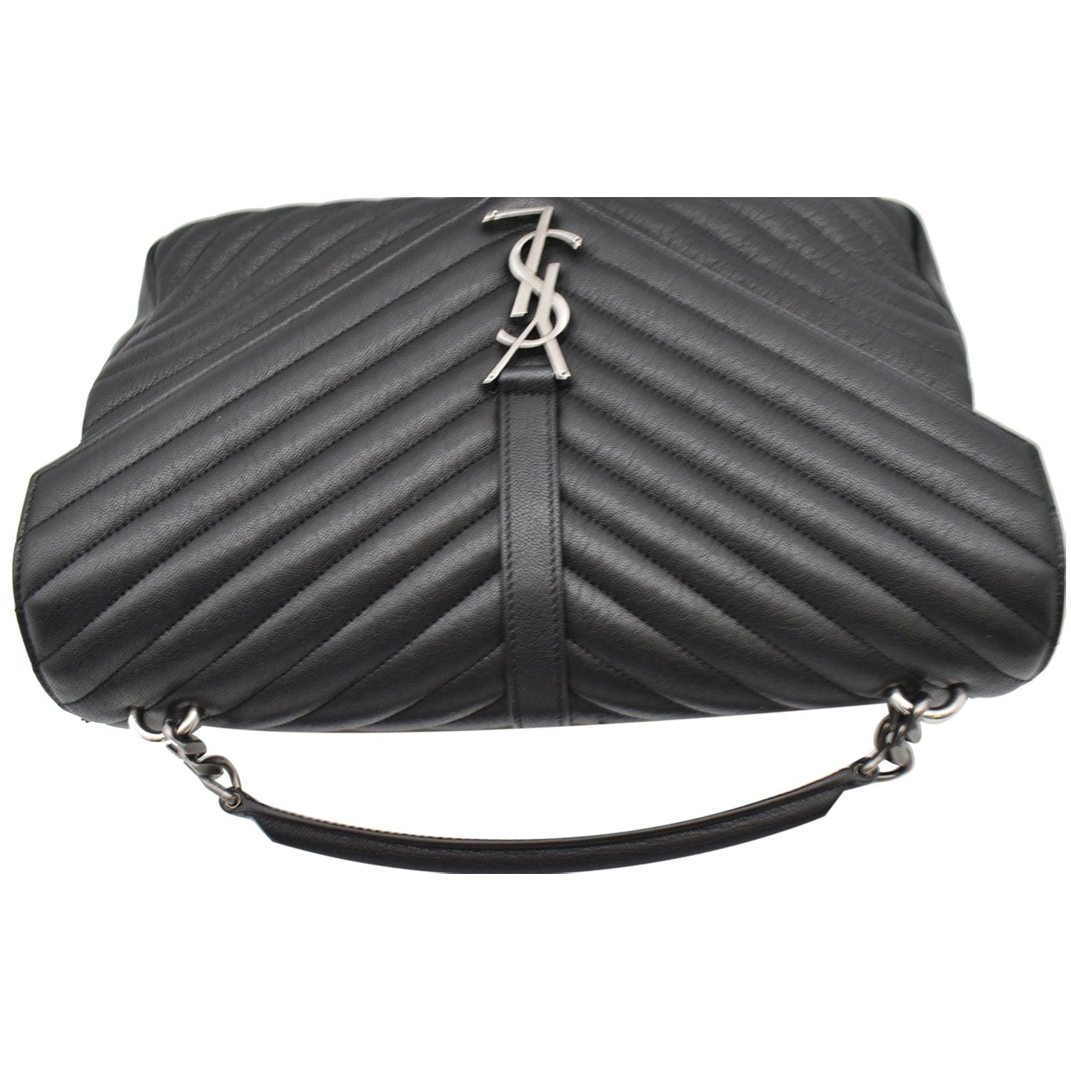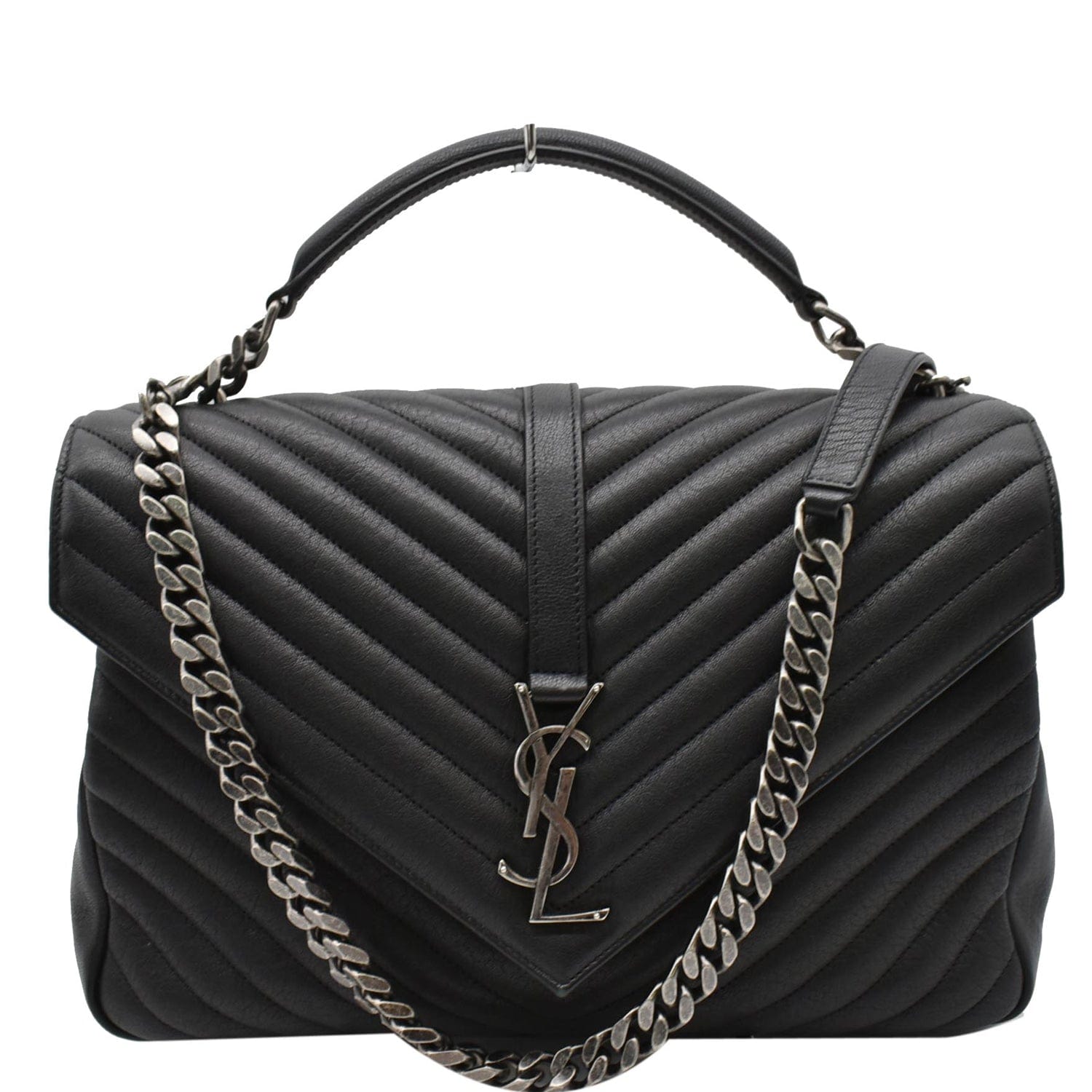YVES SAINT LAURENT College Medium Flap Matelassé Leather Shoulder Bag Black