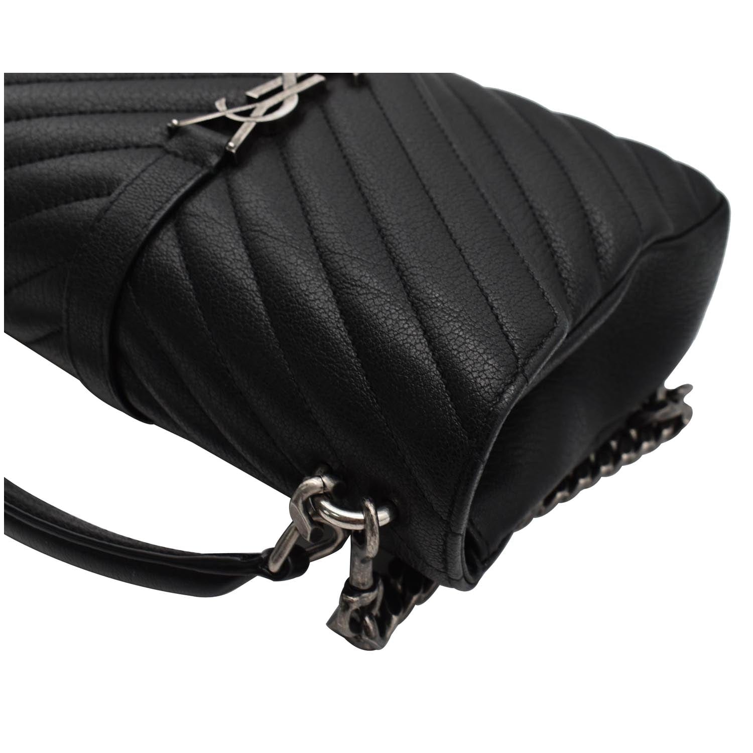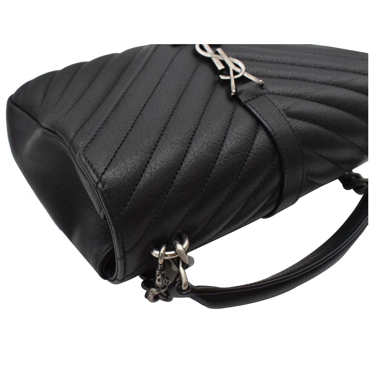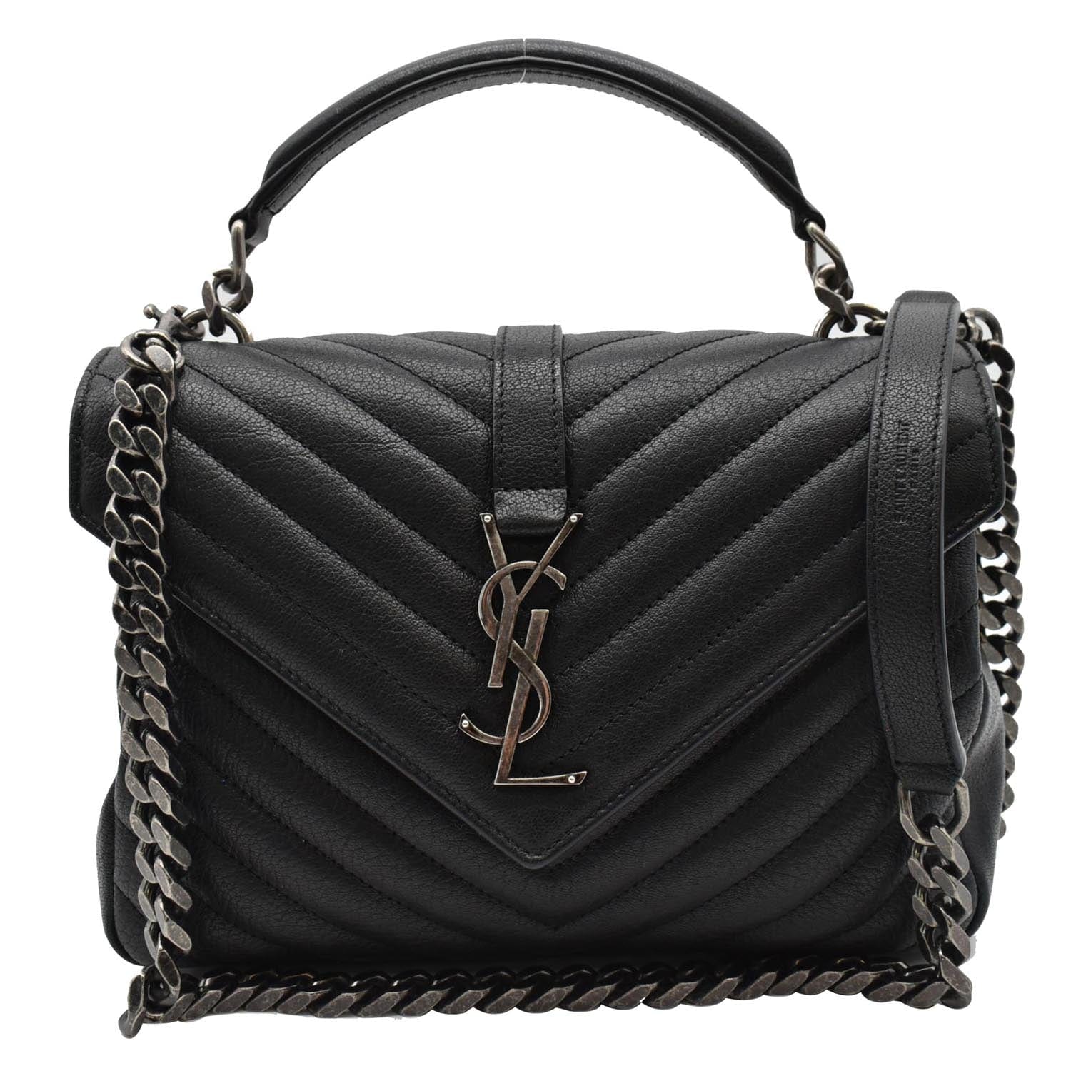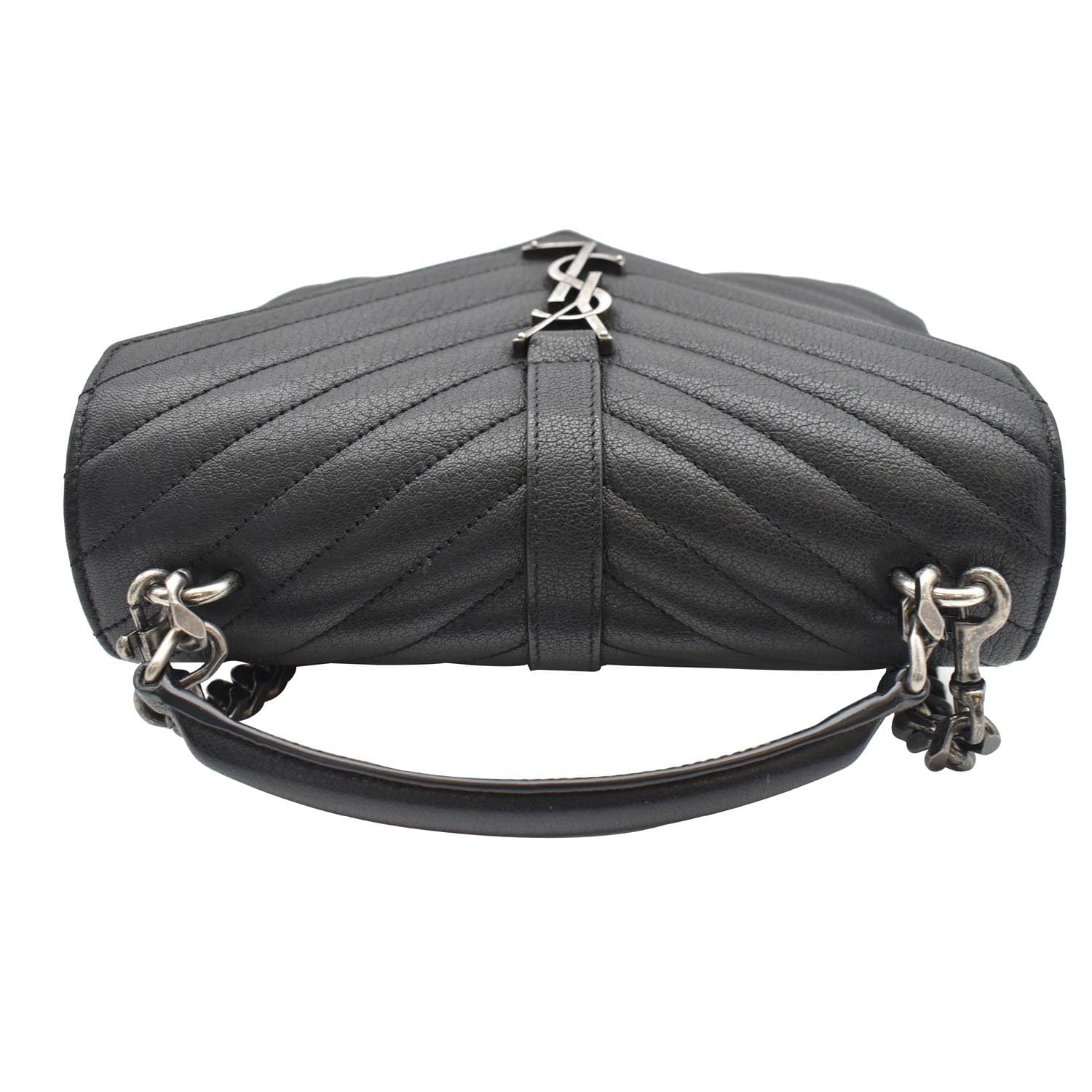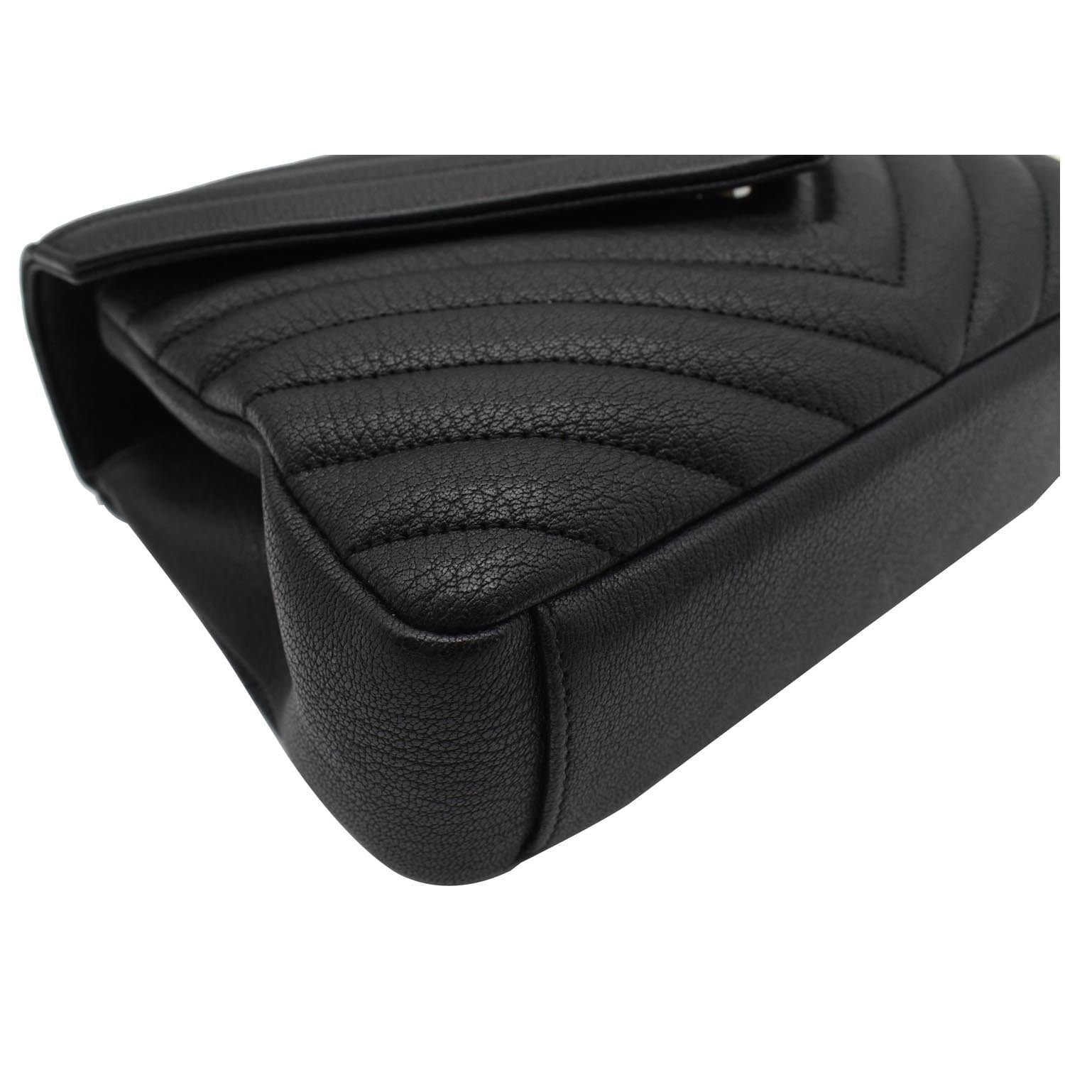 YVES SAINT LAURENT College Medium Monogram Chevron Leather Crossbody Bag Black