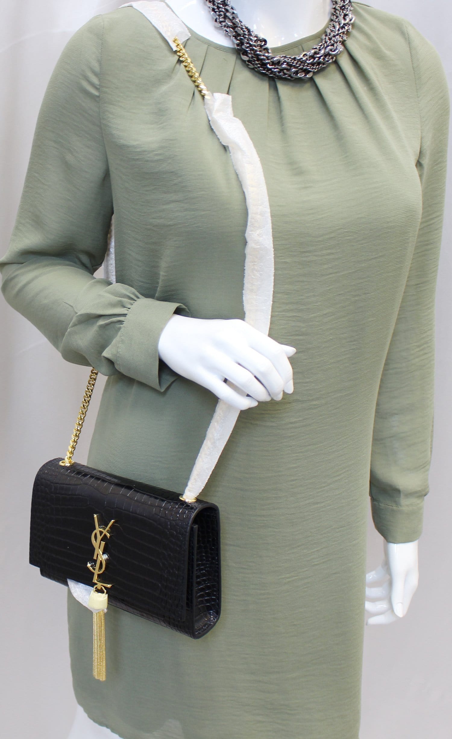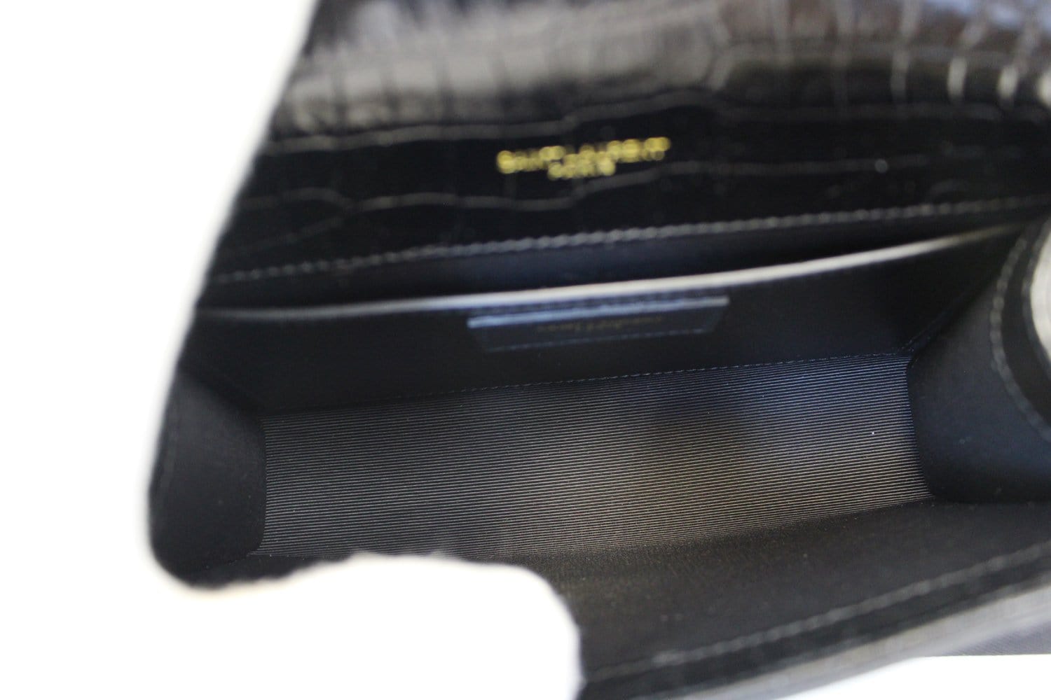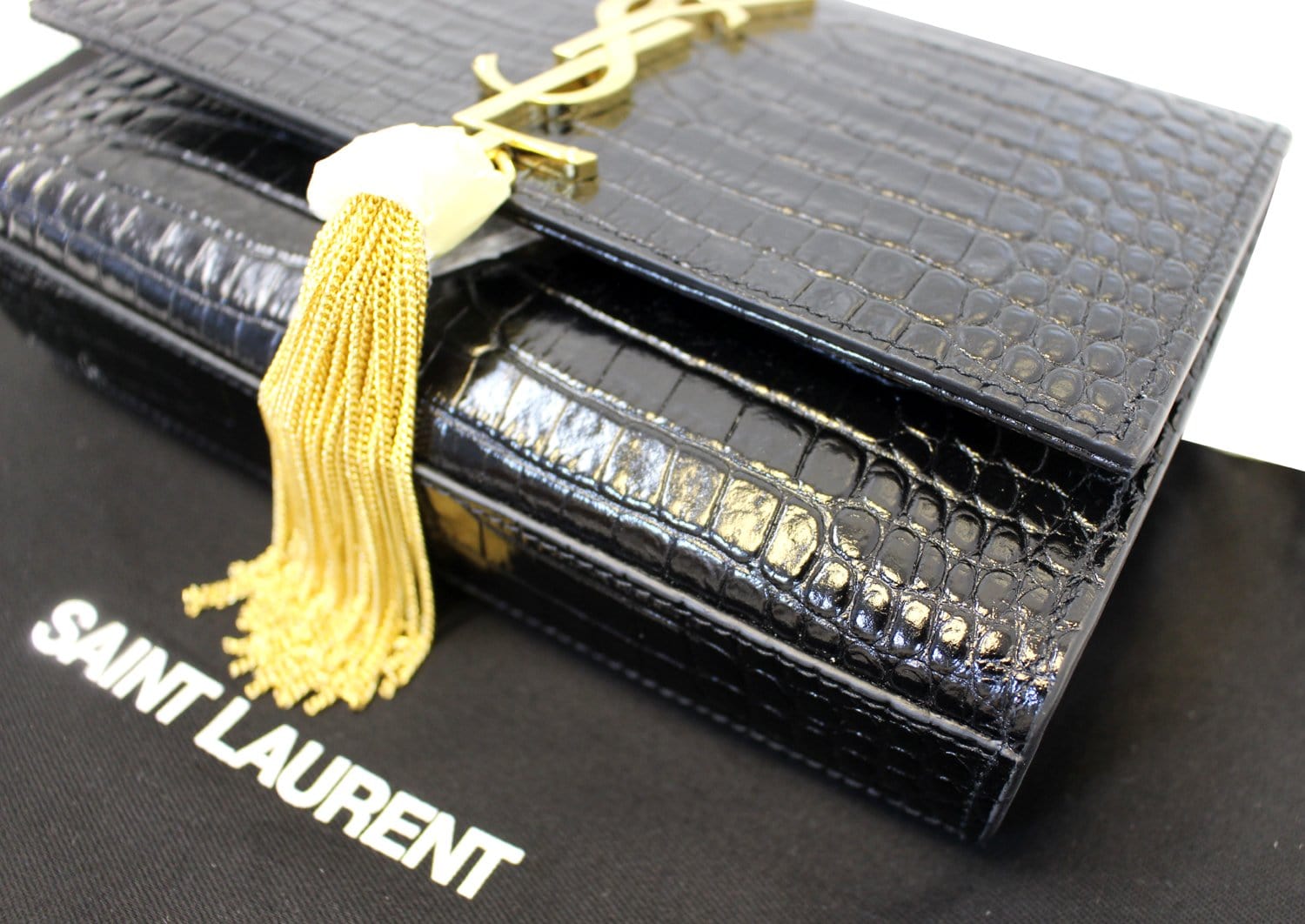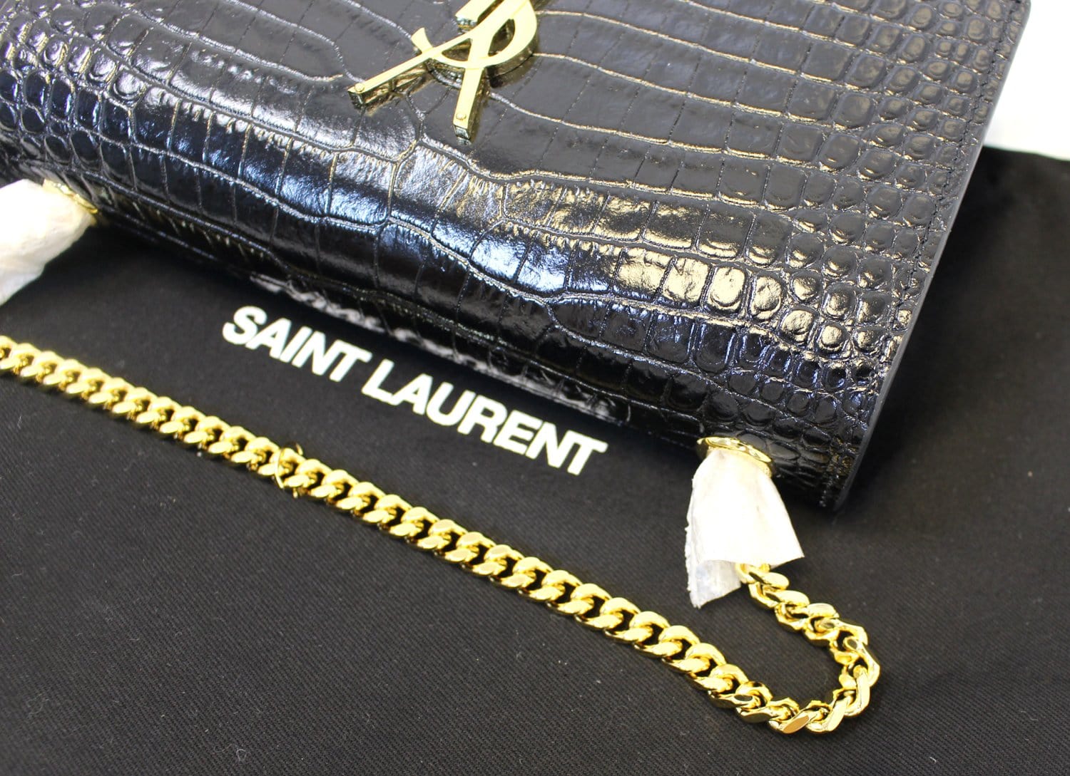 YVES SAINT LAURENT Crocodile Black Leather Chain Clutch Crossbody Bag