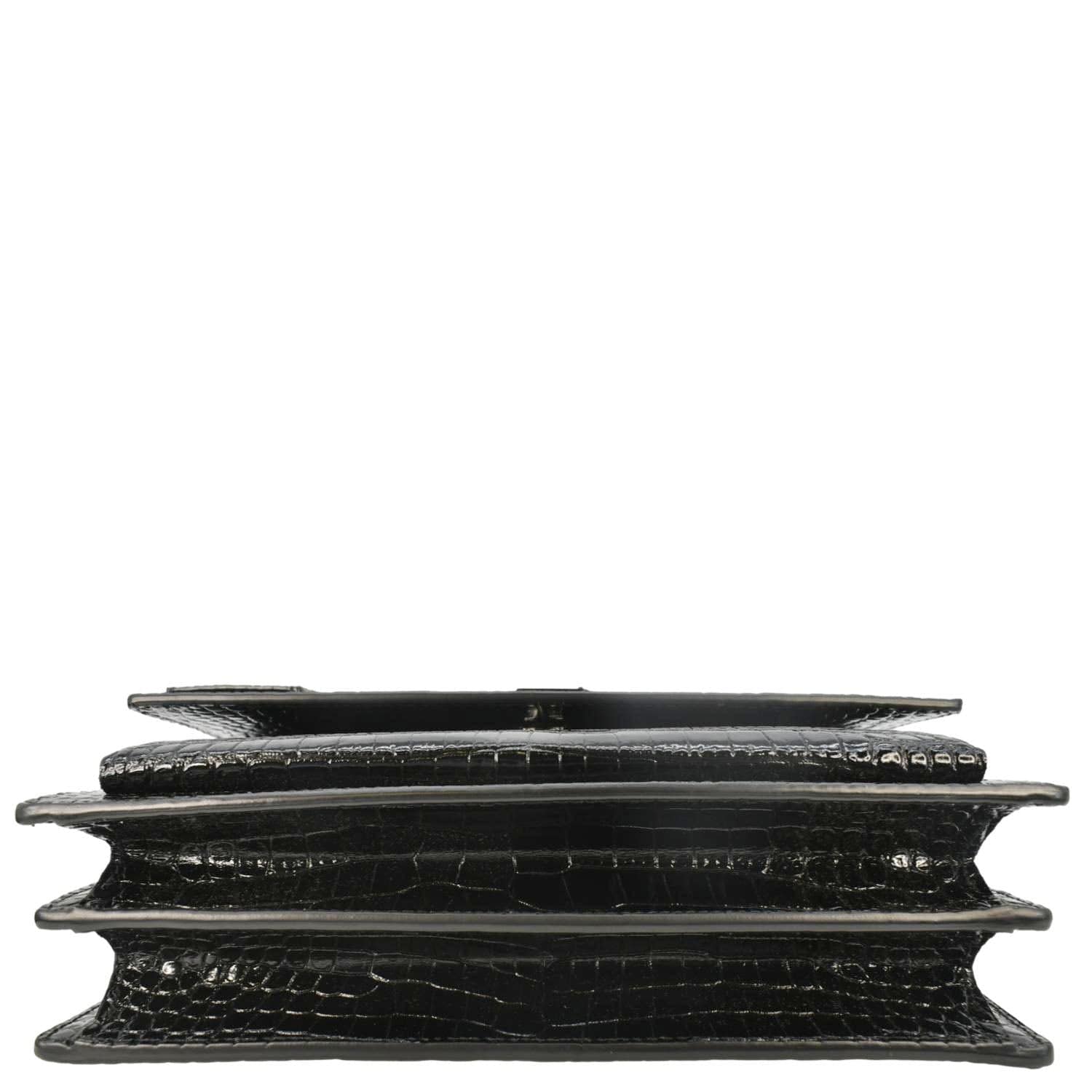 YVES SAINT LAURENT Sunset Crocodile Leather Crossbody Bag Black