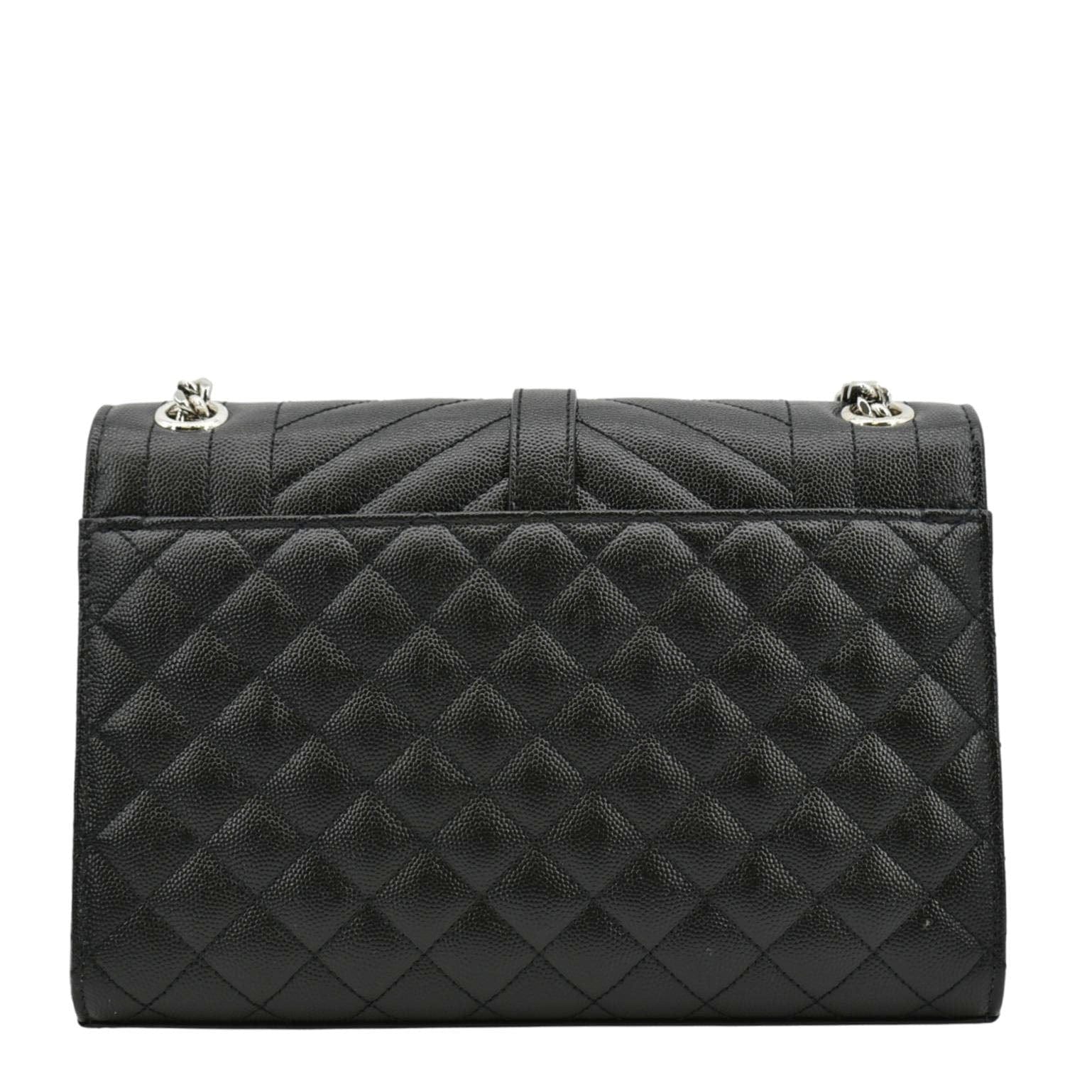 YVES SAINT LAURENT Envelope Mix Matelassé Chain Leather Shoulder Bag Black