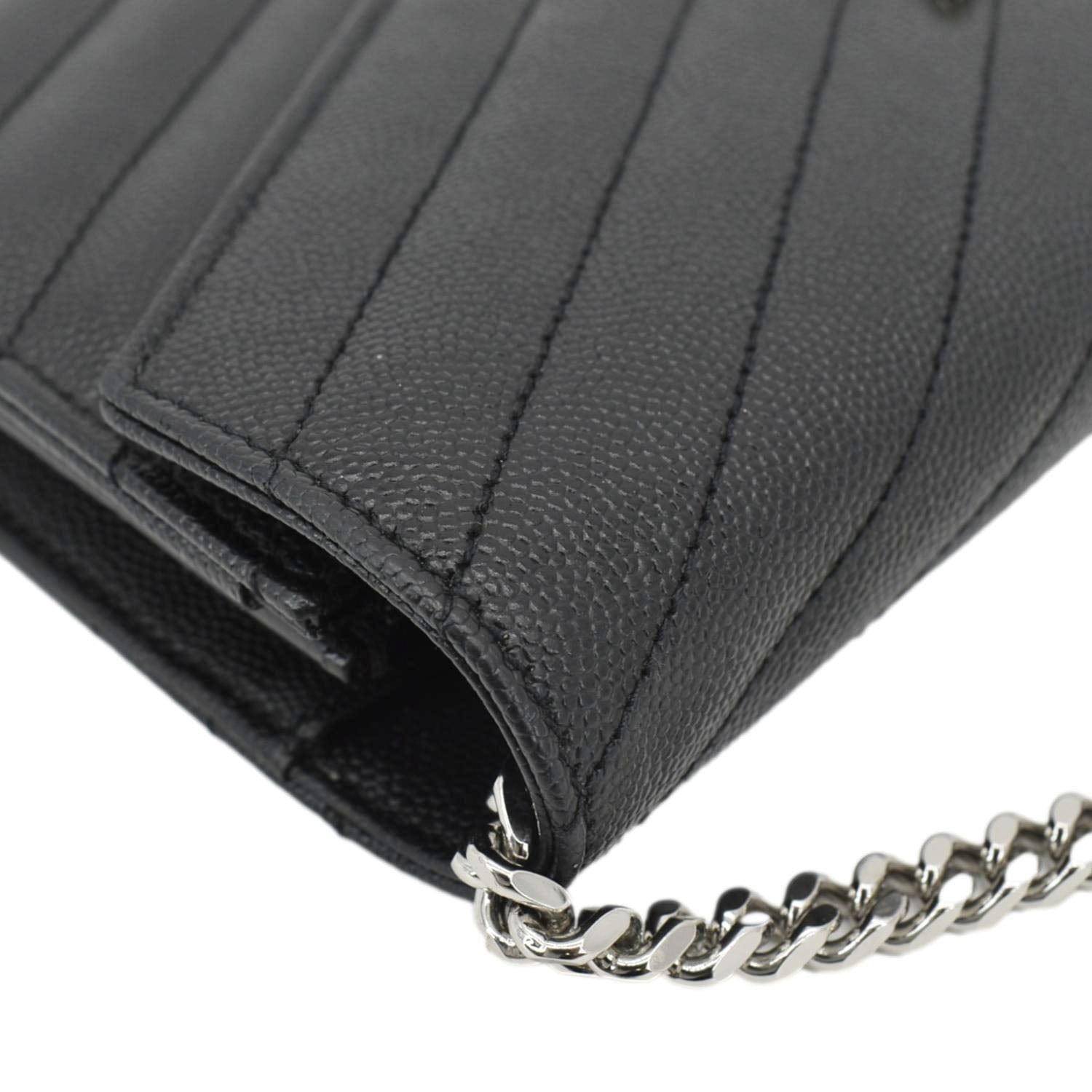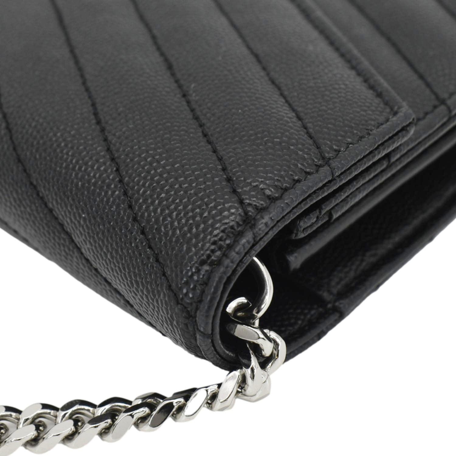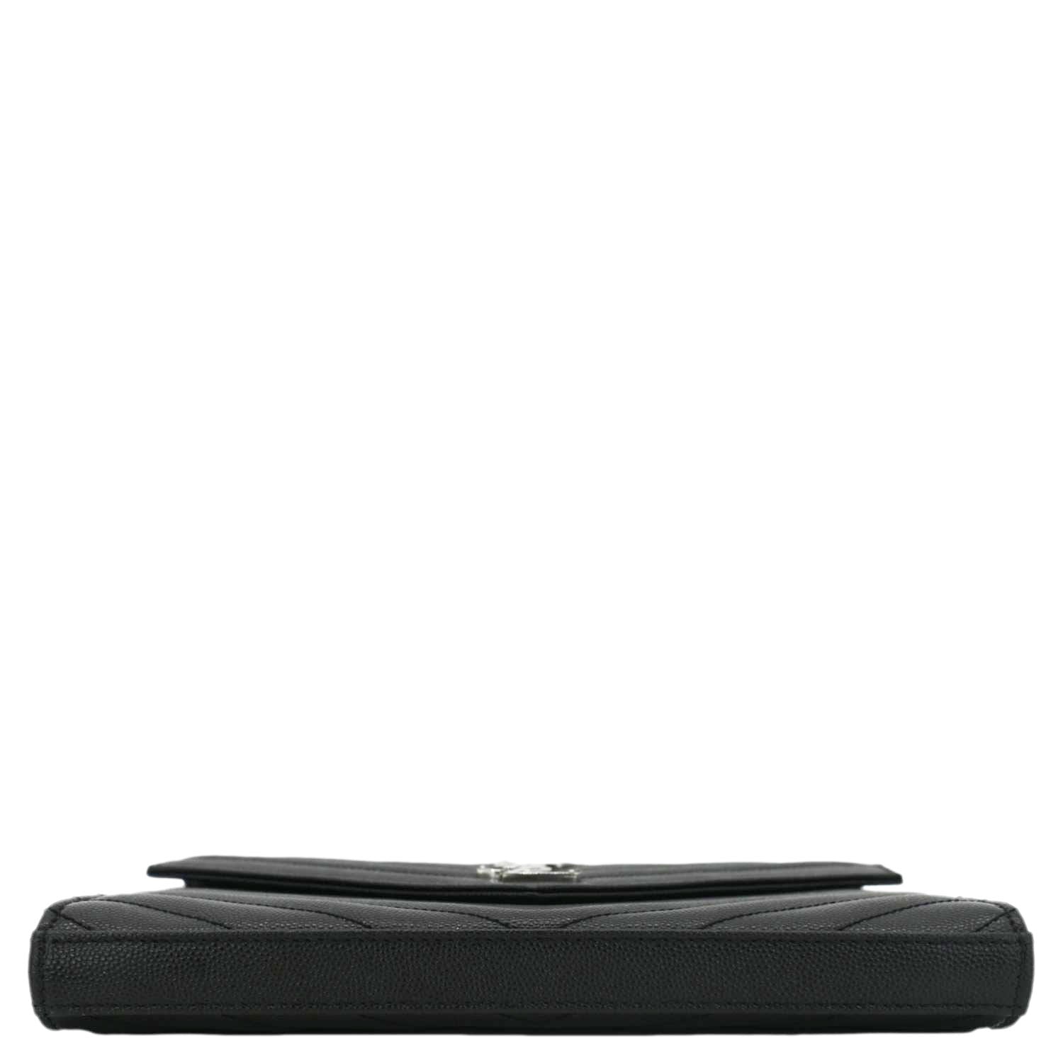 YVES SAINT LAURENT Envelope Chevron Leather Chain Wallet Crossbody Bag Black