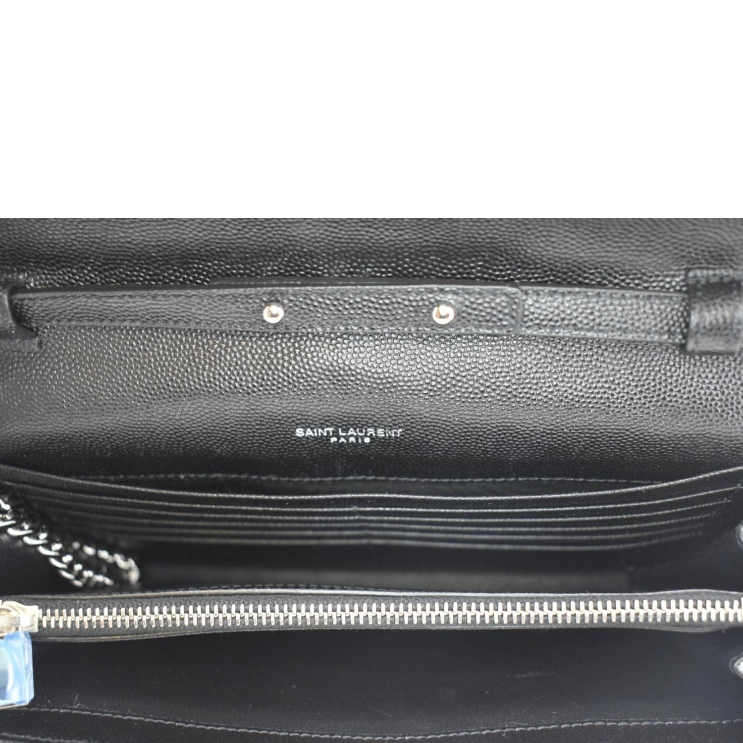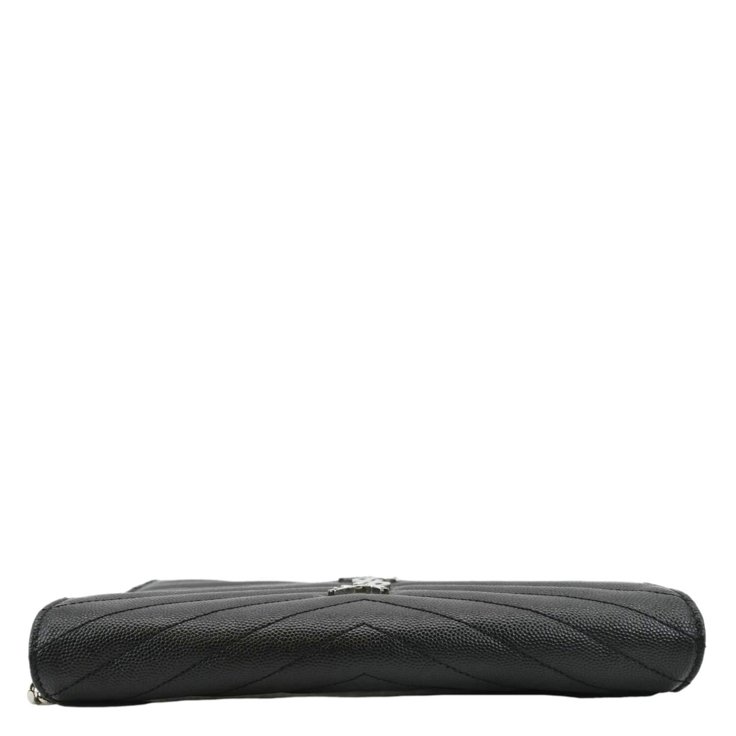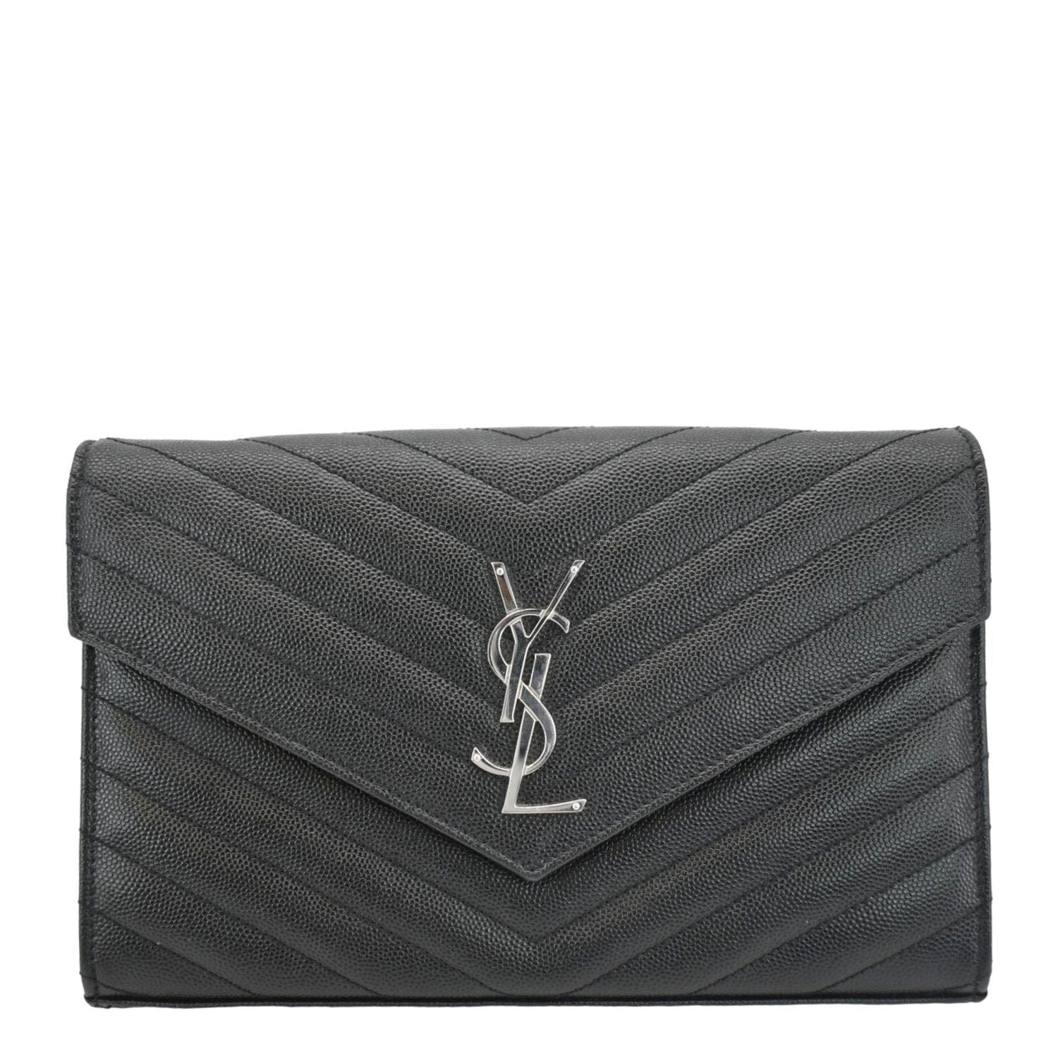 YVES SAINT LAURENT Envelope Chevron Leather Chain Wallet Crossbody Bag Black