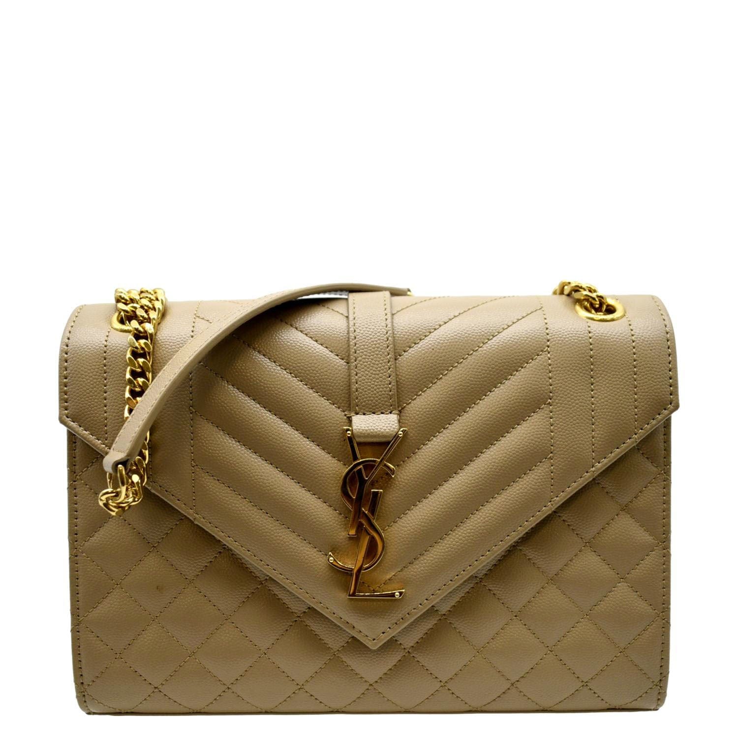 YVES SAINT LAURENT Envelope Flap Matelasse Leather Shoulder Bag Beige