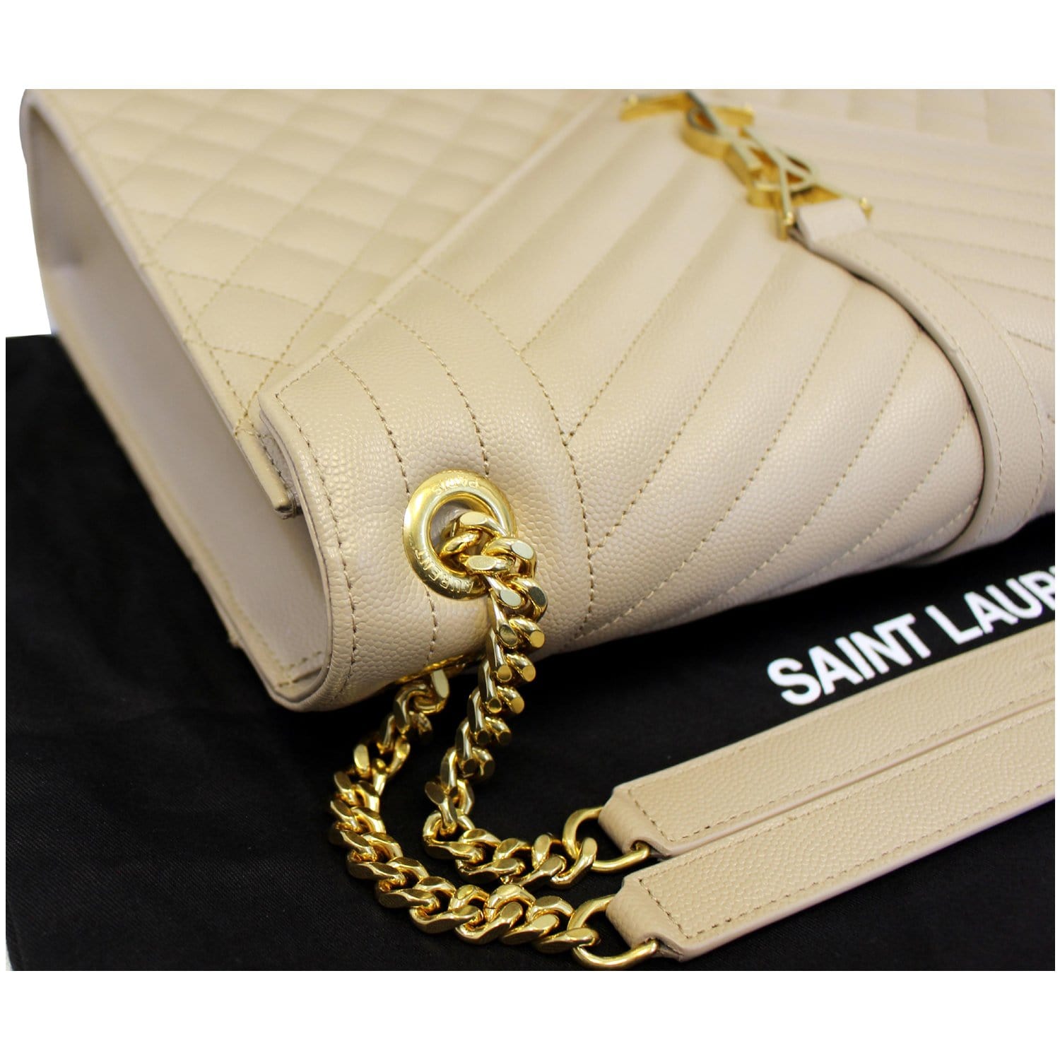 YVES SAINT LAURENT Envelope Large Matelasse Embossed Leather Shoulder Bag Nude