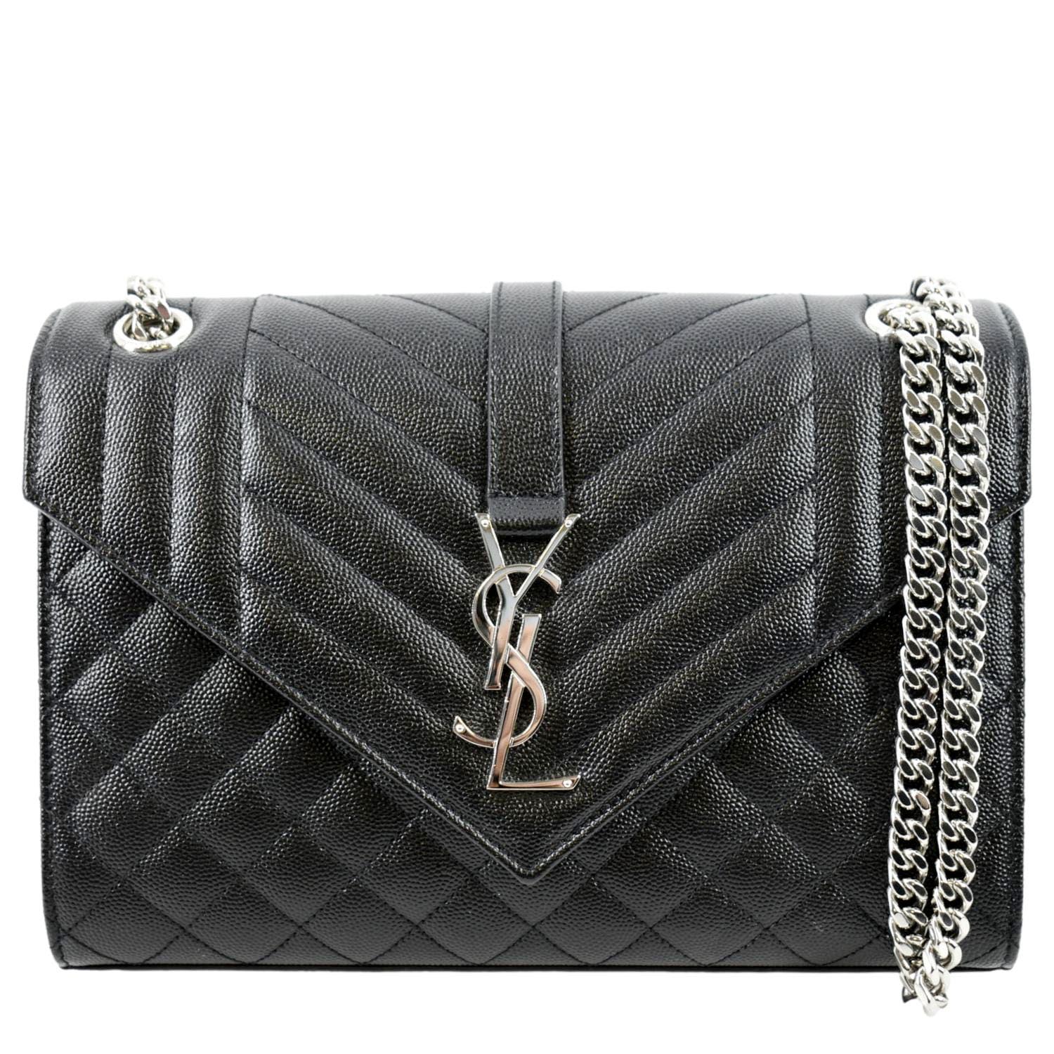 YVES SAINT LAURENT Medium Envelope Leather Chain Shoulder Bag Black