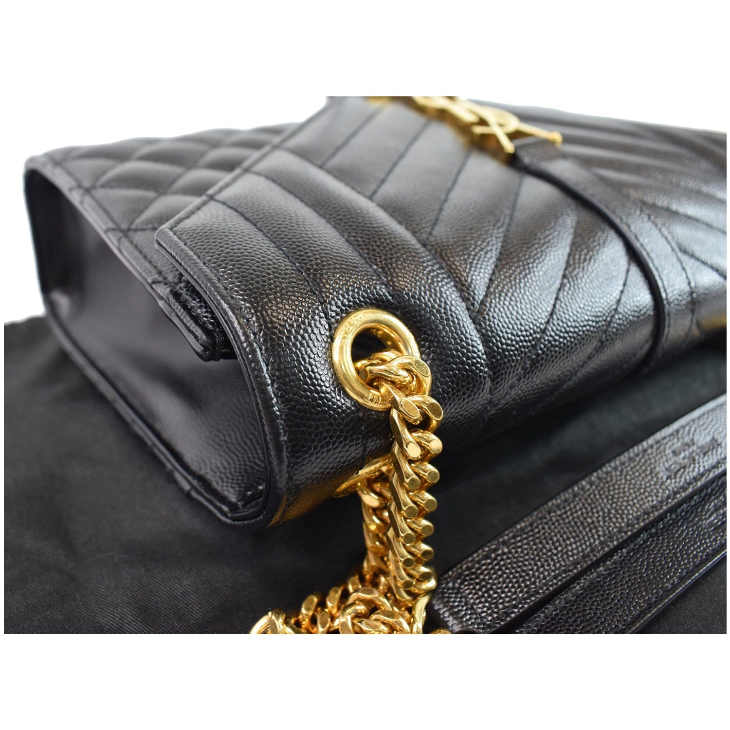 YVES SAINT LAURENT Envelope Medium Chain Leather Shoulder Bag Black