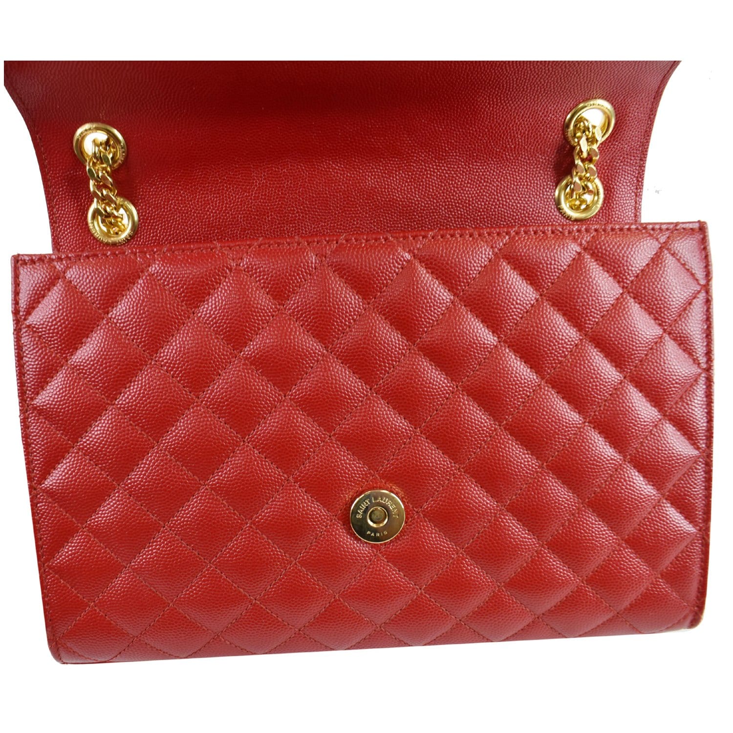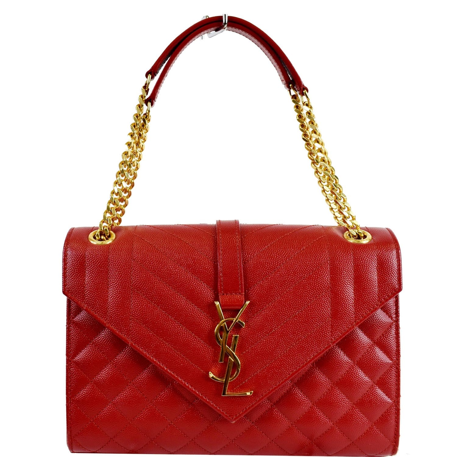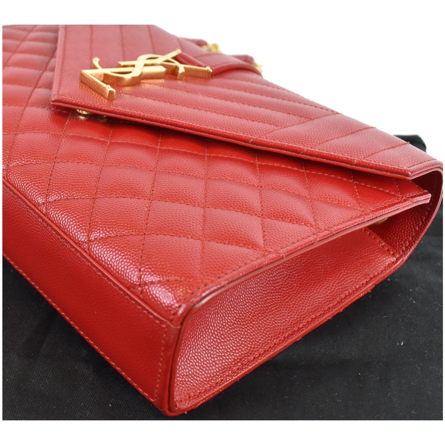 YVES SAINT LAURENT Medium Envelope Leather Chain Shoulder Bag Red