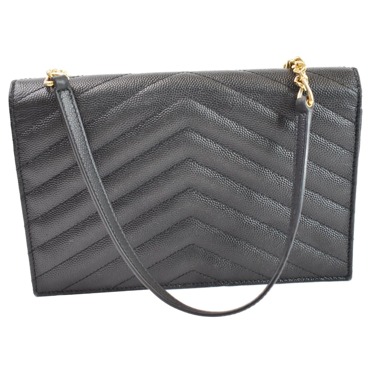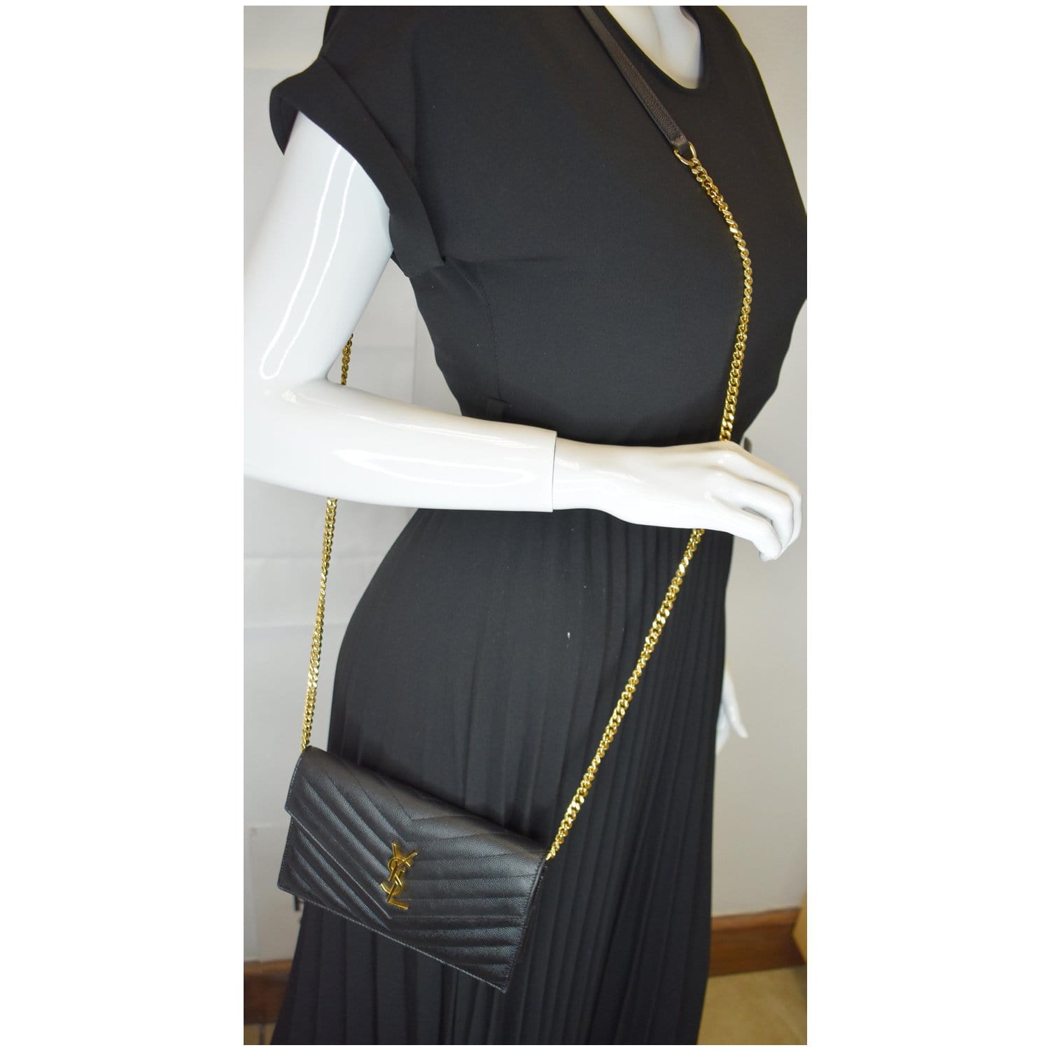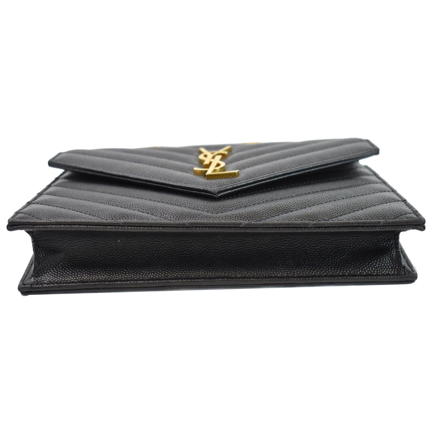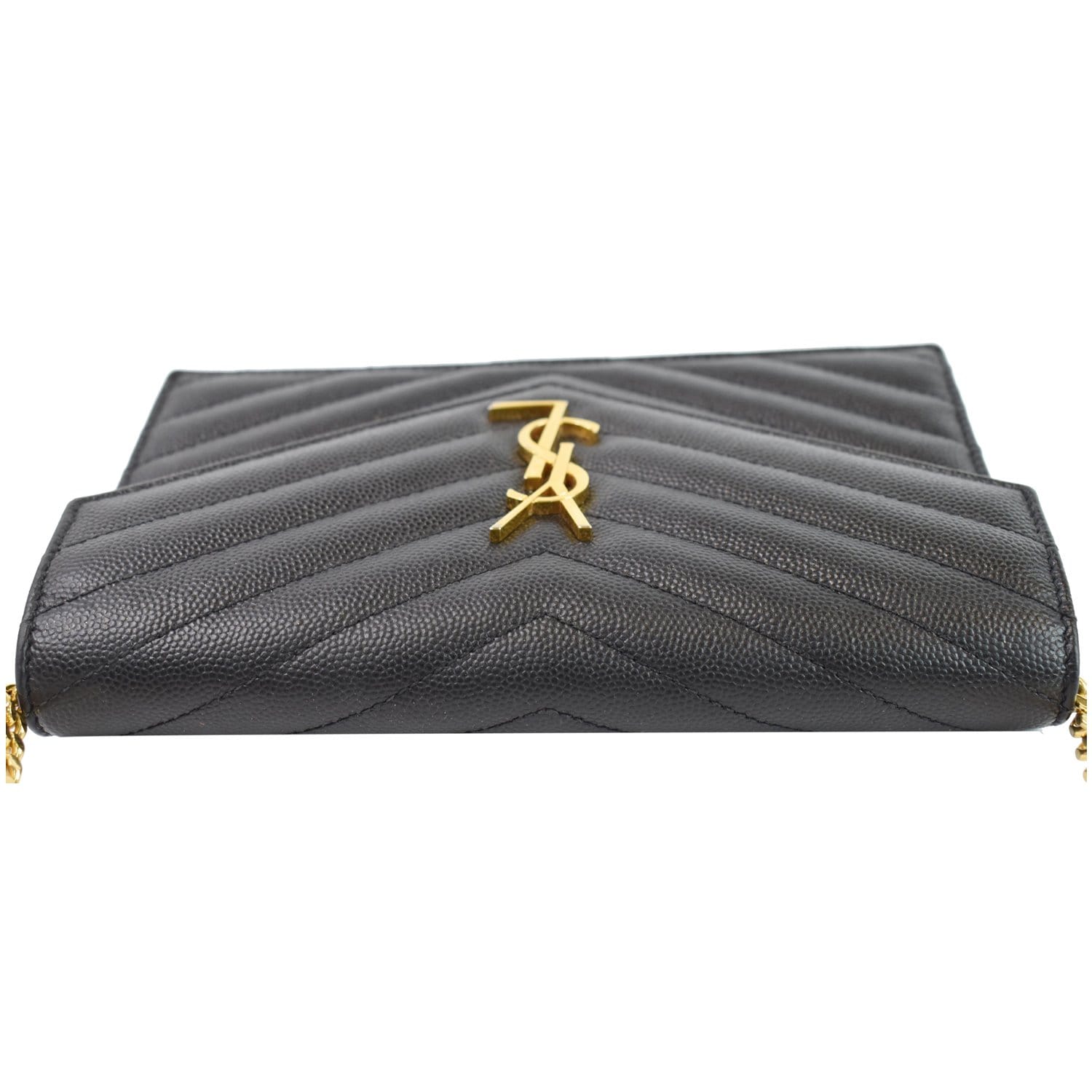 YVES SAINT LAURENT Envelope Monogram Leather Crossbody Chain Wallet Black