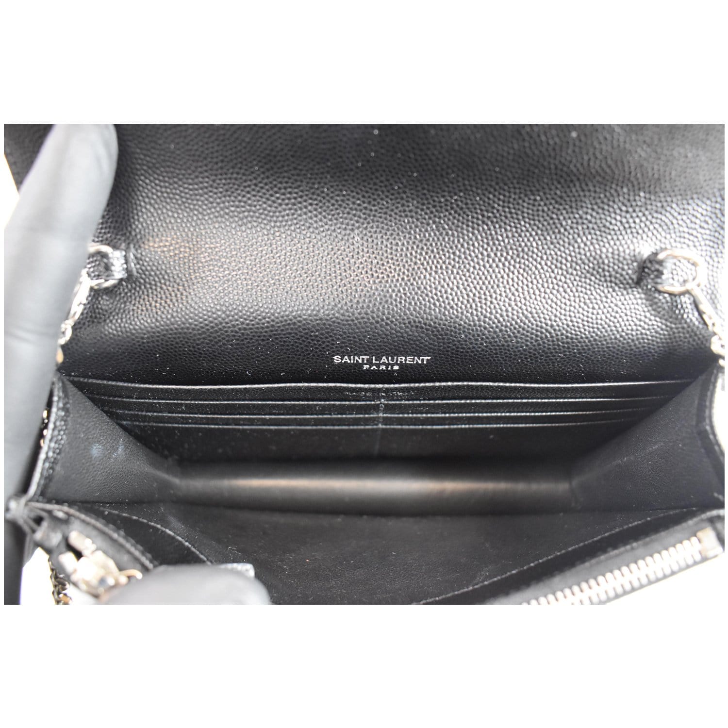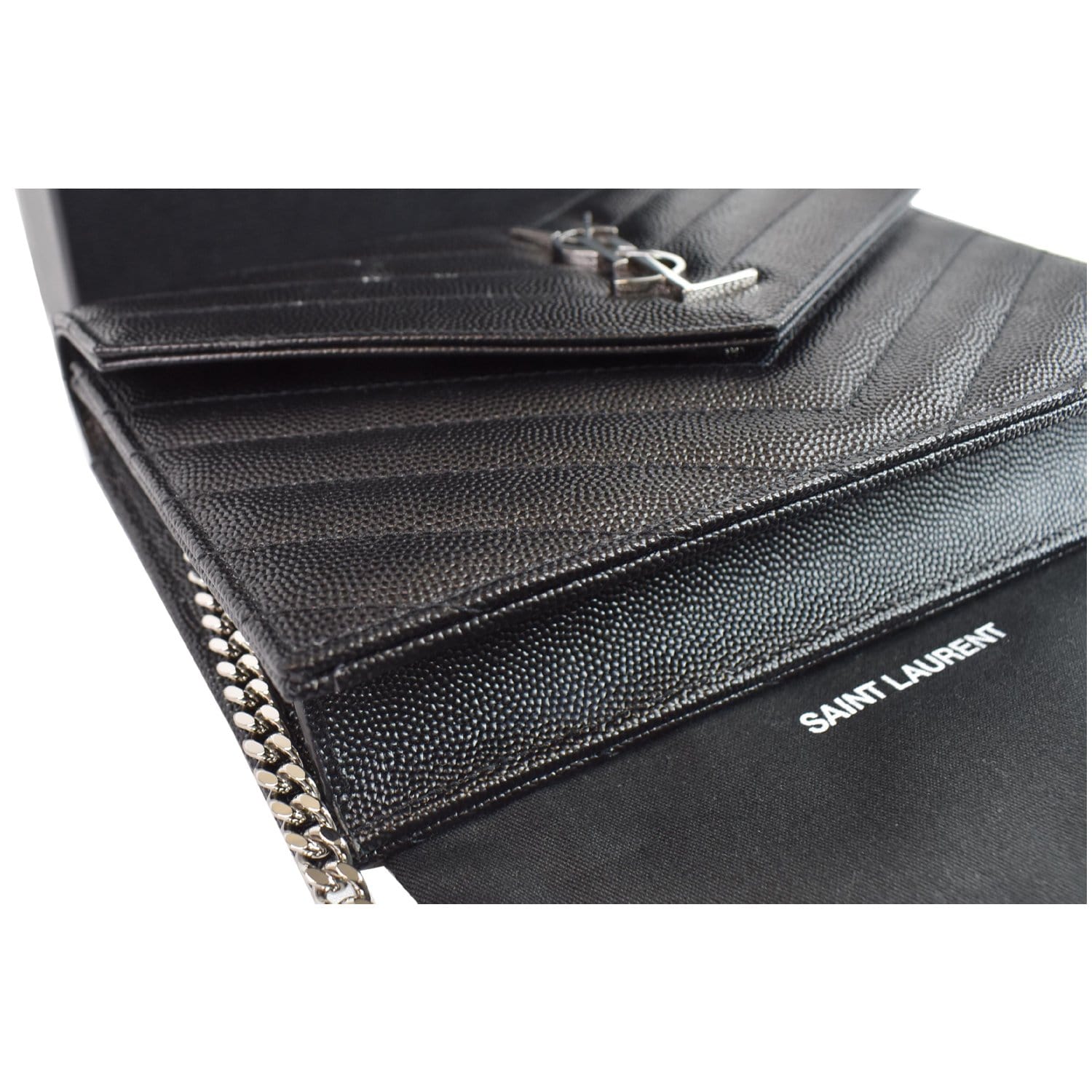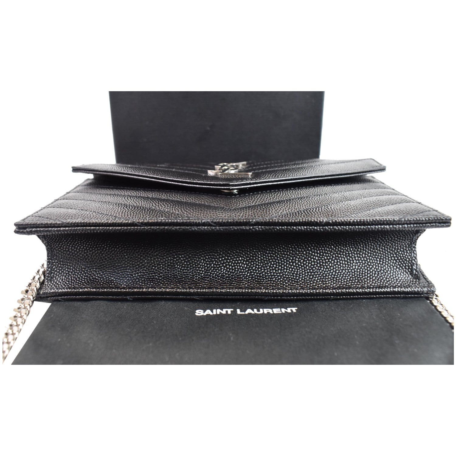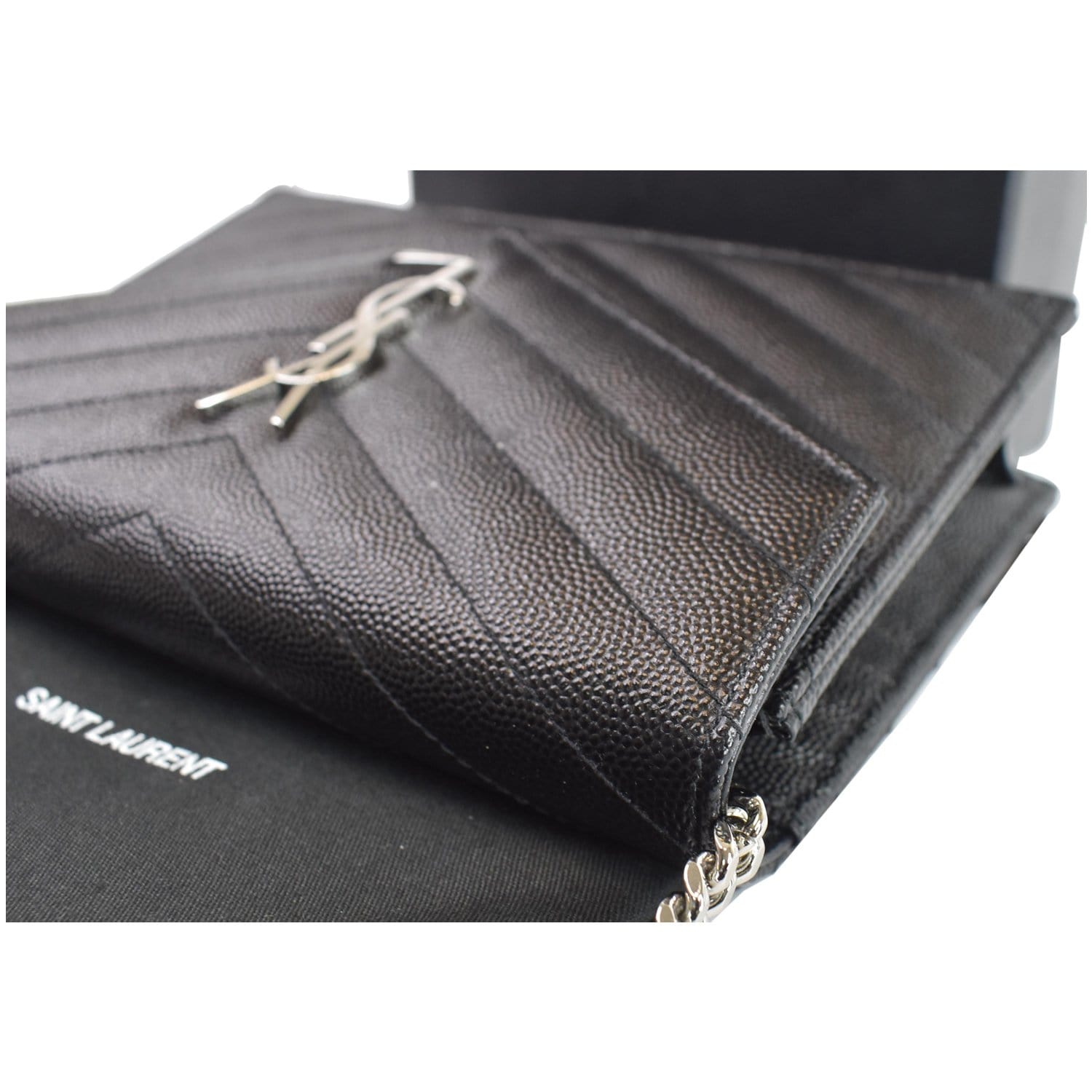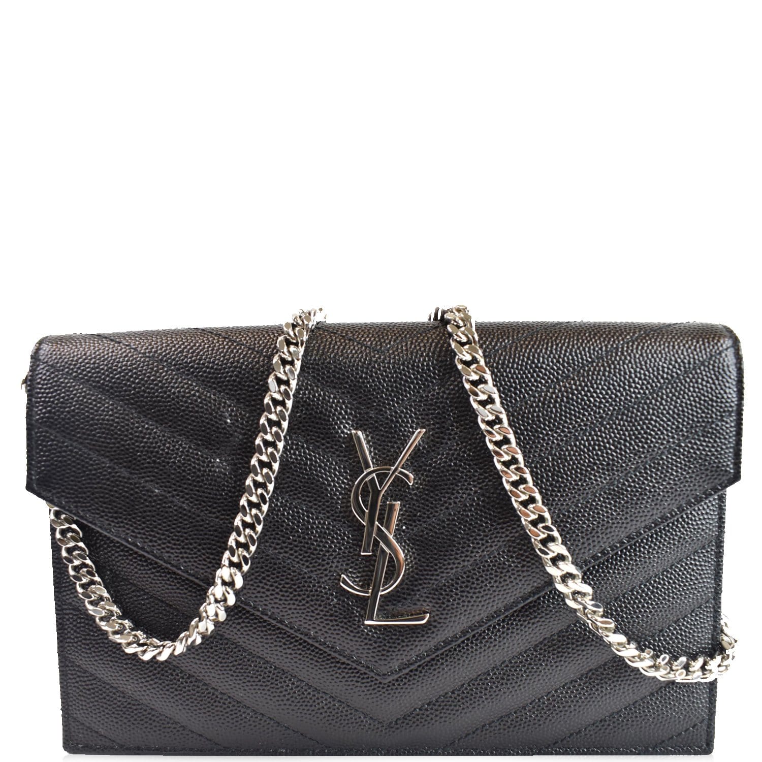 YVES SAINT LAURENT Envelope Monogram Leather Crossbody Chain Wallet Black