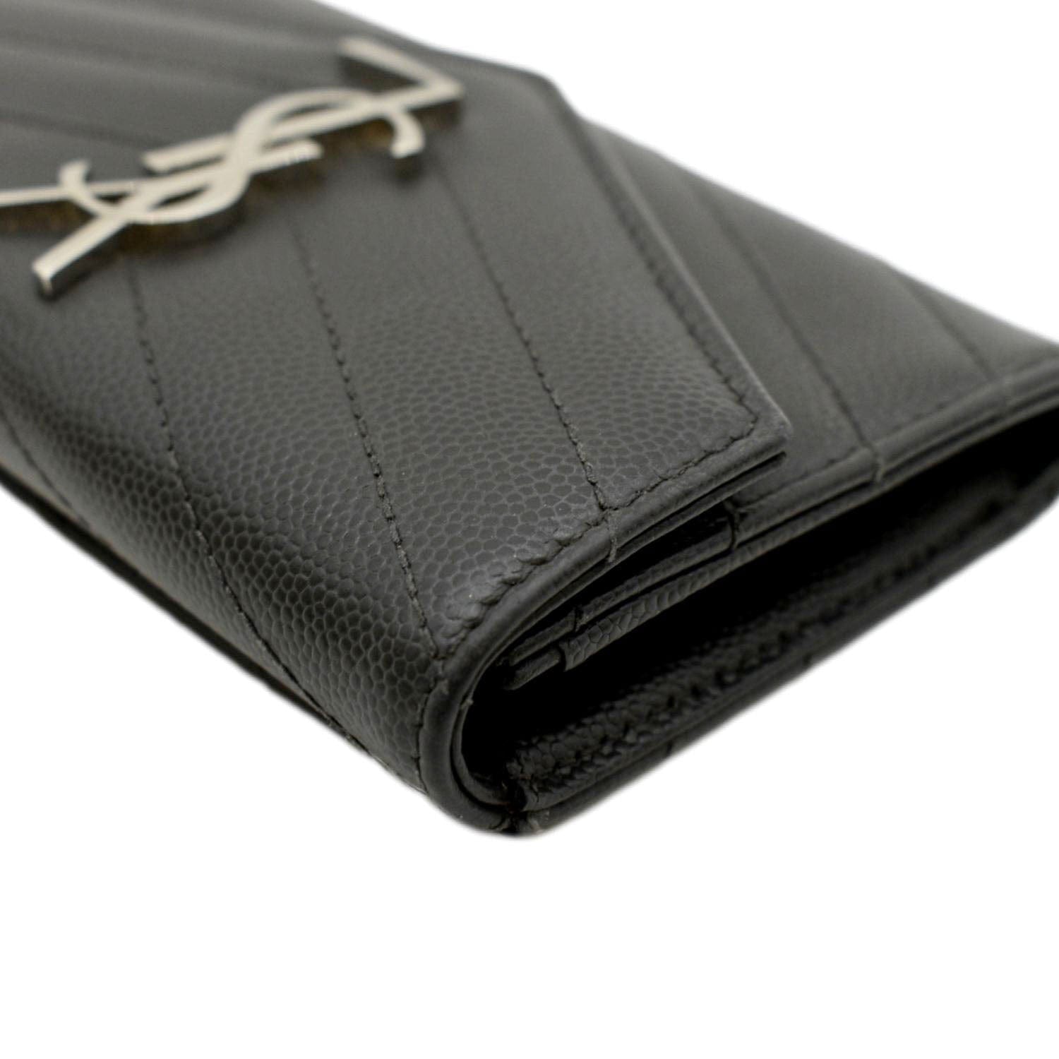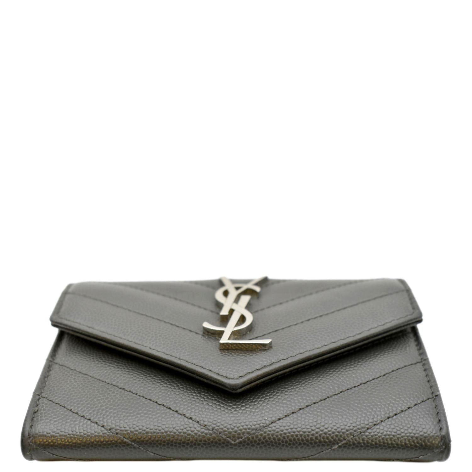 YVES SAINT LAURENT Flap Grain De Poudre Wallet Olive Green