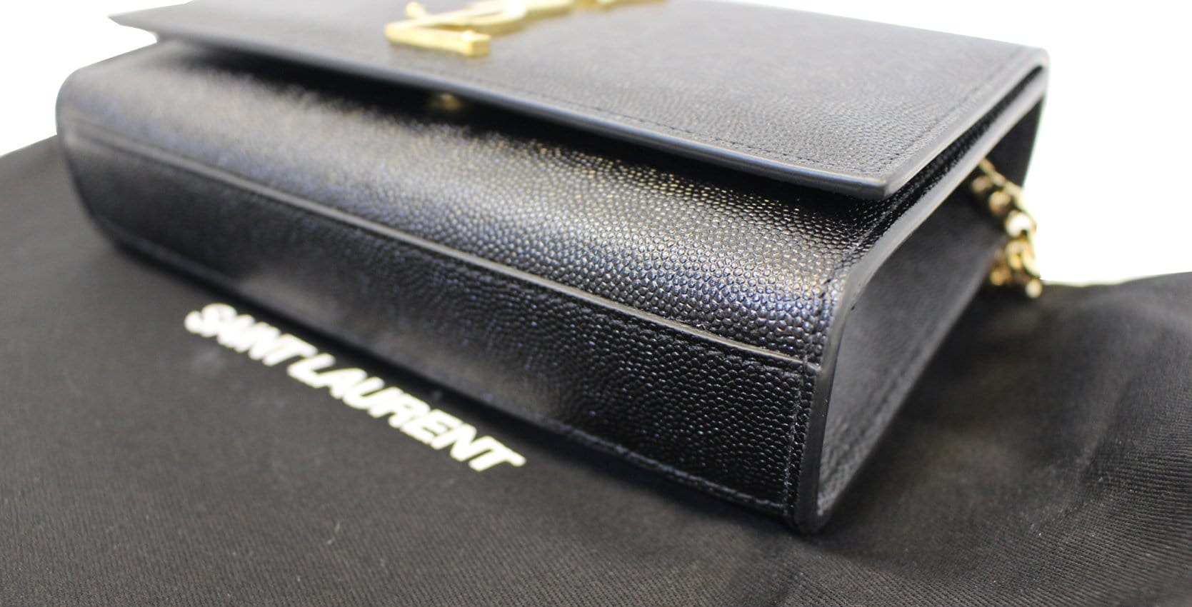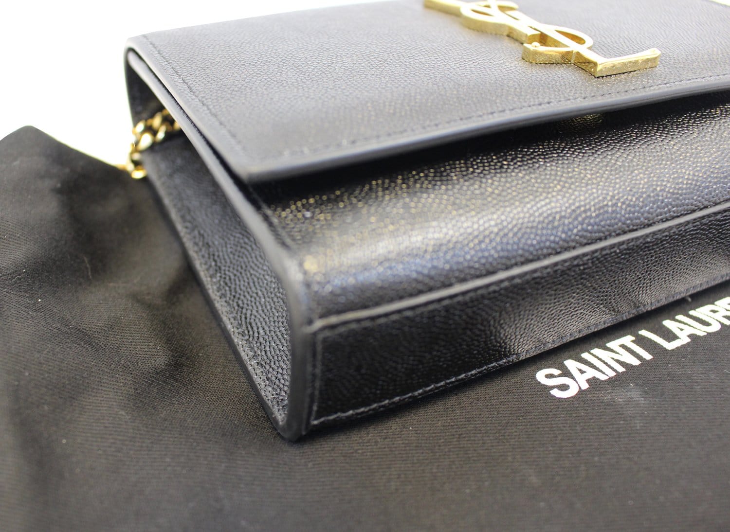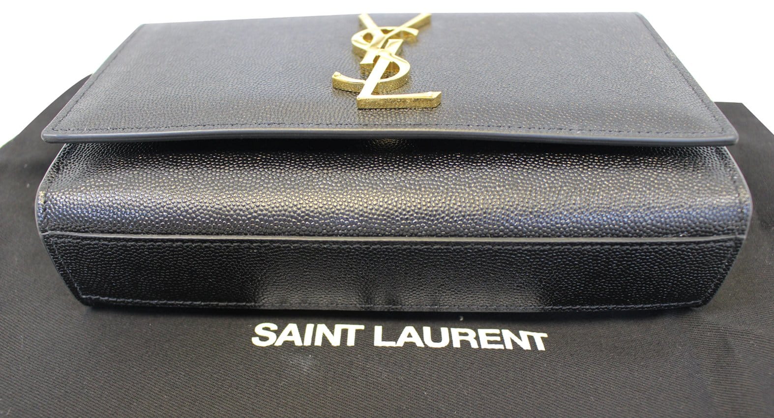 YVES SAINT LAURENT Kate Black Leather Gold Chain Clutch Crossbody Bag