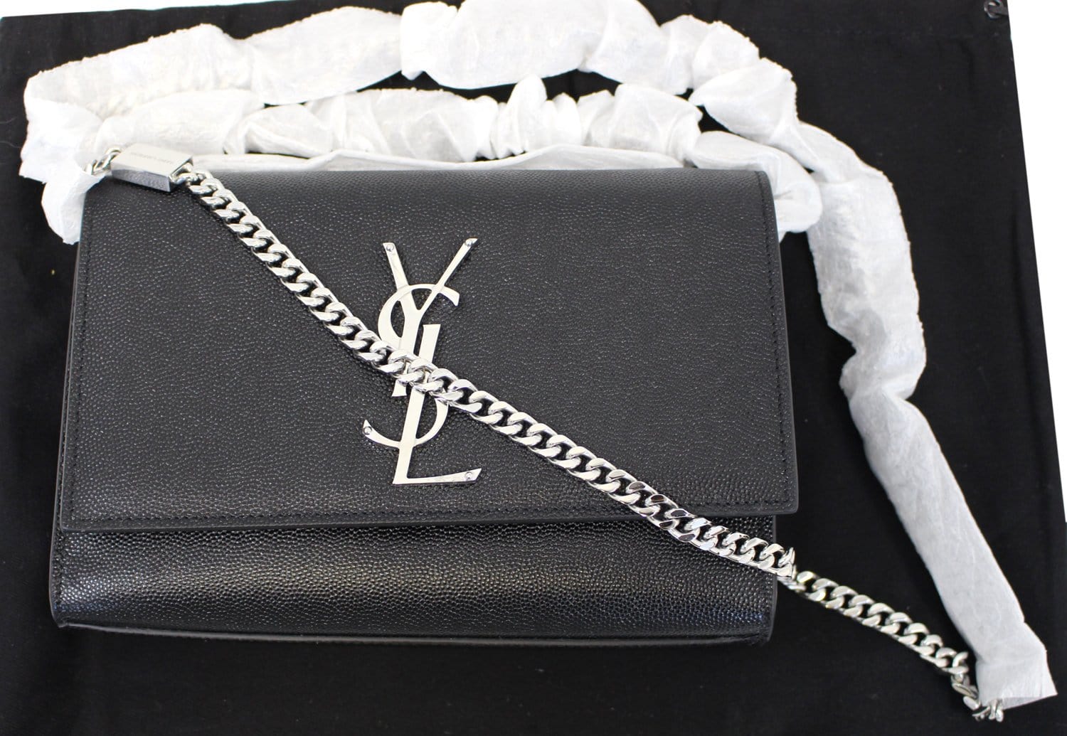 YVES SAINT LAURENT Kate Black Leather Medium Chian Clutch Crossbody Bag