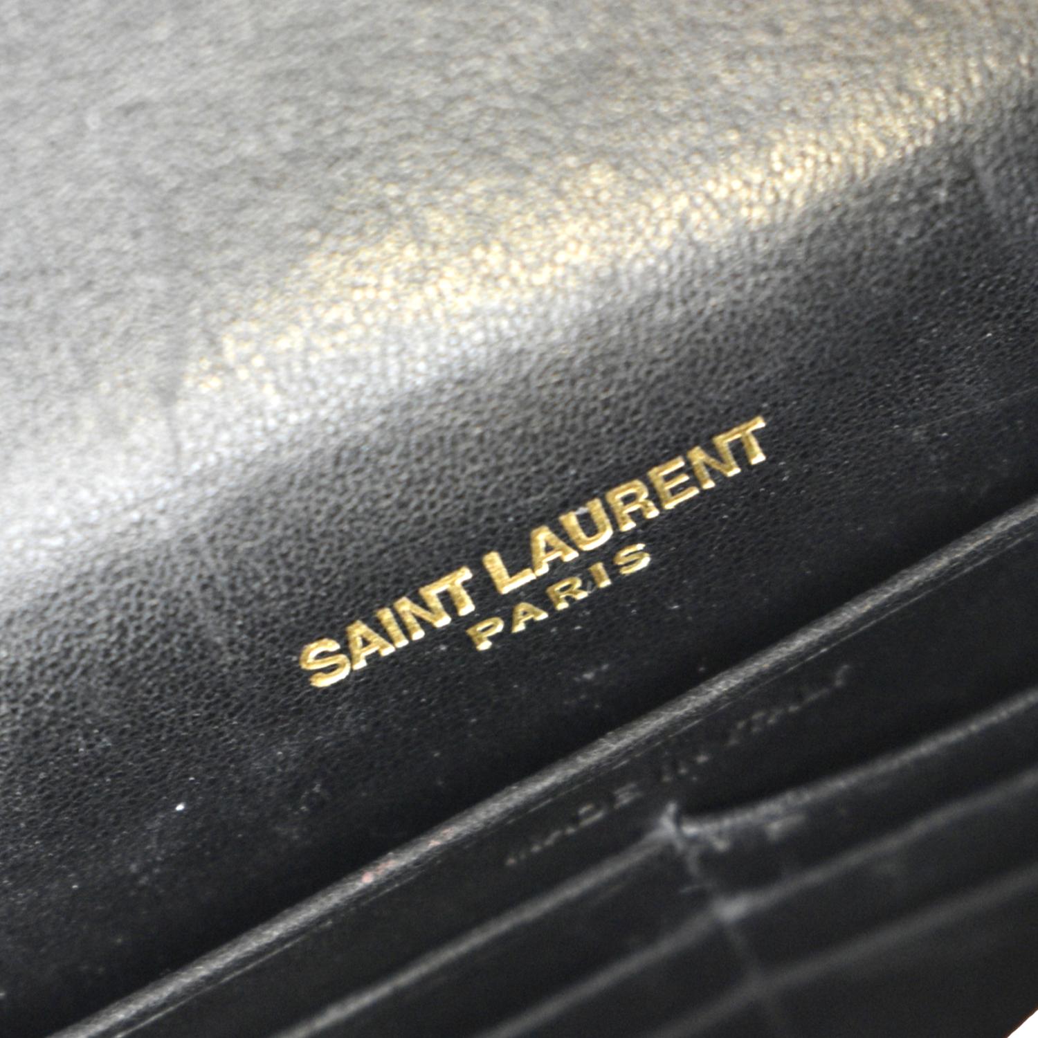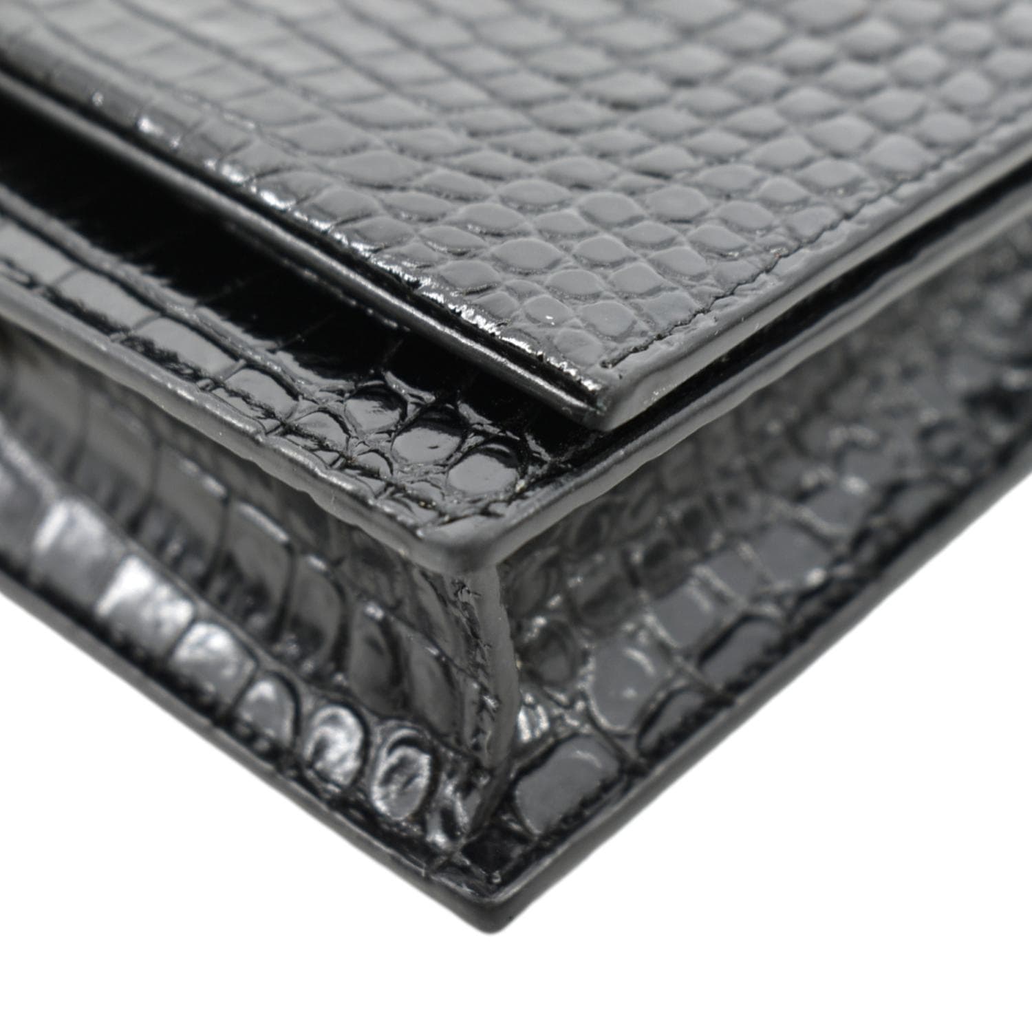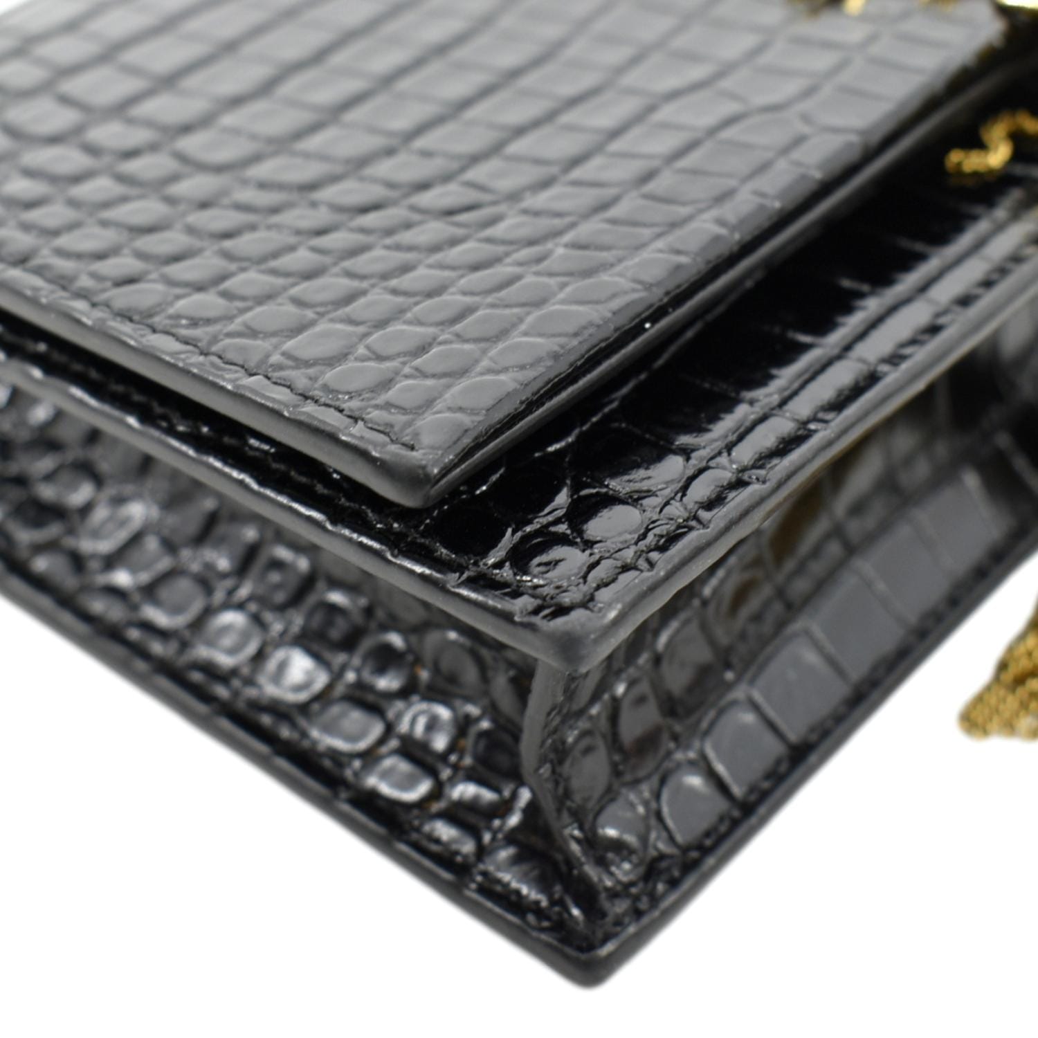 YVES SAINT LAURENT Kate Crocodile Embossed Patent Leather Shoulder Bag Black