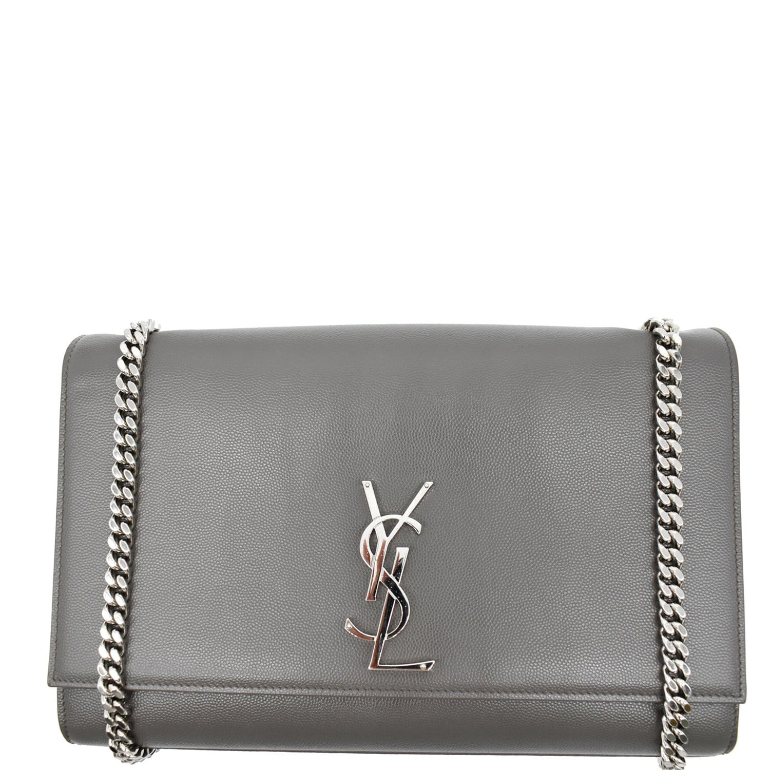 YVES SAINT LAURENT Kate Large Grain De Poudre Leather Shoulder Bag Grey