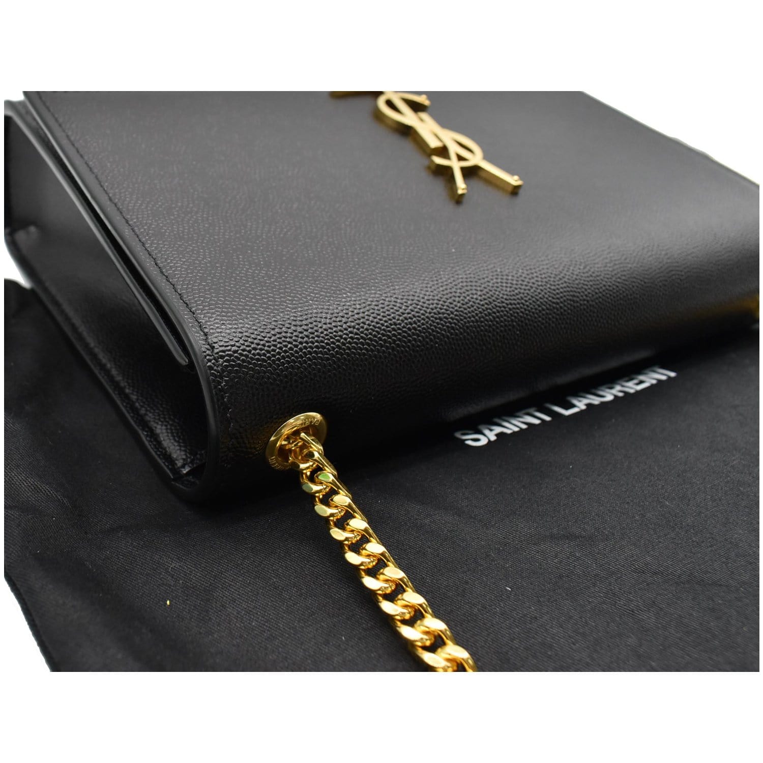 YVES SAINT LAURENT Kate Leather Gold Chain Clutch Crossbody Bag Black