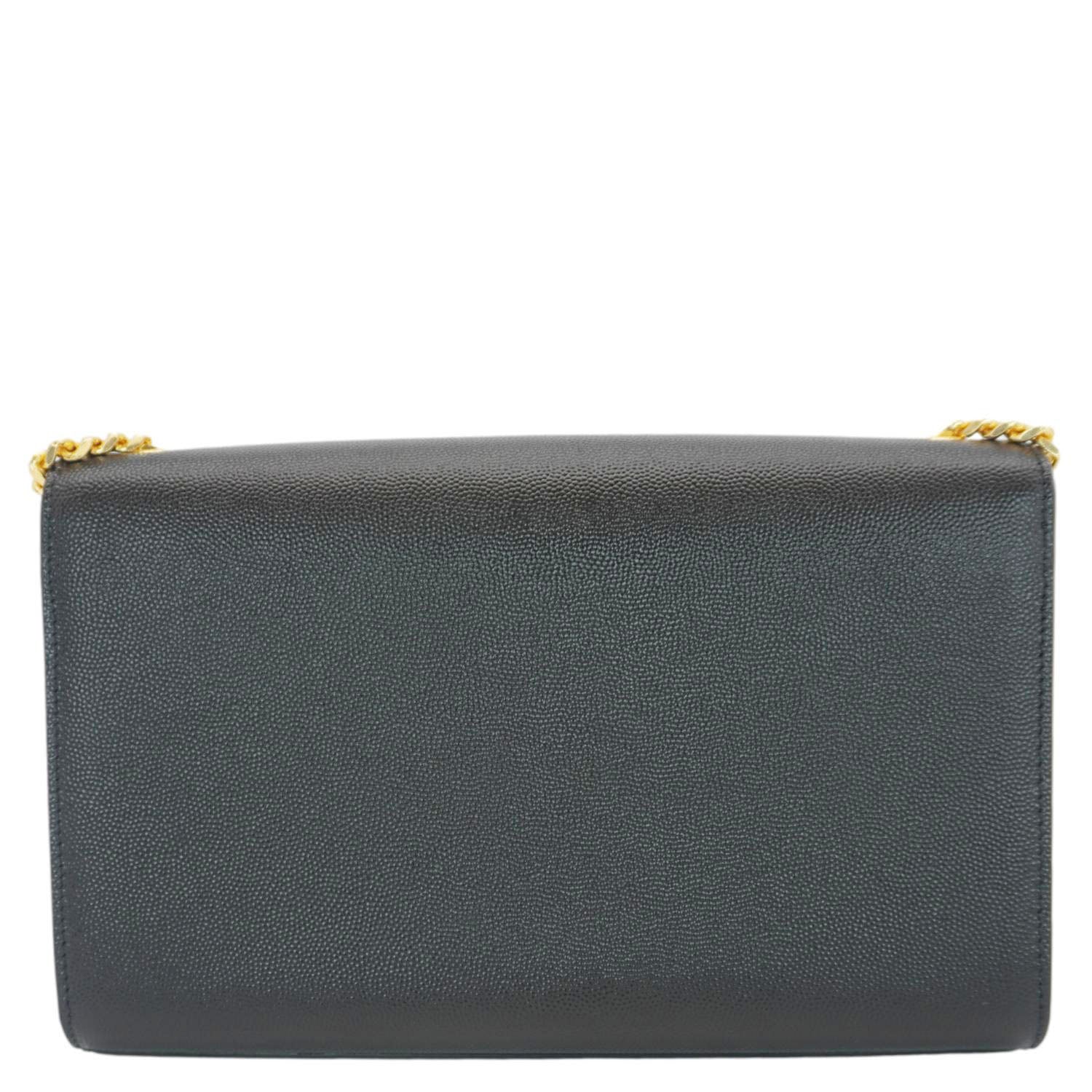 The YSL Kate Medium Crossbody Bag in black features textured Grain de Poudre leather and a signature logo. With a sleek chain strap, it’s perfect for timeless elegance.