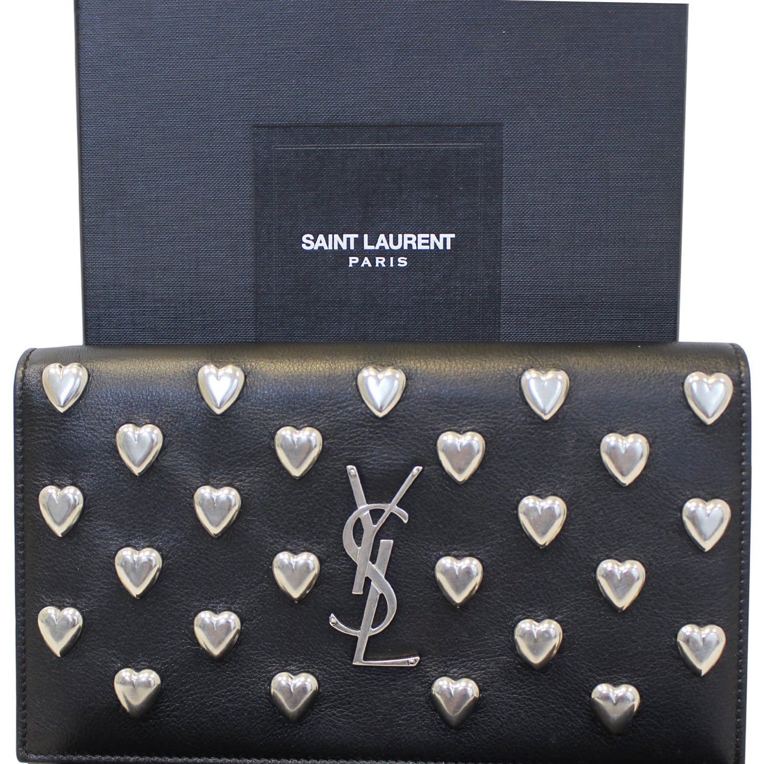 YVES SAINT LAURENT Kate Studded Black Leather Chain Clutch Crossbody Bag.