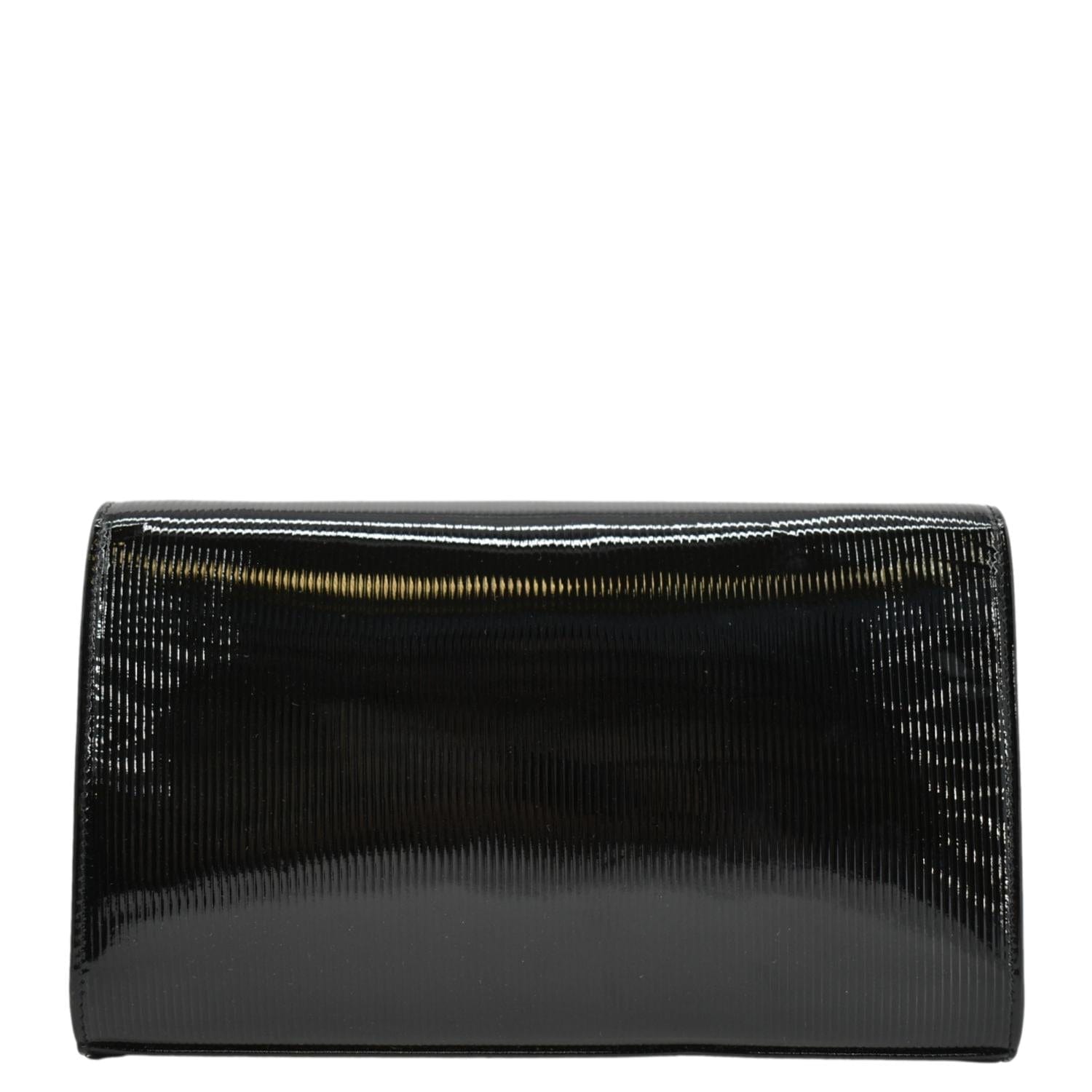 The YVES SAINT LAURENT Kate WOC Patent Leather Crossbody Bag in Black combines elegance and functionality, featuring glossy patent leather, the iconic YSL logo, and a sleek chain strap for a sophisticated, hands-free look