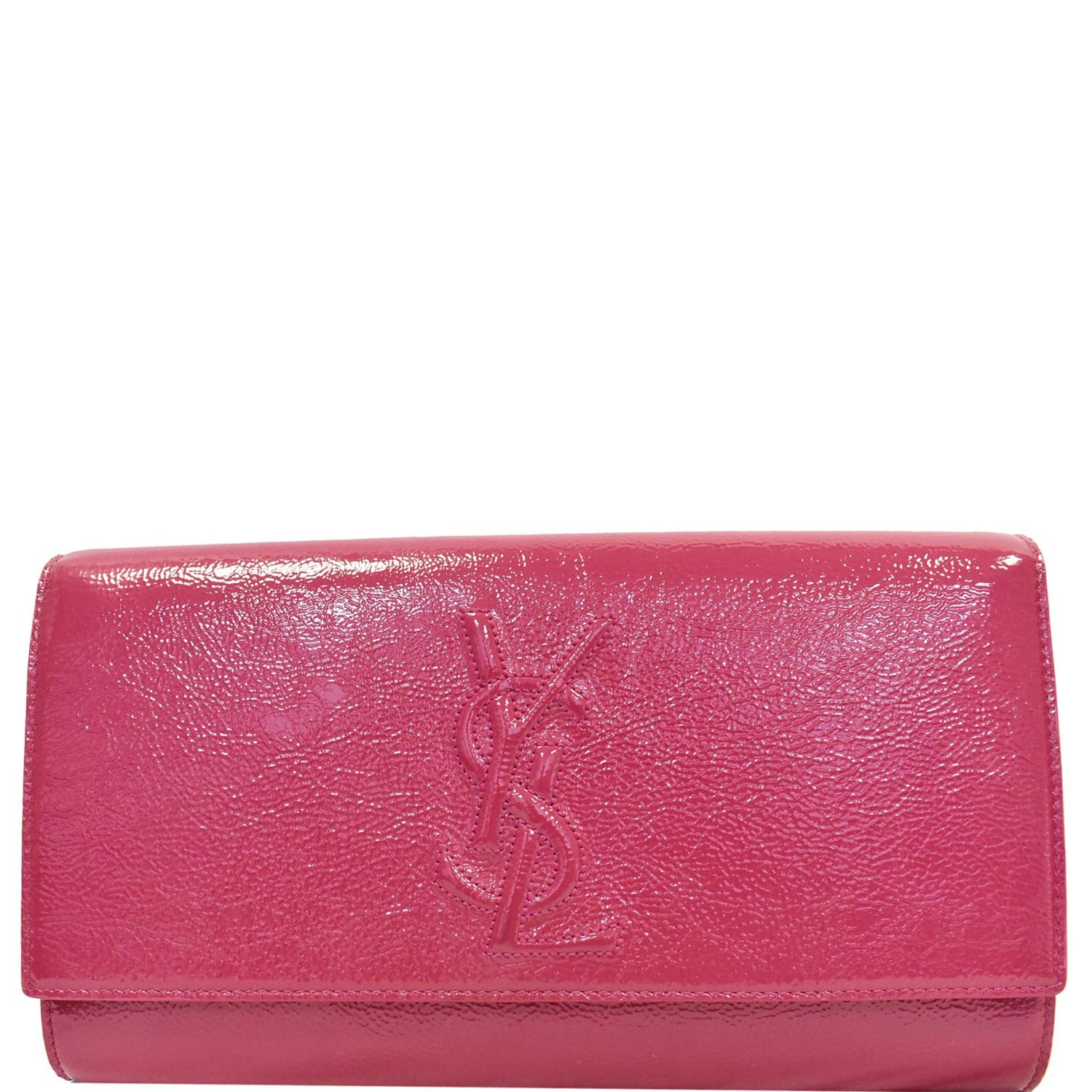 YVES SAINT LAURENT Large Belle de Jour Patent Leather Clutch Bag Pink