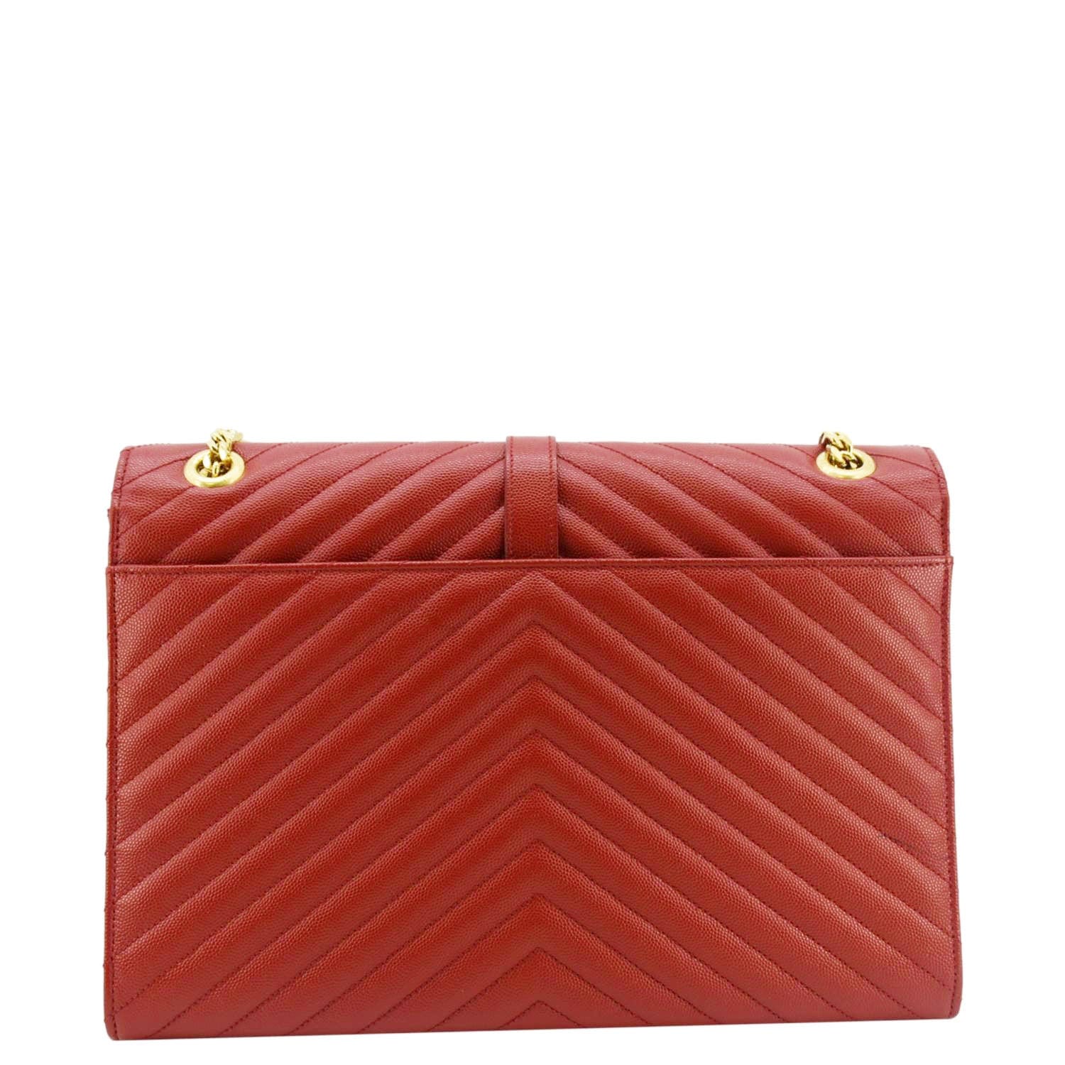 YVES SAINT LAURENT Large Envelope Chevron Quilted Leather Chain Shoulder Bag Red