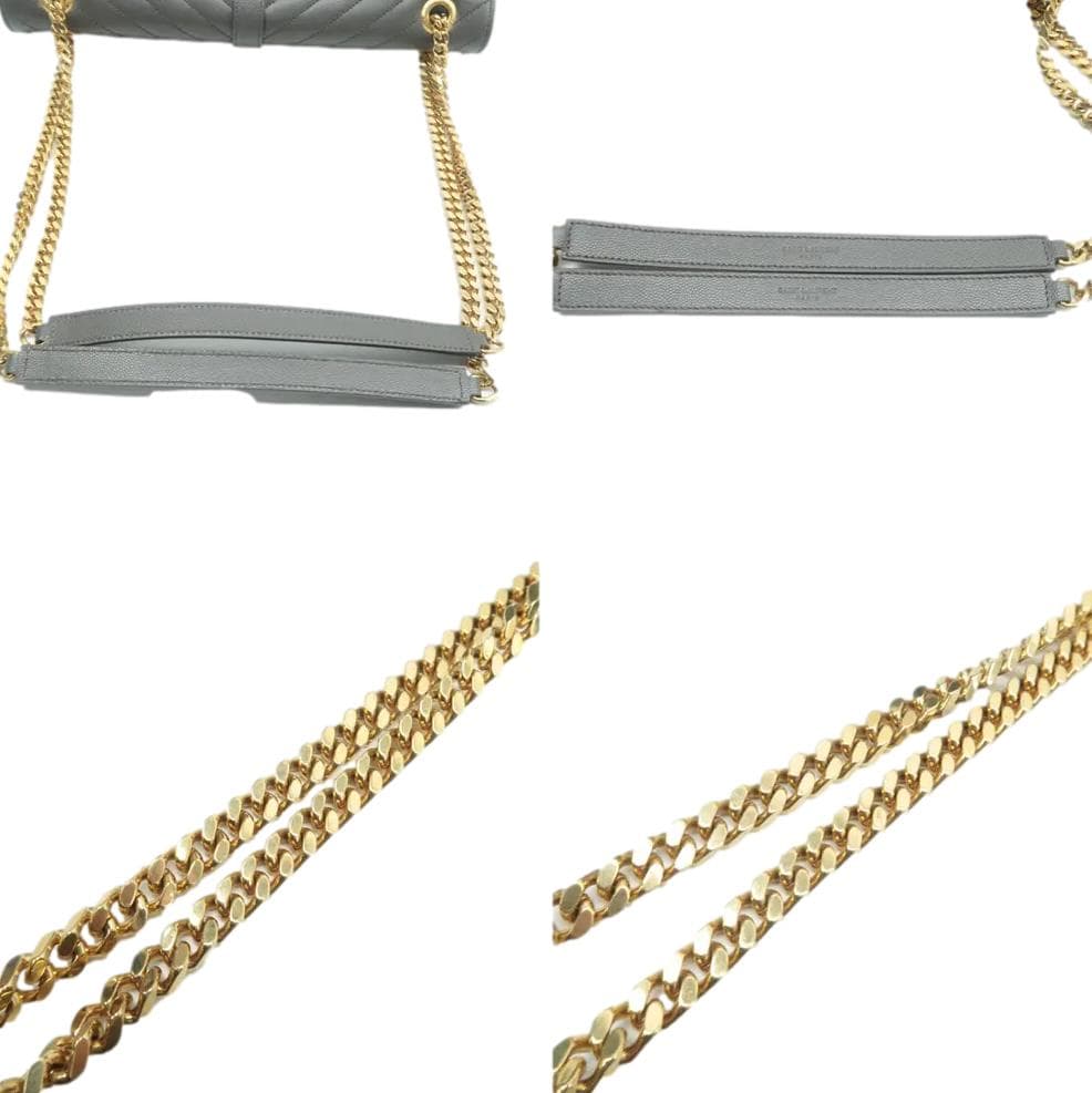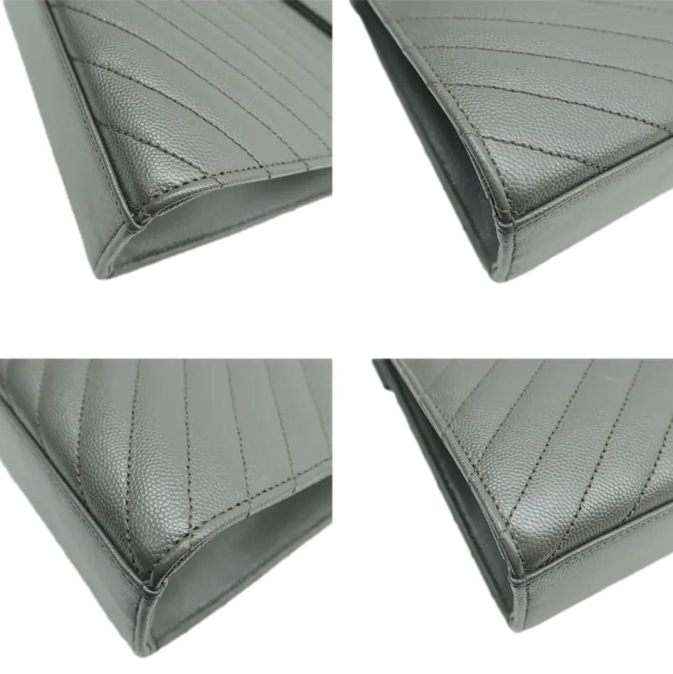 YVES SAINT LAURENT Large Envelope Chevron Leather Shoulder Bag Gray