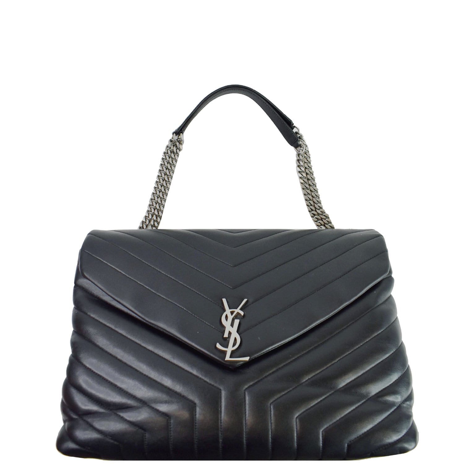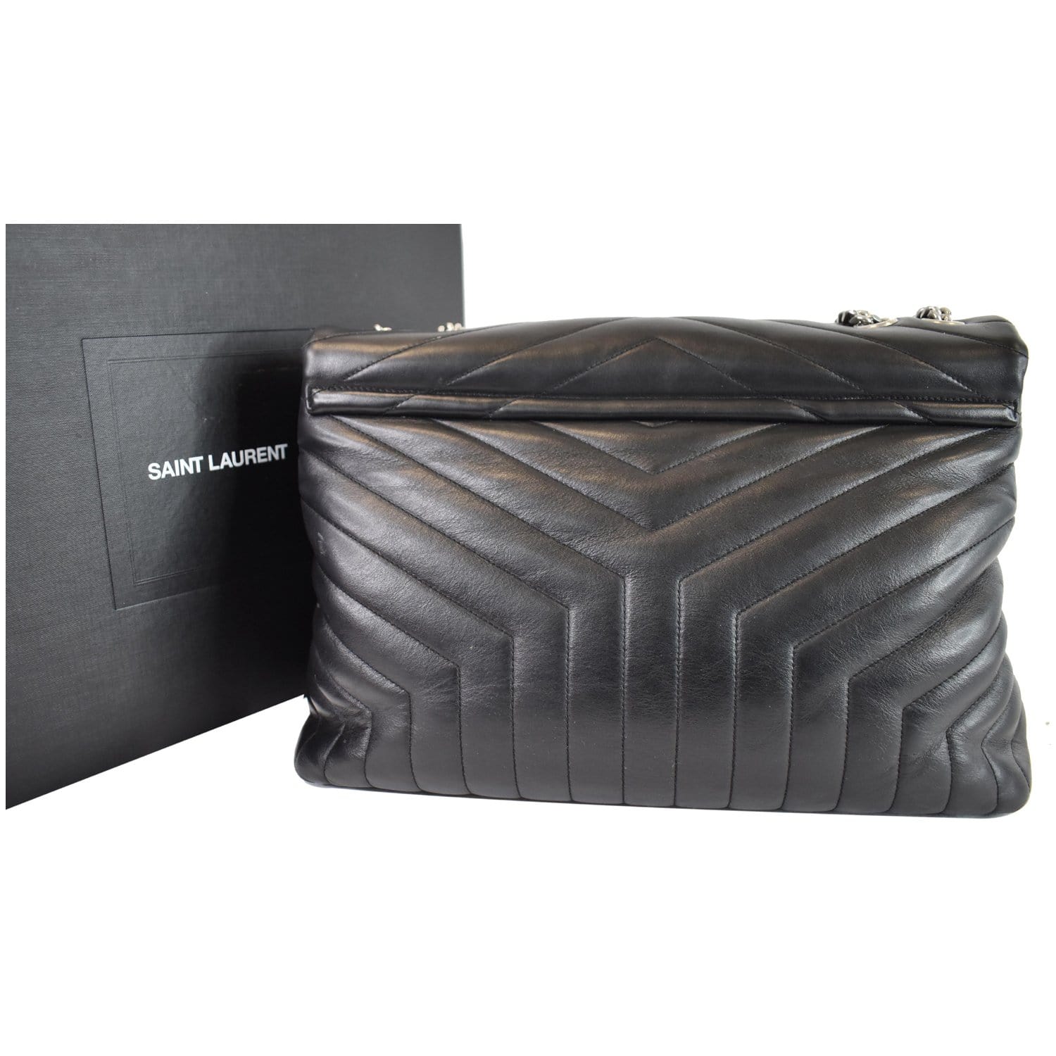 YVES SAINT LAURENT Large Loulou Calfskin Matelasse Chain Shoulder Bag Black