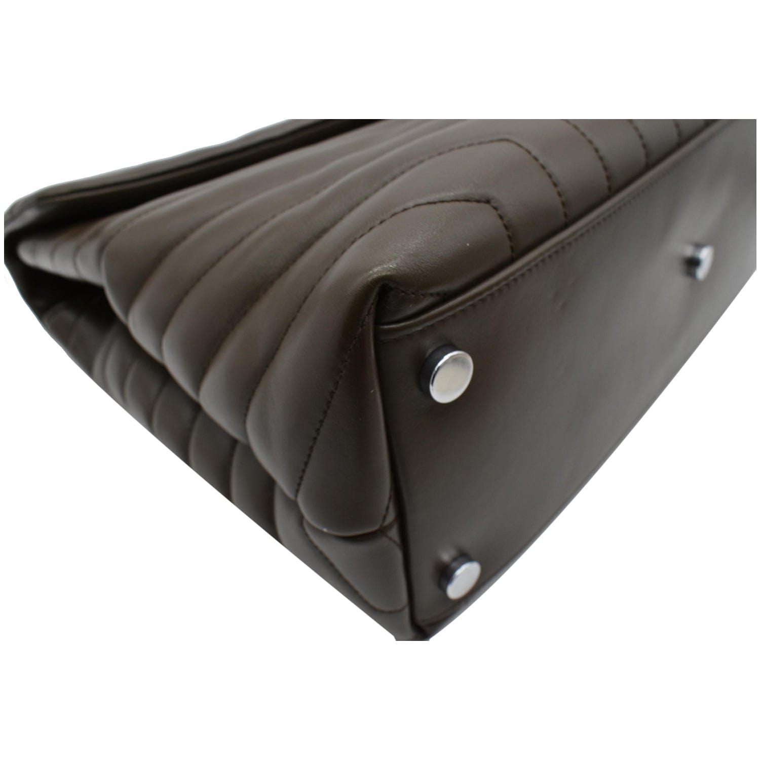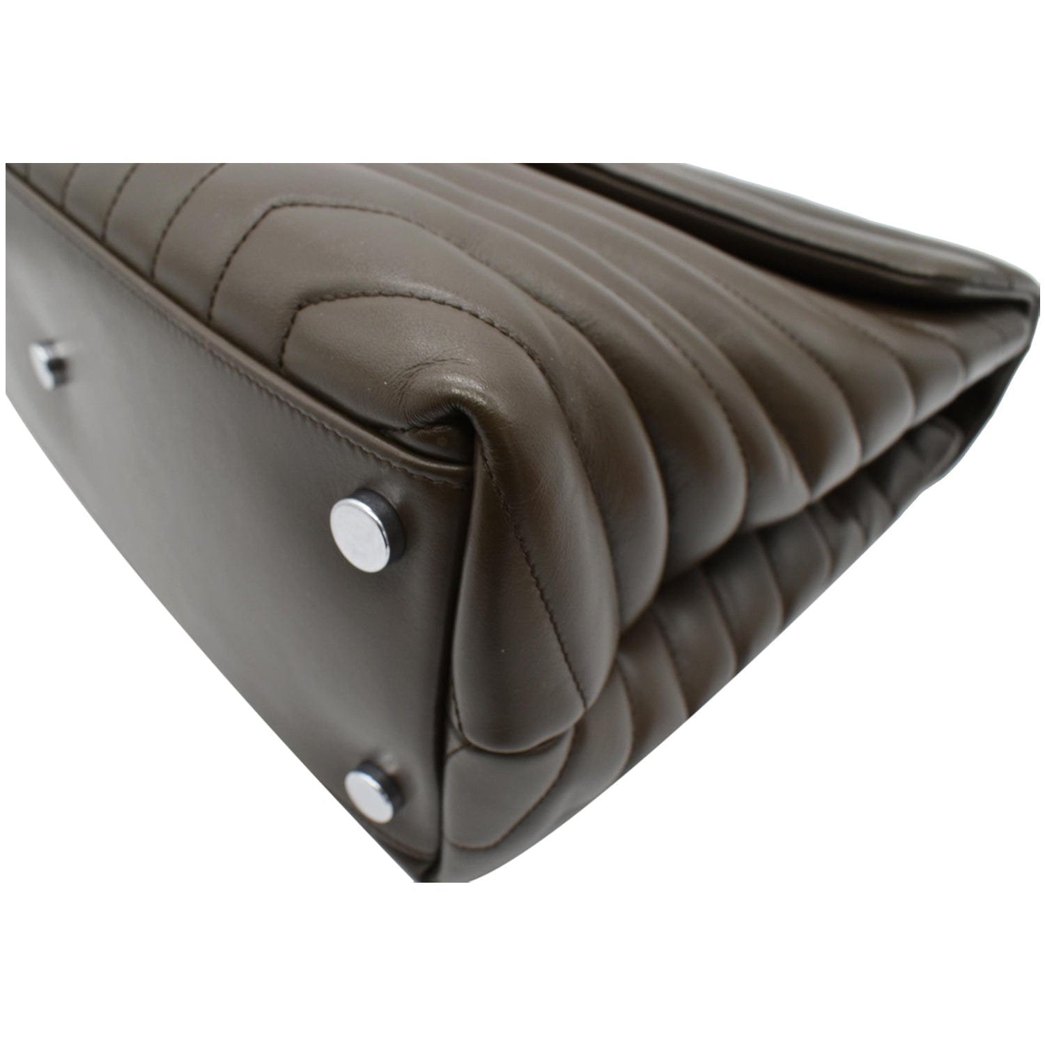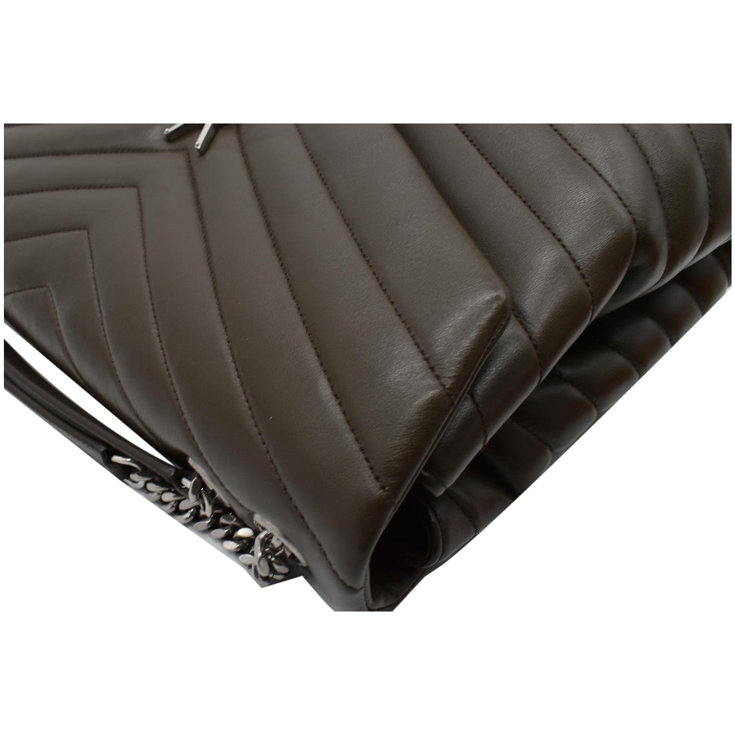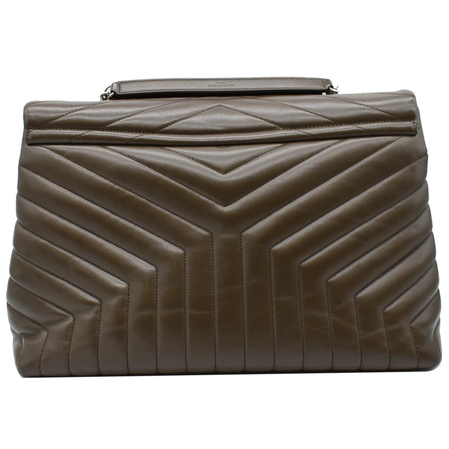 YVES SAINT LAURENT Large Loulou Calfskin Matelasse Chain Shoulder Bag Khaki Green