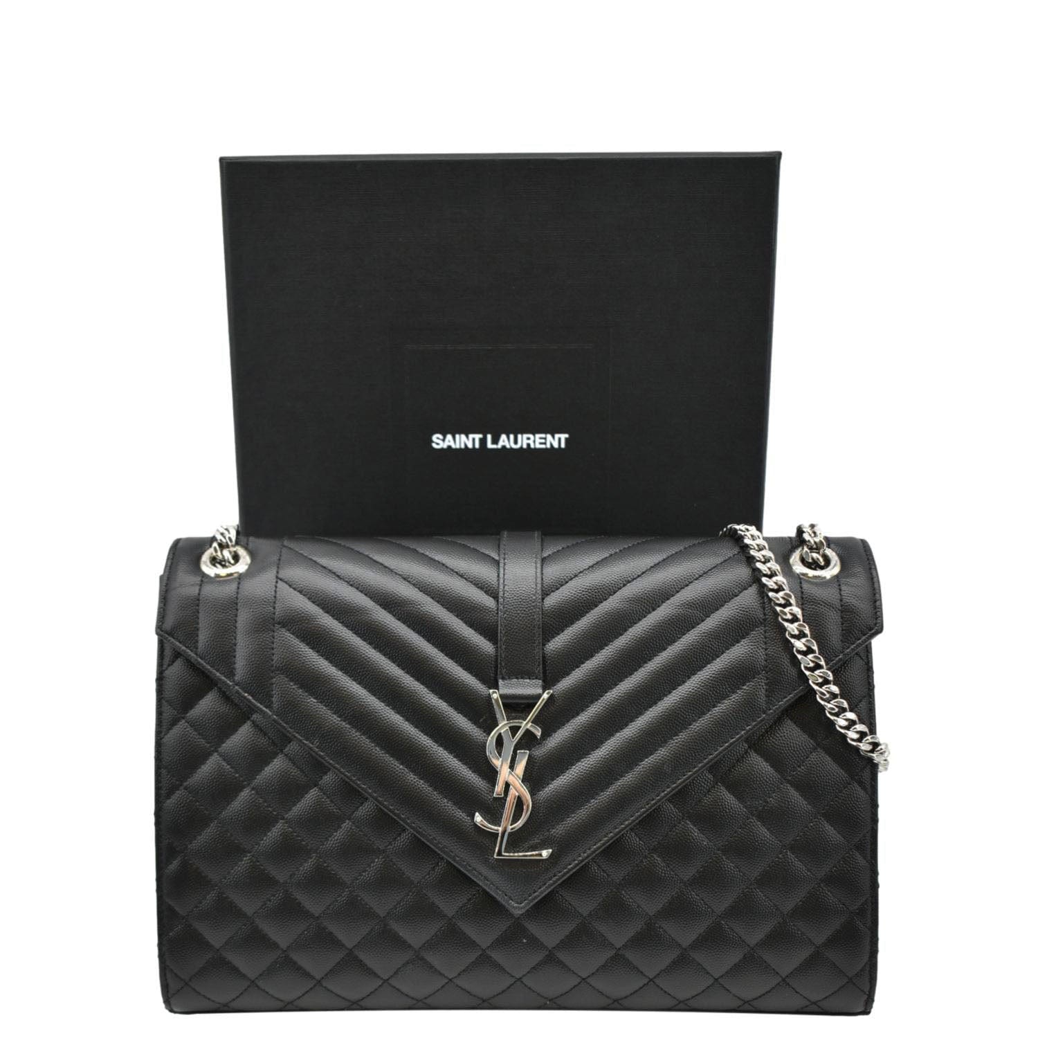 YVES SAINT LAURENT Large Envelope Mix Matelasse Leather Chain Shoulder Bag Black