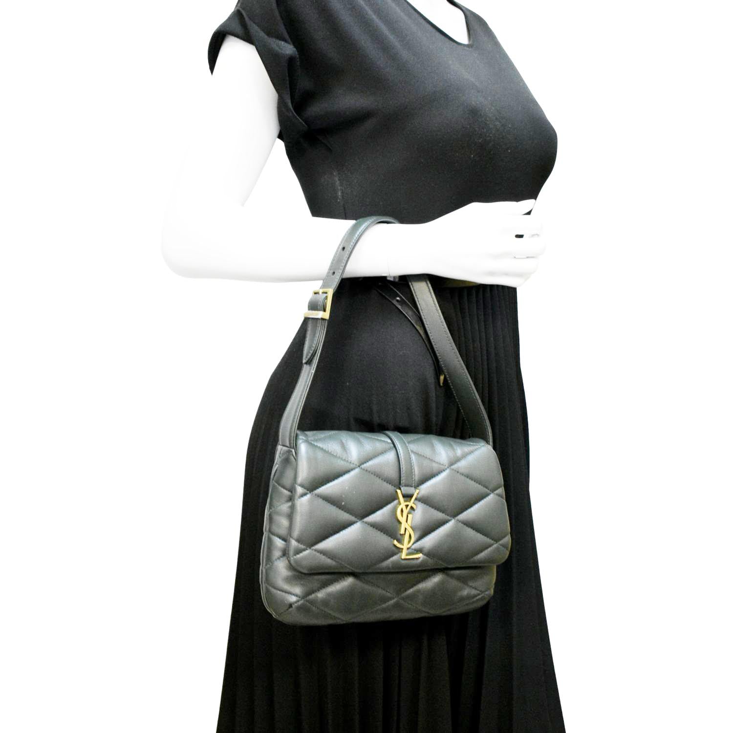 YVES SAINT LAURENT LE 57 Quilted Lambskin Leather Hobo Bag Green