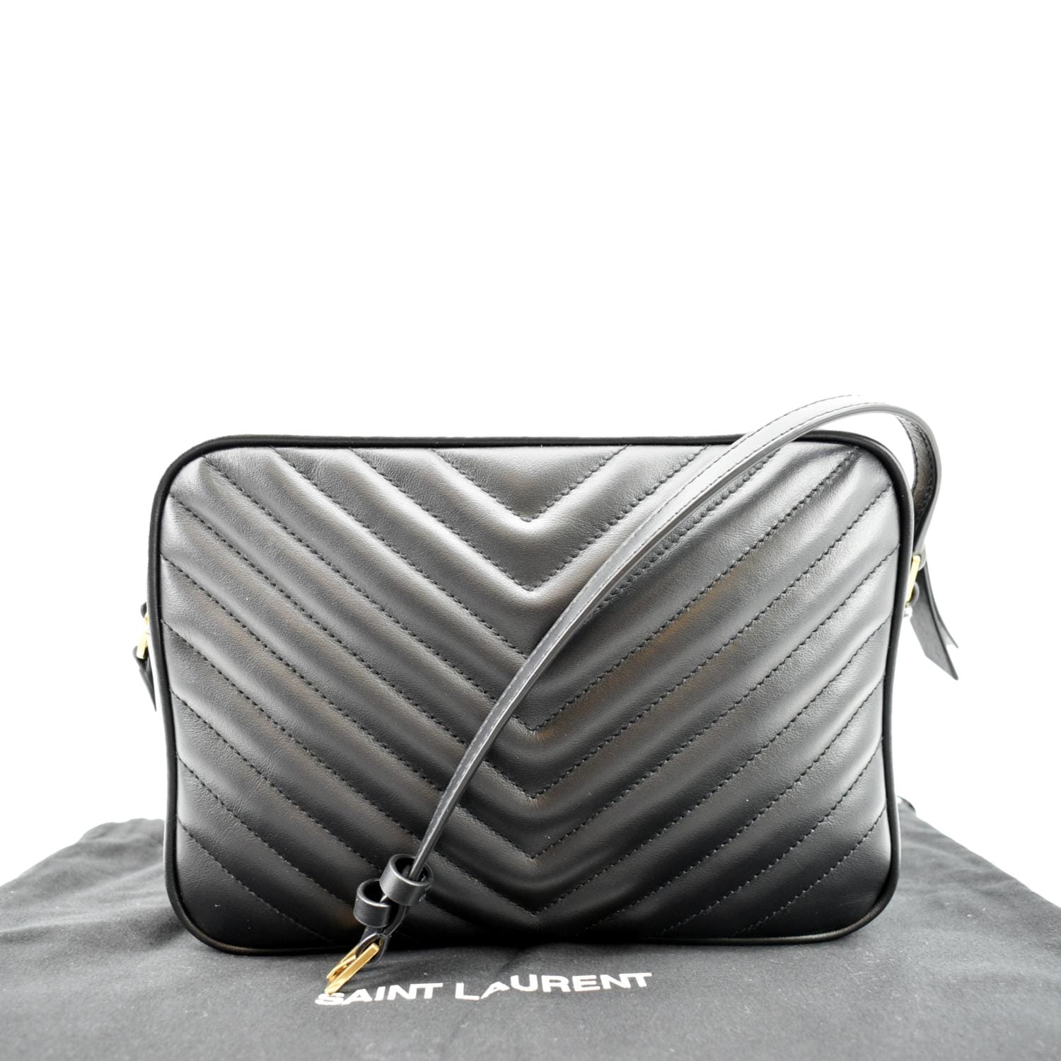 YVES SAINT LAURENT Lou Camera Chevron Leather Crossbody Bag Black