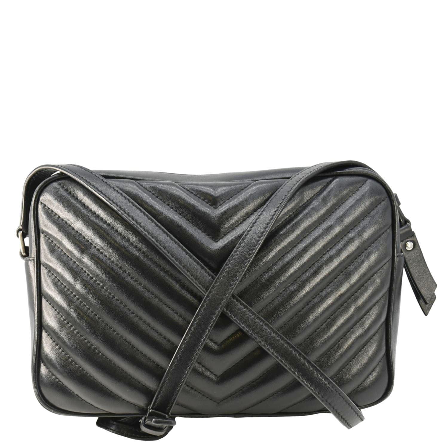 YVES SAINT LAURENT Lou Camera Chevron Leather Crossbody Bag Black