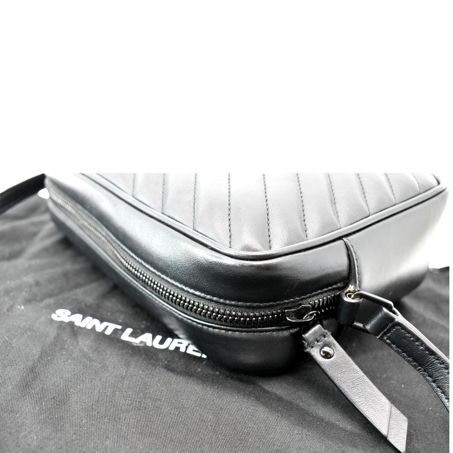 YVES SAINT LAURENT Lou Chevron Leather Camera Crossbody Bag Black