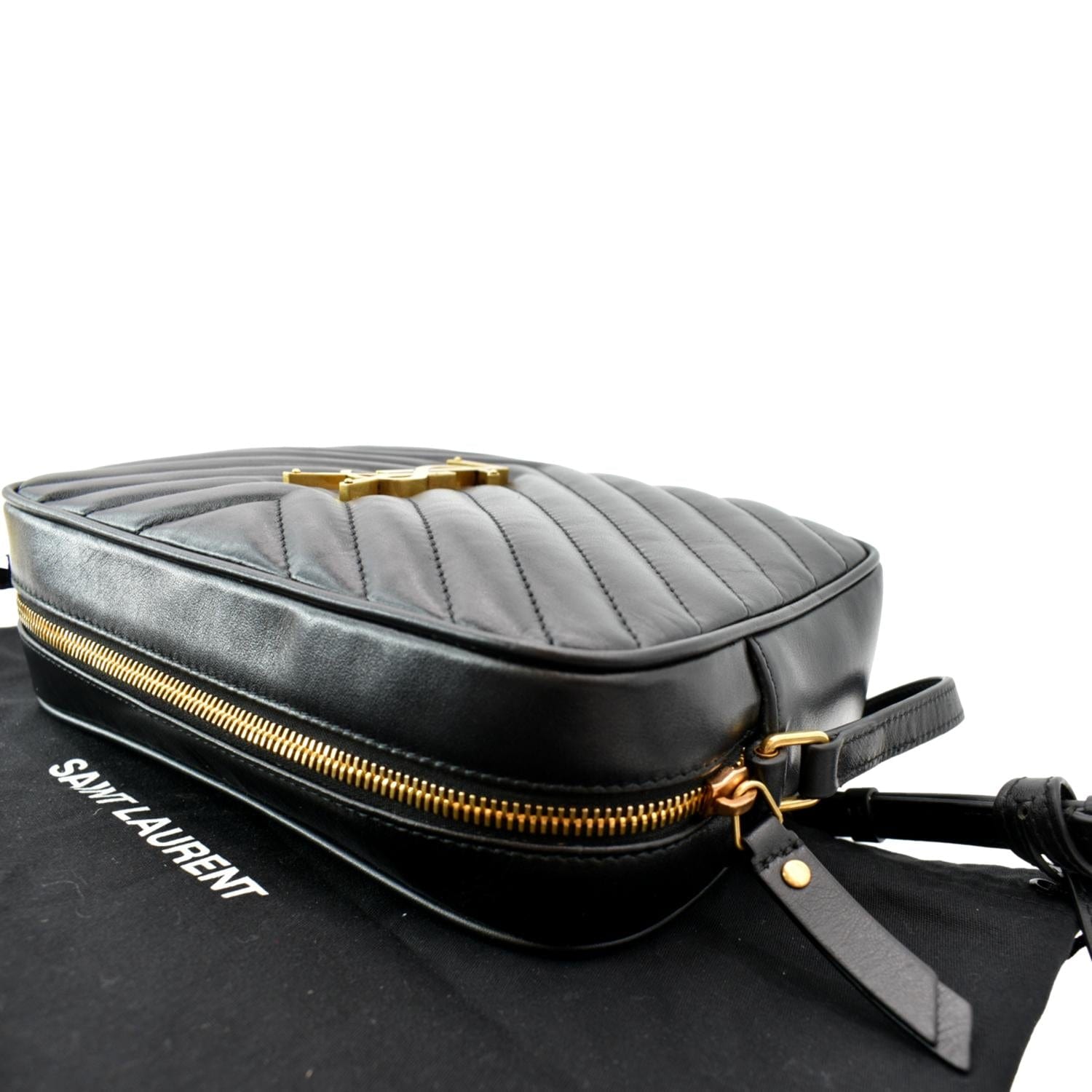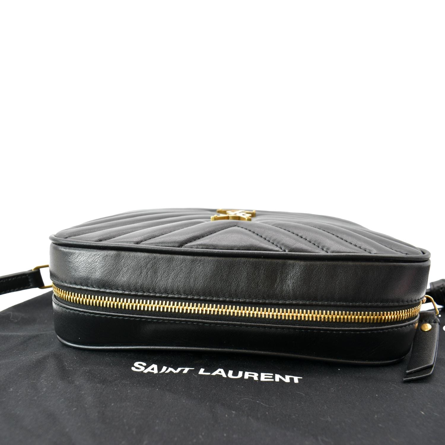 YVES SAINT LAURENT Lou Chevron Leather Camera Crossbody Bag Black