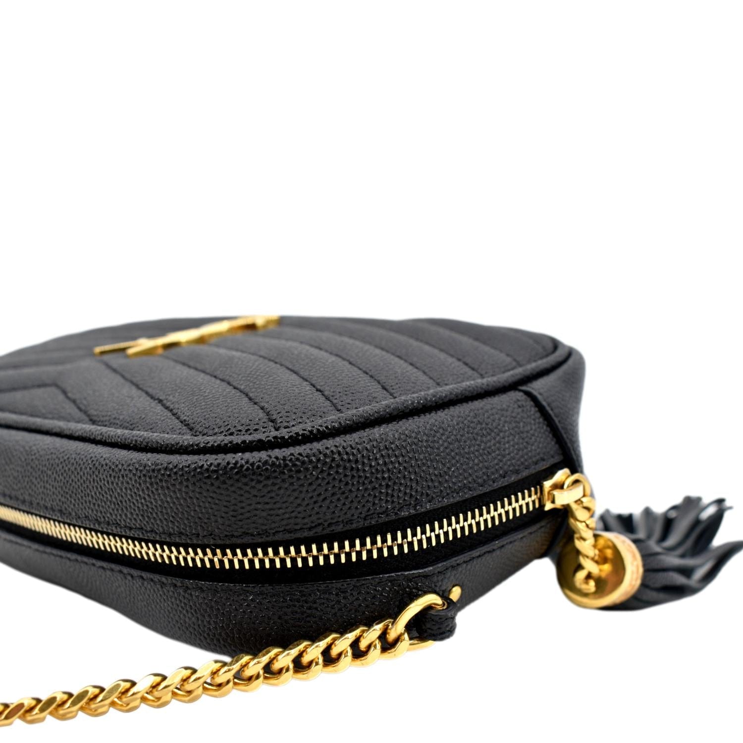 YVES SAINT LAURENT Lou Chevron Leather Camera Crossbody Bag Black