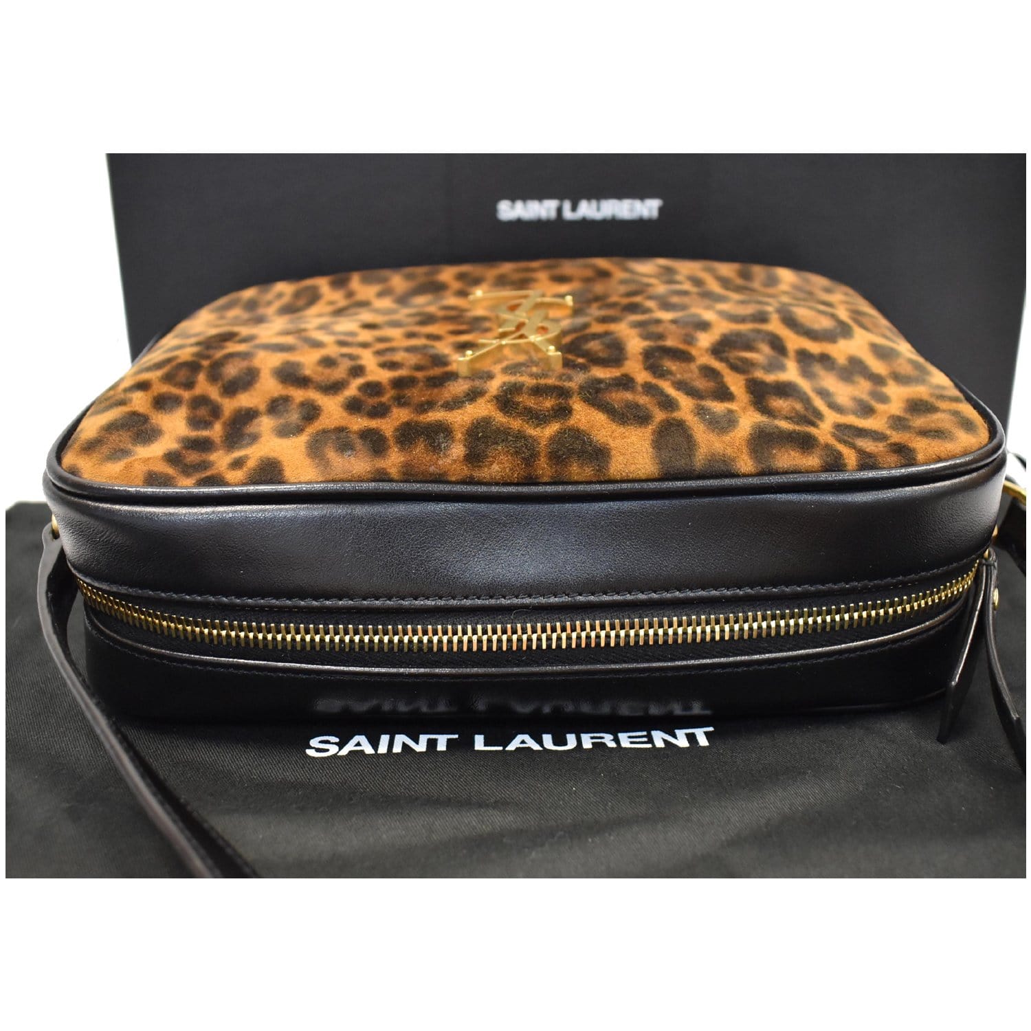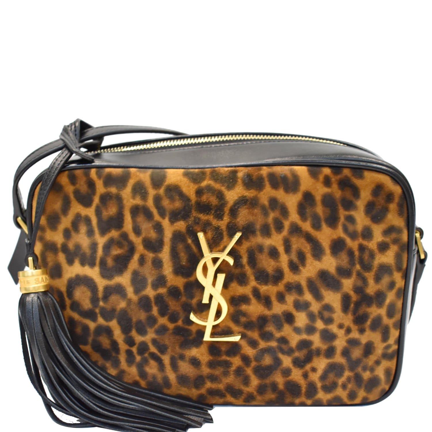 YVES SAINT LAURENT Lou Camera Leopard-Print Leather Crossbody Bag Black