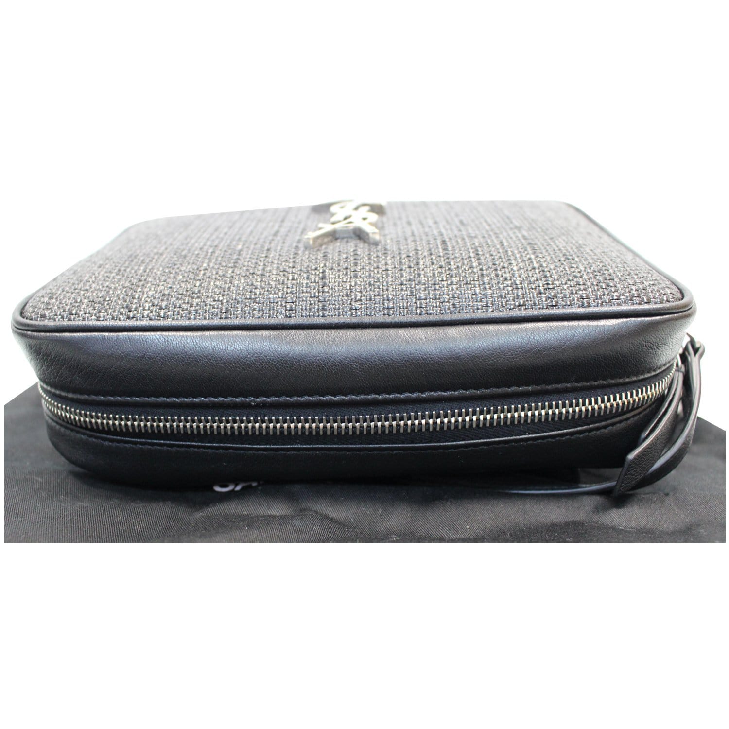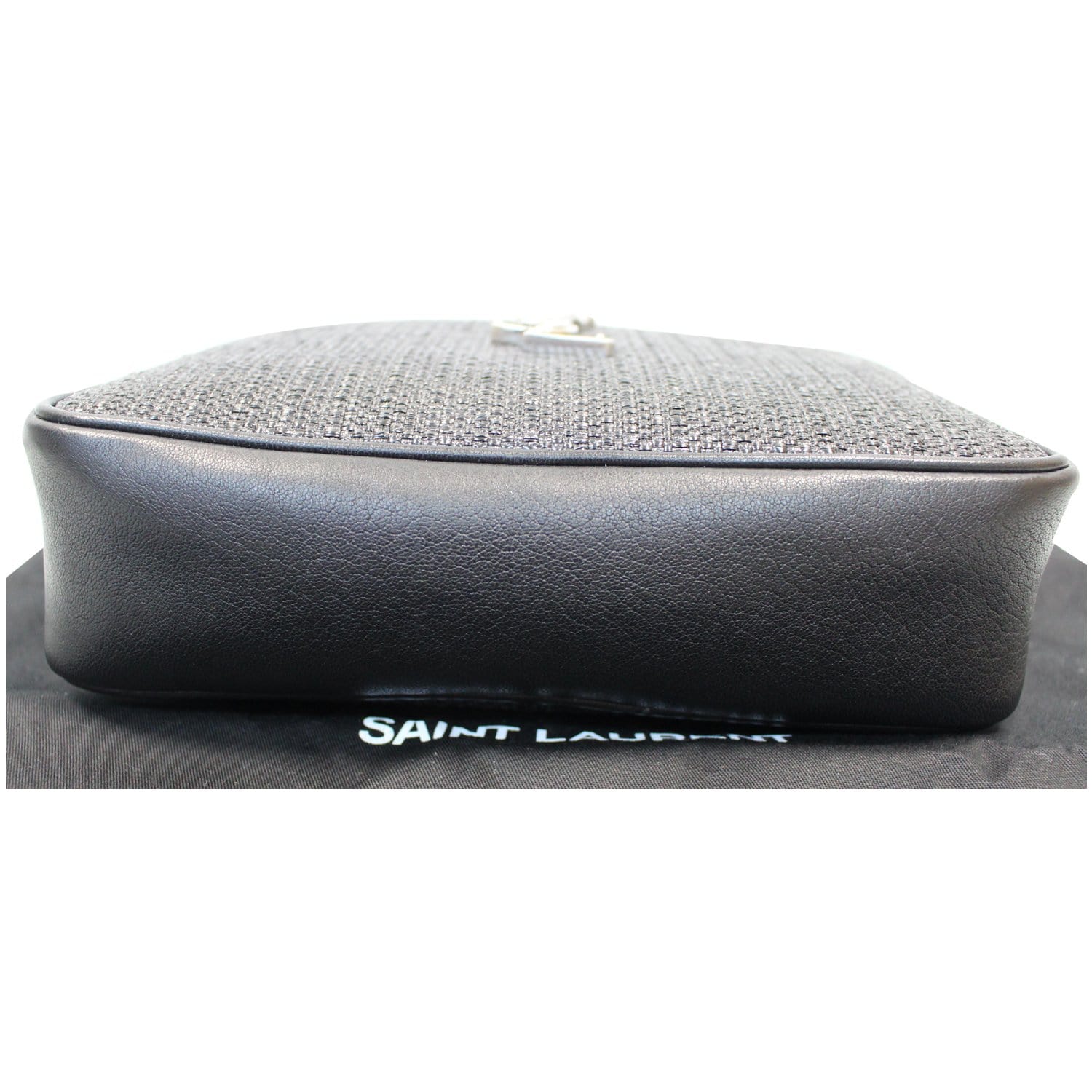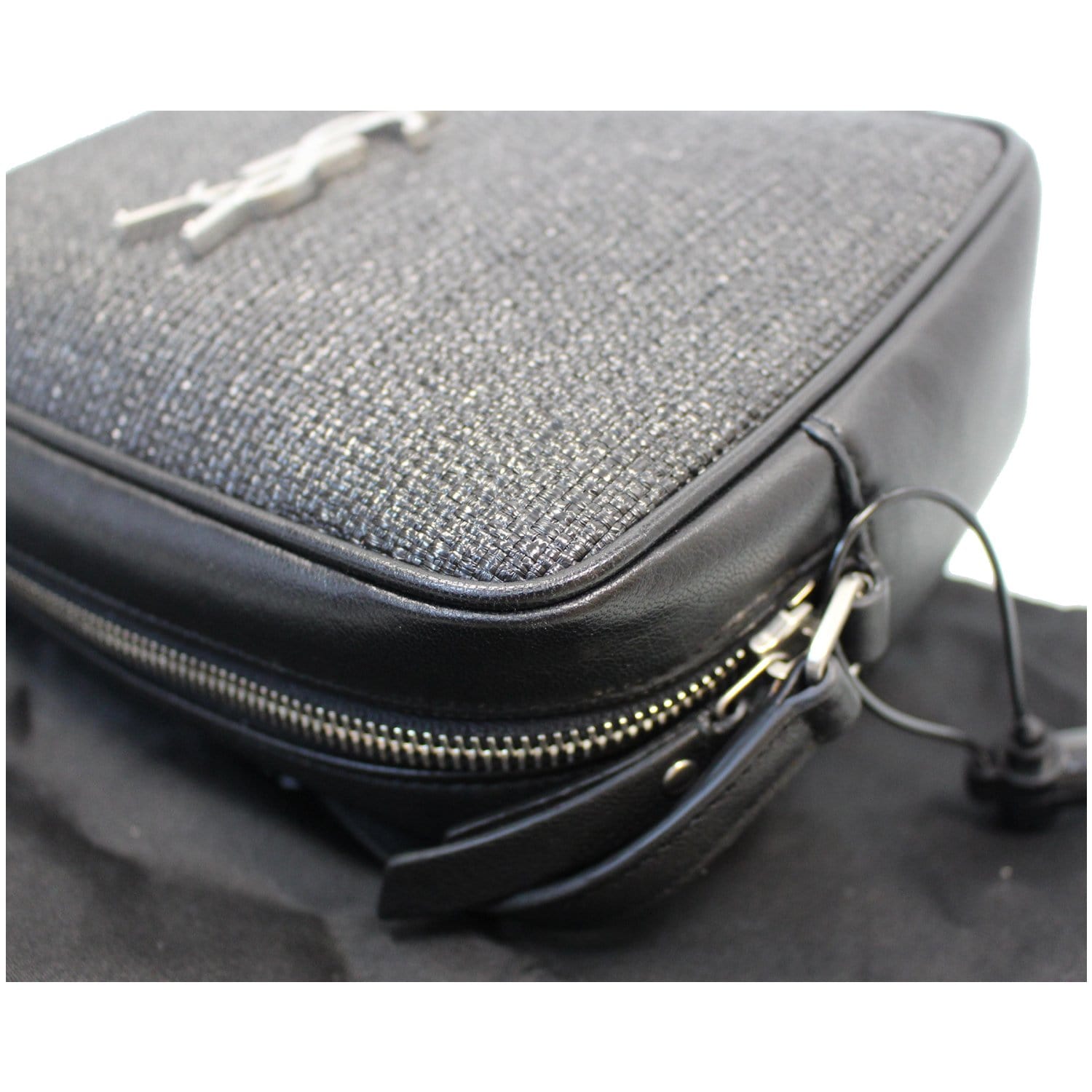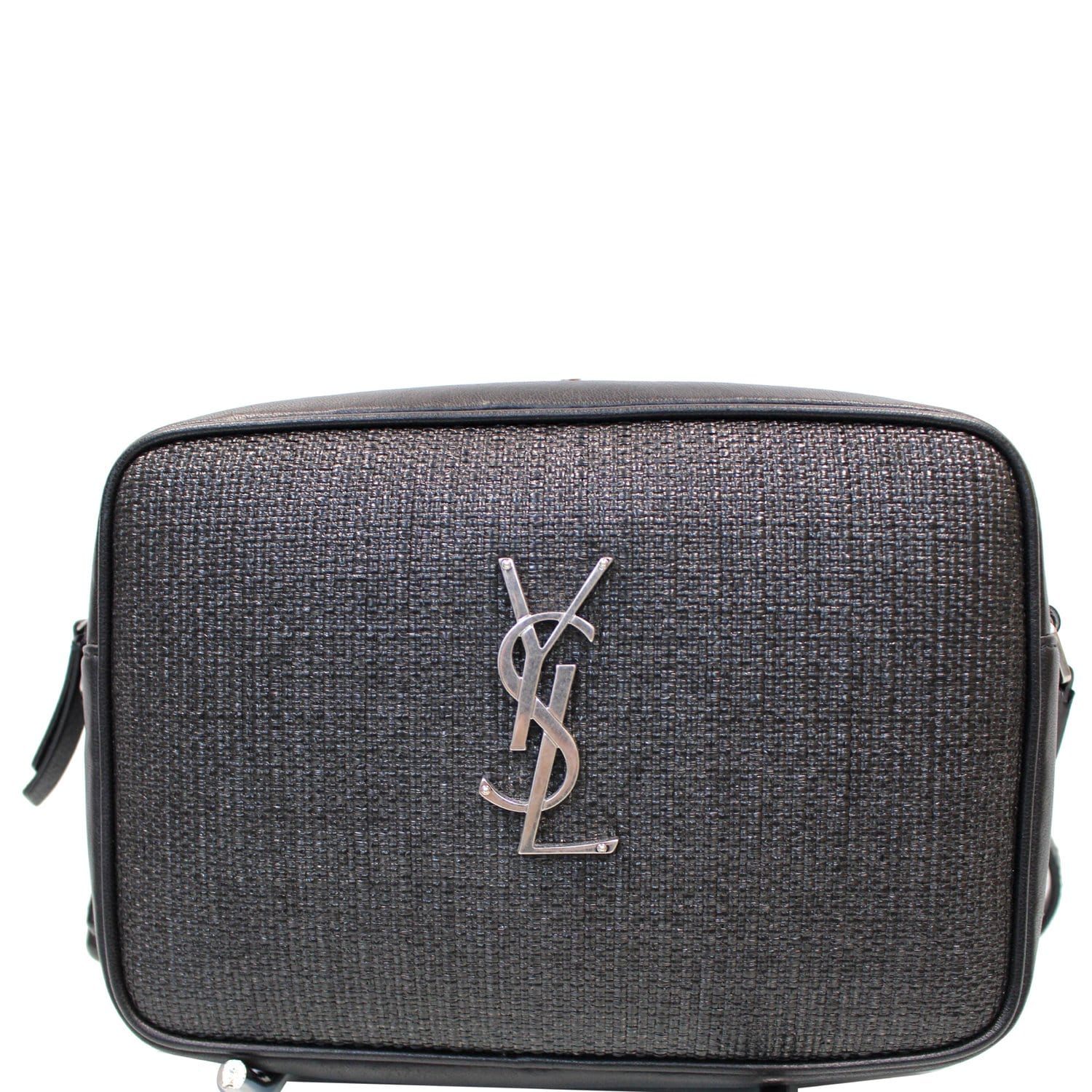 YVES SAINT LAURENT Lou Camera Raffia Canvas Crossbody Bag Black