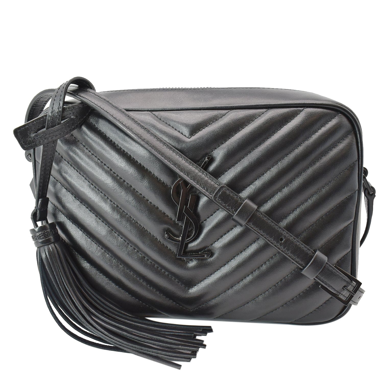 Yves Saint Laurent Lou Chevron Leather Camera Crossbody Bag Black
