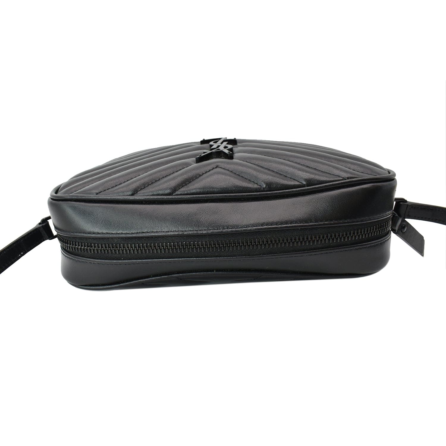 YVES SAINT LAURENT Lou Chevron Leather Camera Crossbody Bag Black