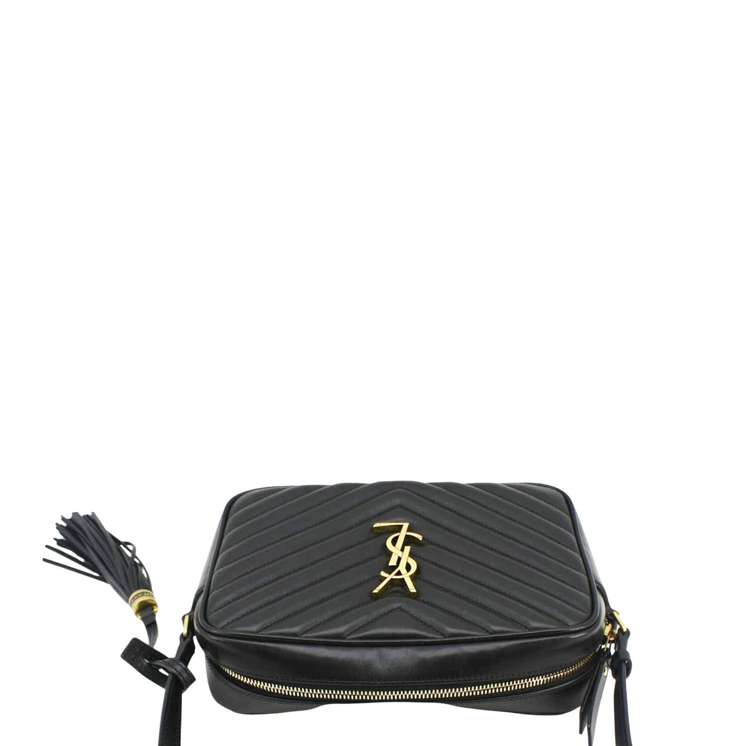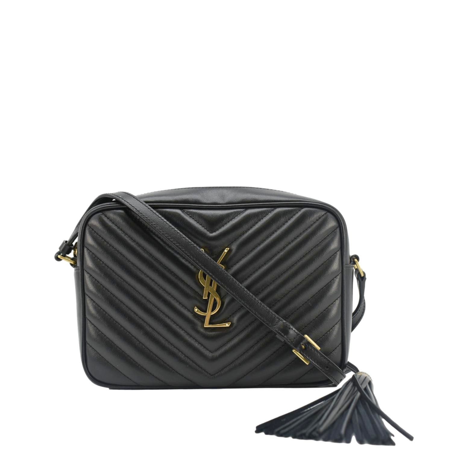 YVES SAINT LAURENT Lou Medium Quilted Leather Camera Crossbody Bag Black
