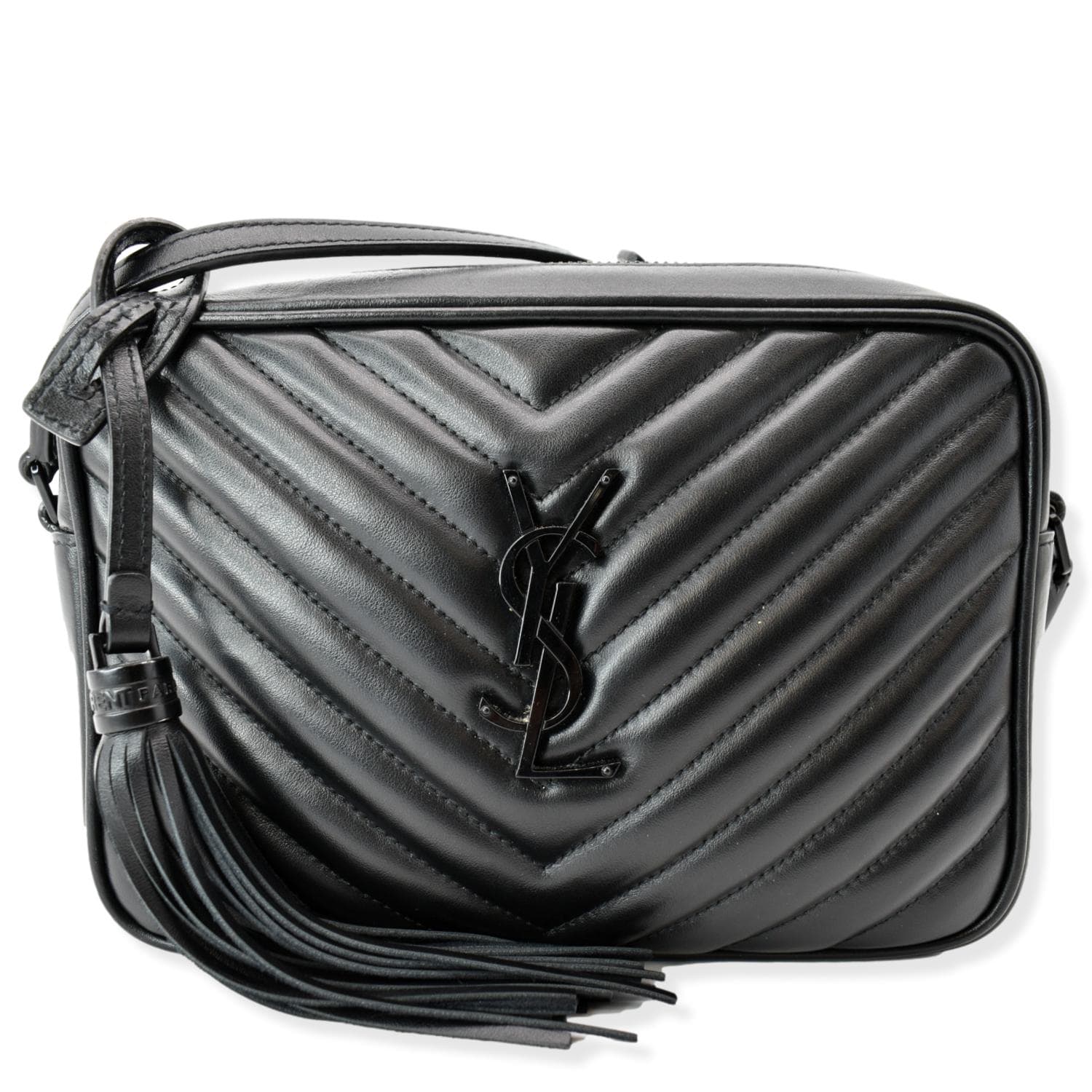 YVES SAINT LAURENT Lou Chevron Leather Camera Crossbody Bag Black