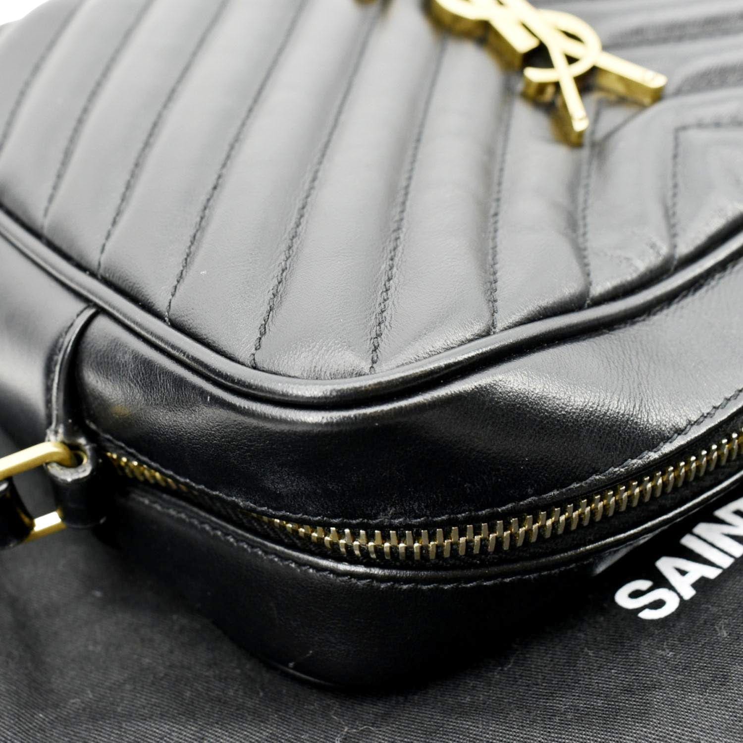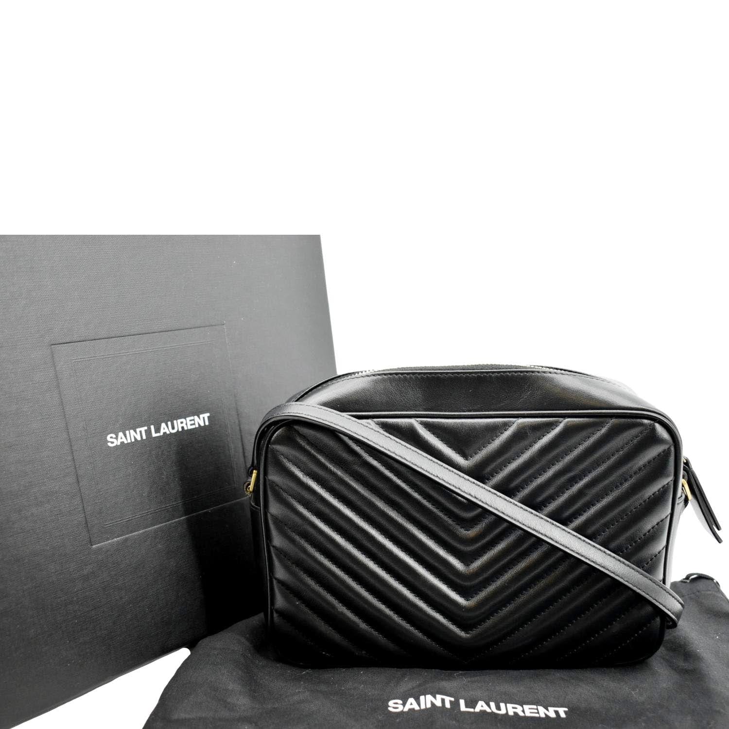 YVES SAINT LAURENT Lou Chevron Leather Camera Crossbody Bag Black