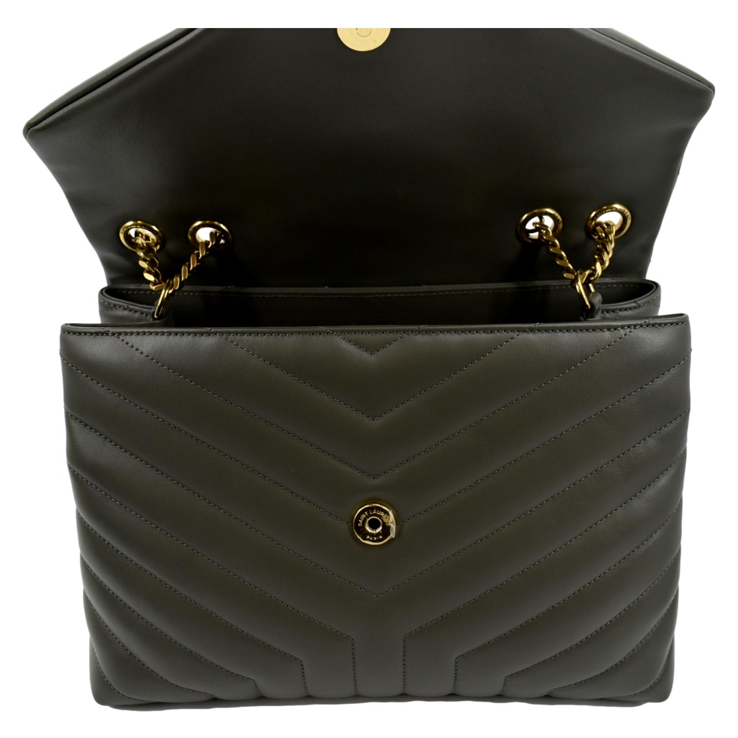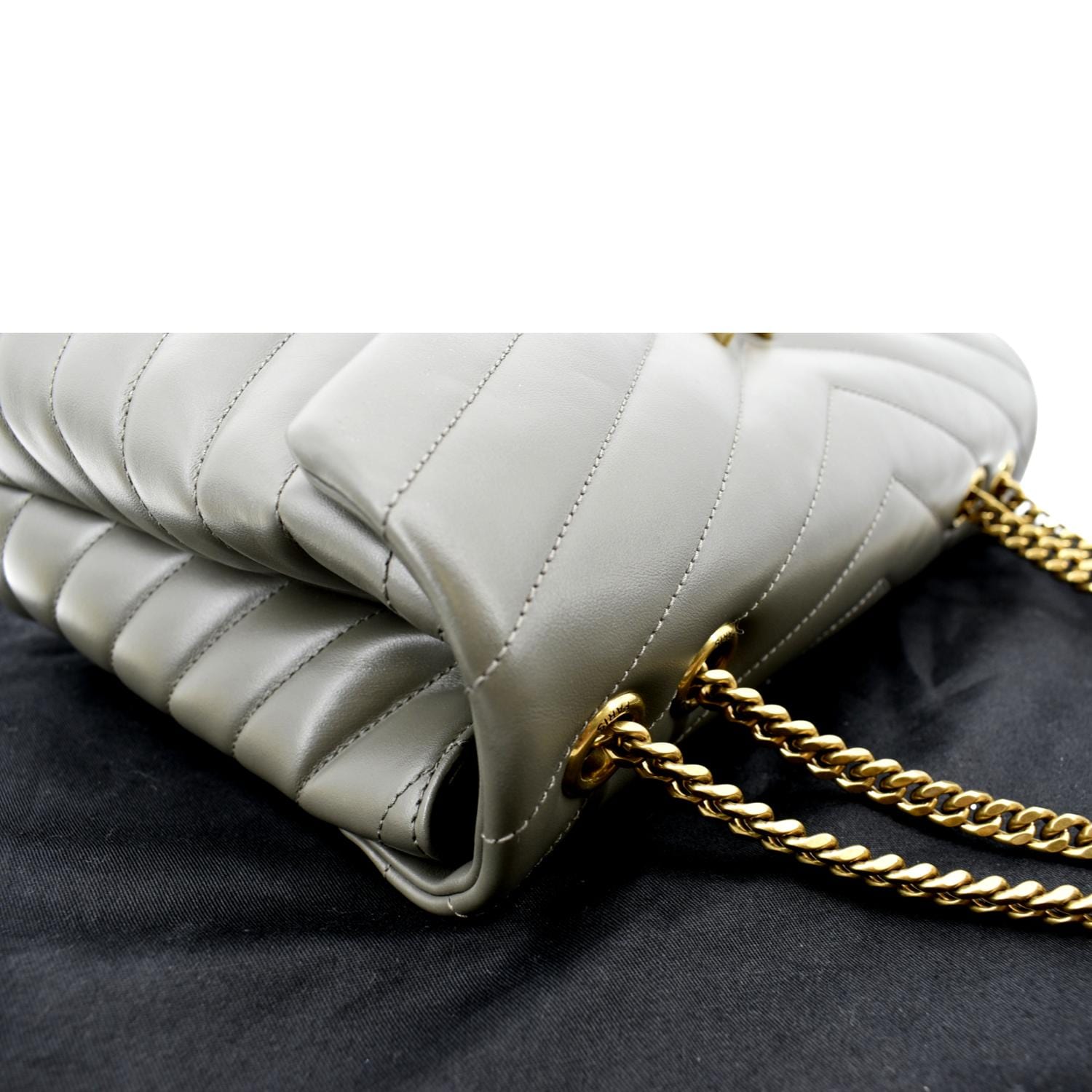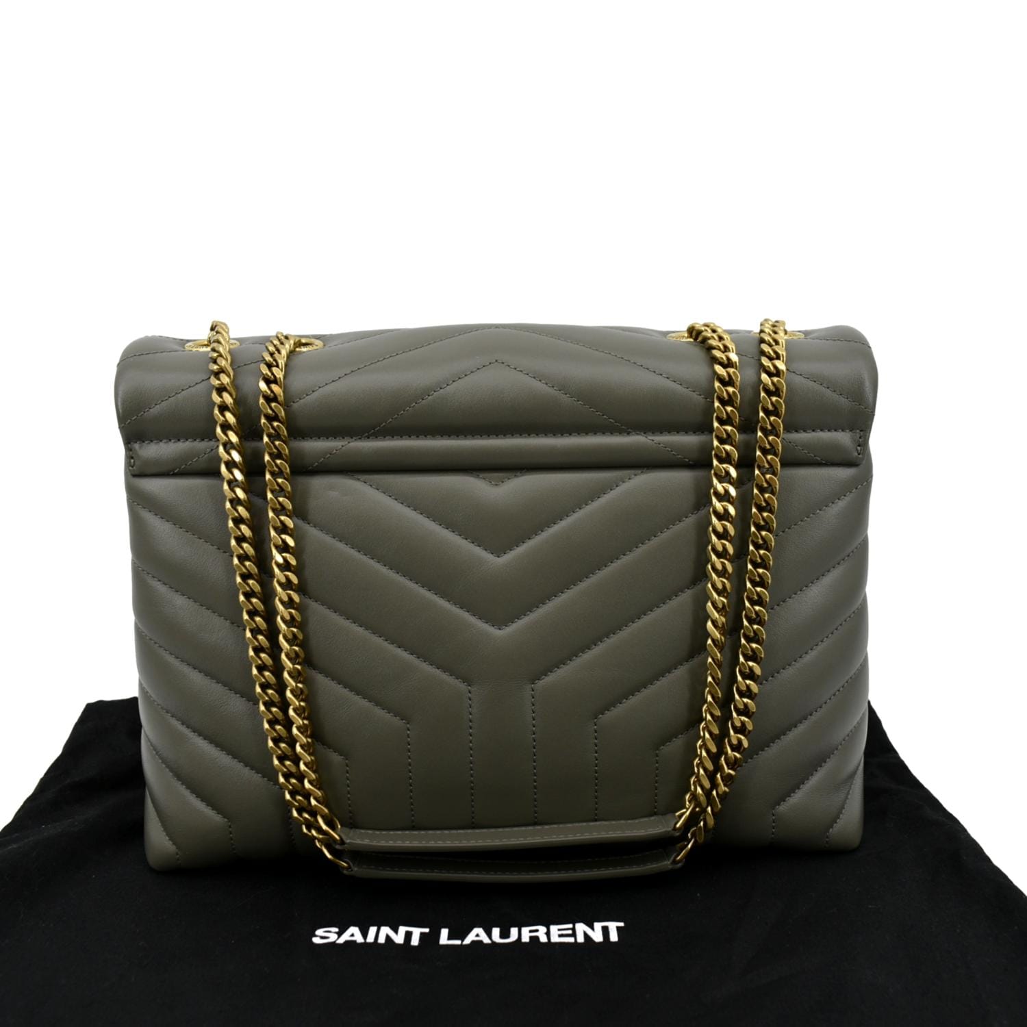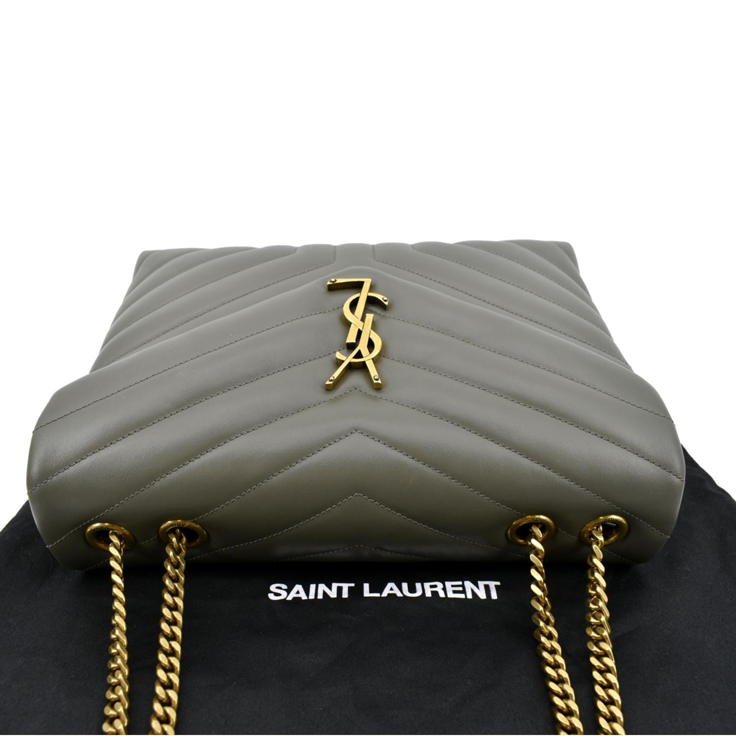 YVES SAINT LAURENT Medium Loulou Matelasse Leather Chain Shoulder Bag Neutral Grey