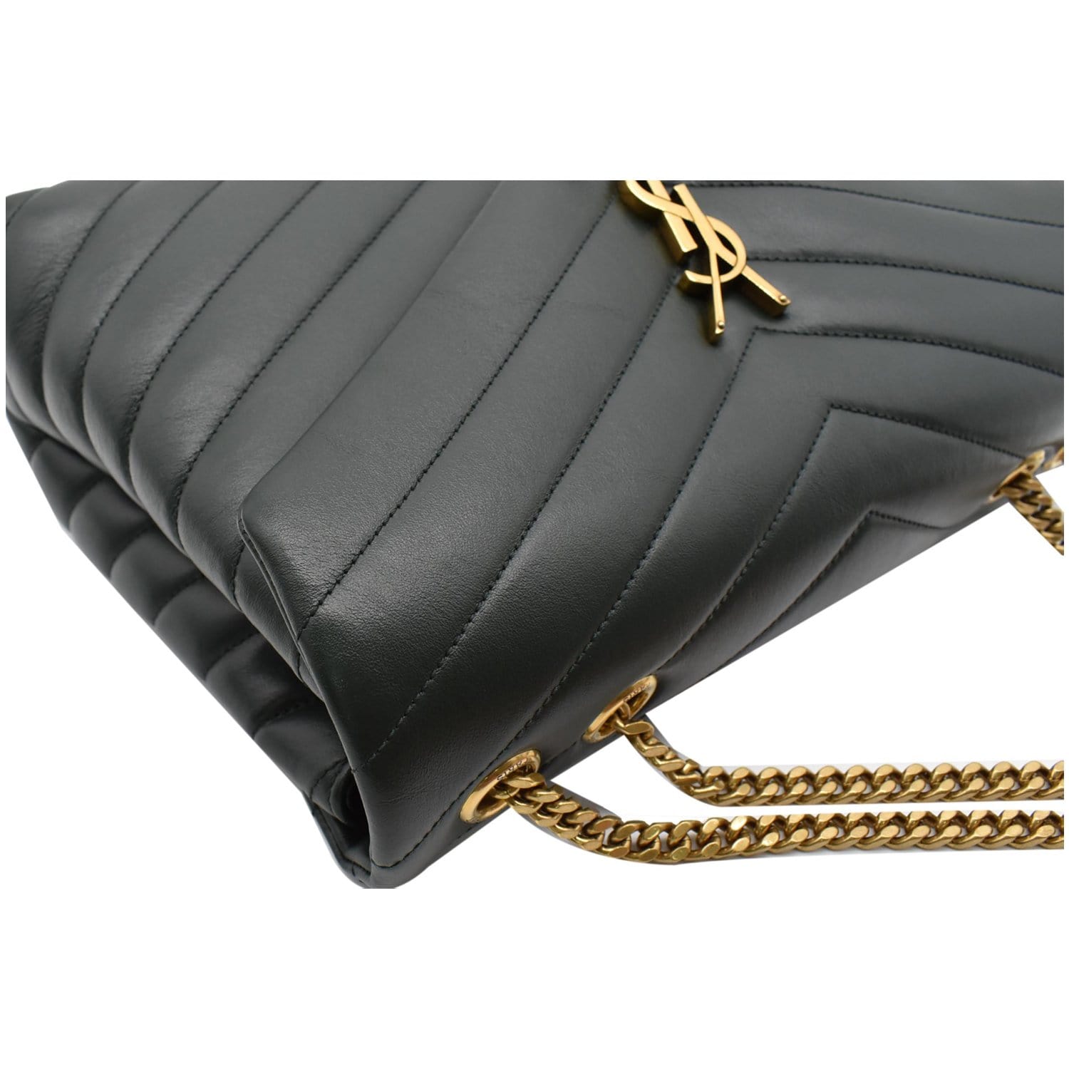 YVES SAINT LAURENT Loulou Medium Matelasse Leather Chain Shoulder Bag Green