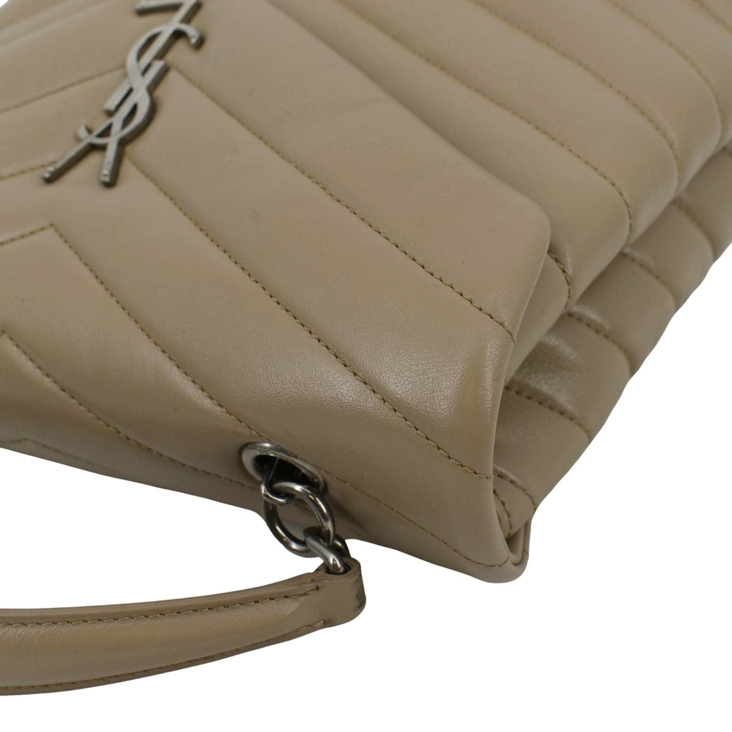 YVES SAINT LAURENT Loulou Top Handle Quilted Leather Shoulder Bag Beige
