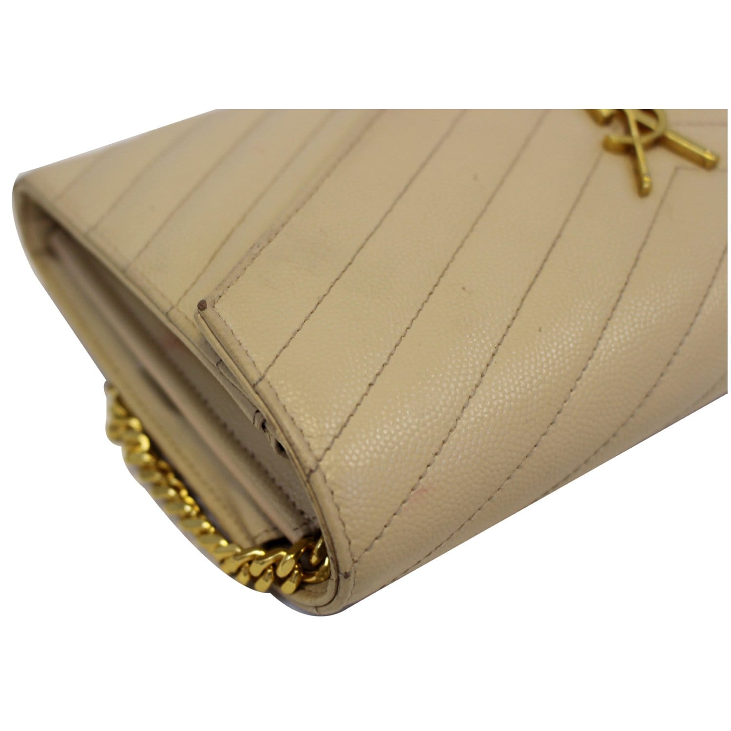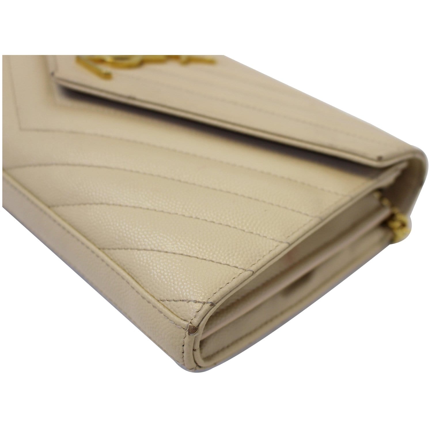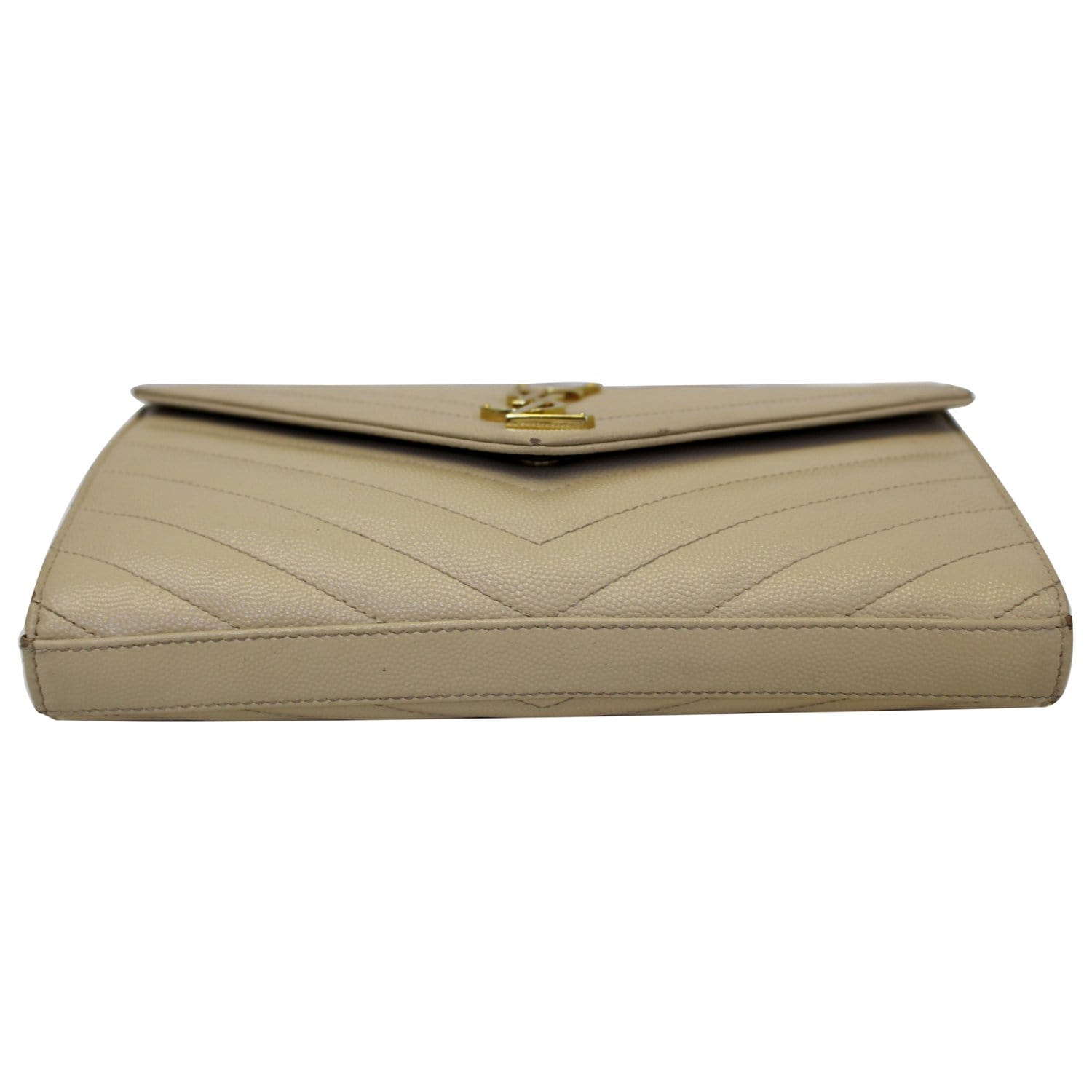 YVES SAINT LAURENT Matelasse Chevron Grain De Poudre Envelope Chain Wallet Beige