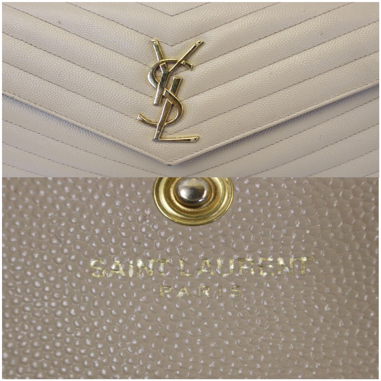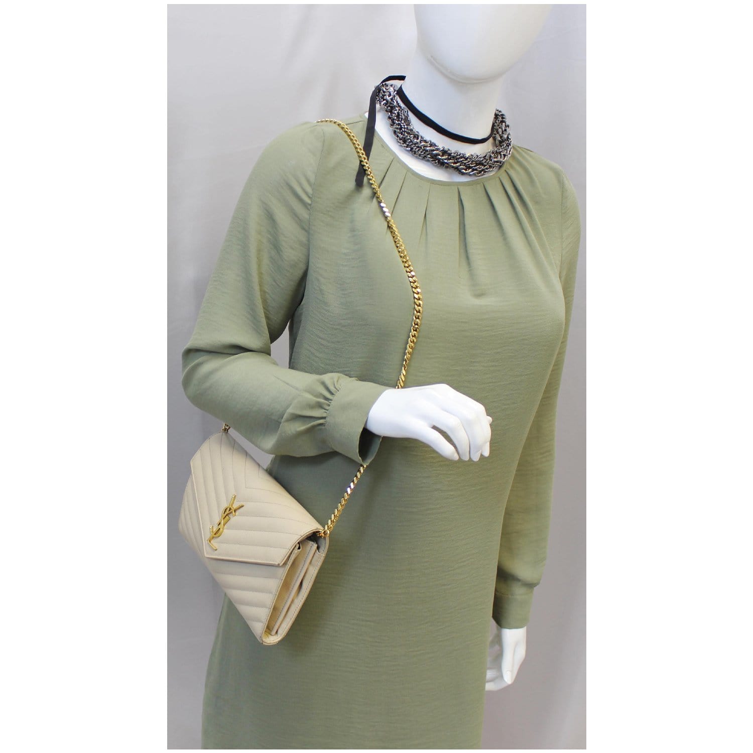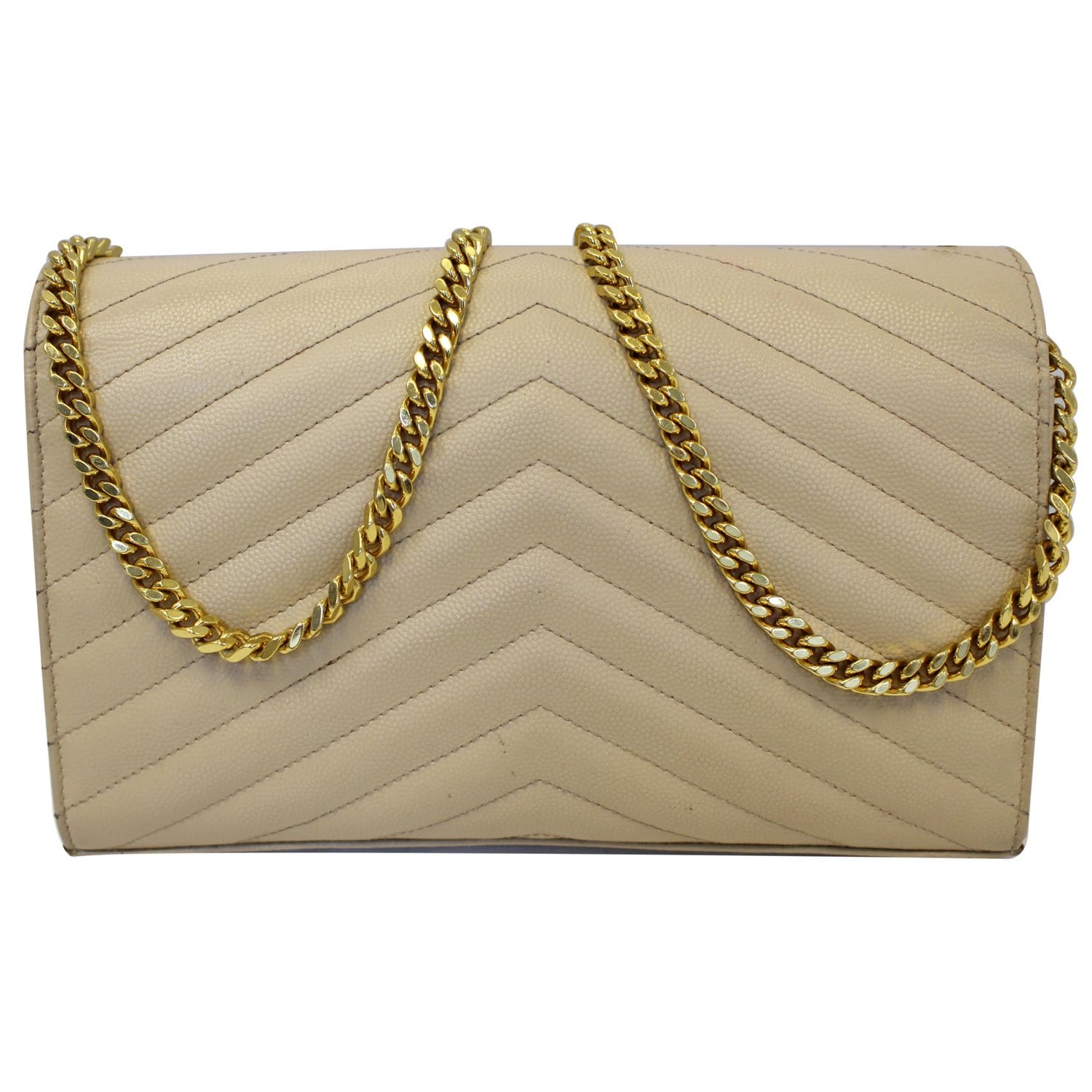 YVES SAINT LAURENT Matelasse Chevron Grain De Poudre Envelope Chain Wallet Beige