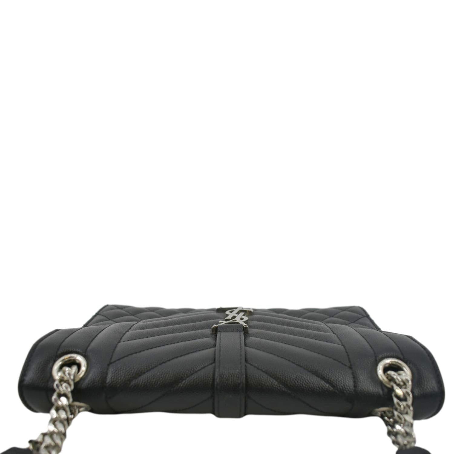 YVES SAINT LAURENT Envelope Medium Matelassé Leather Crossbody Chain Bag Black